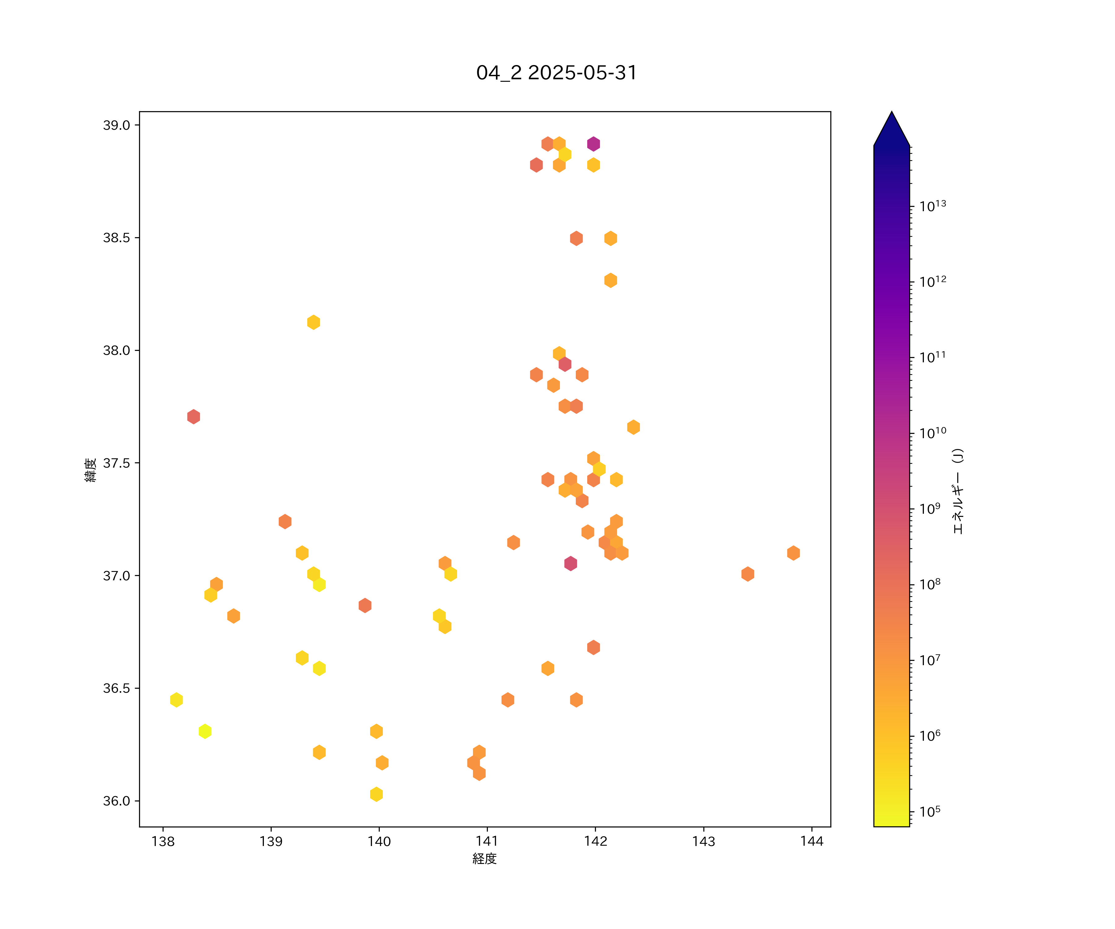 2025年05月31日 南東北から関東北部・上信越 エリア震源マップ
