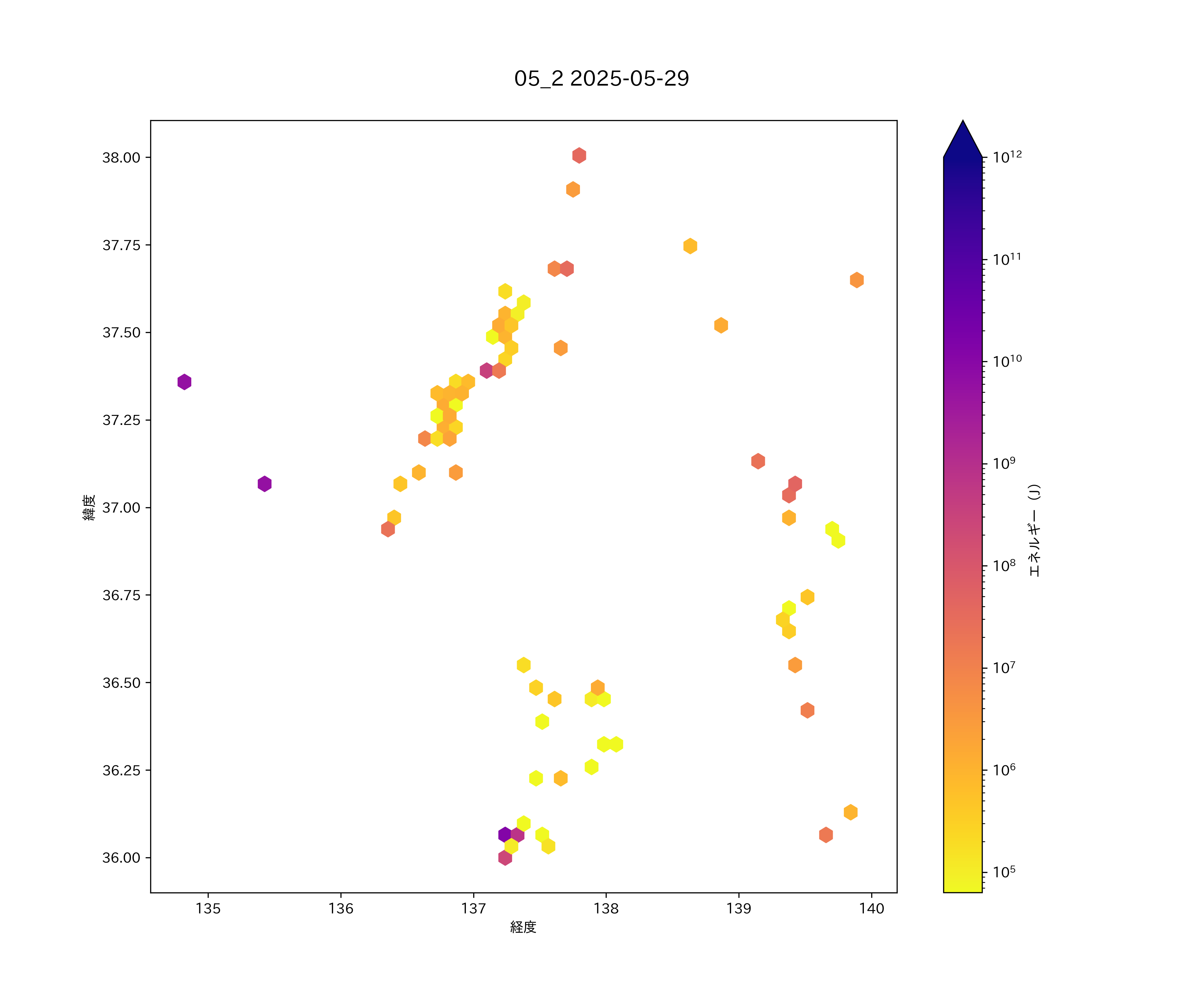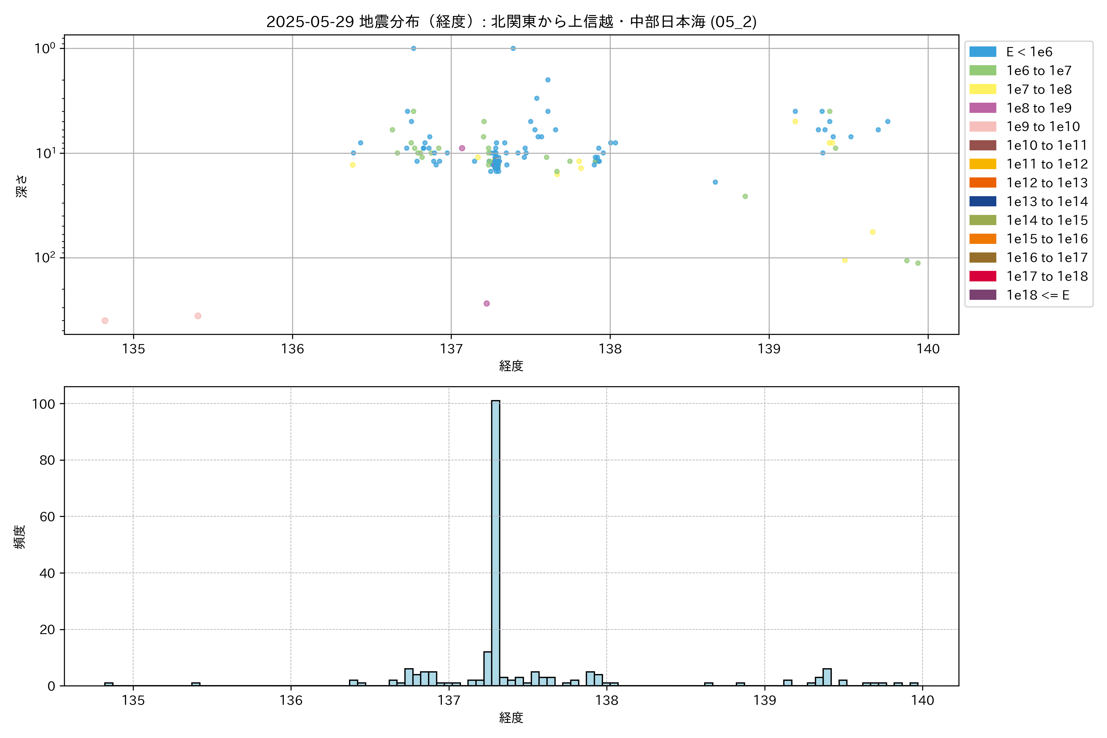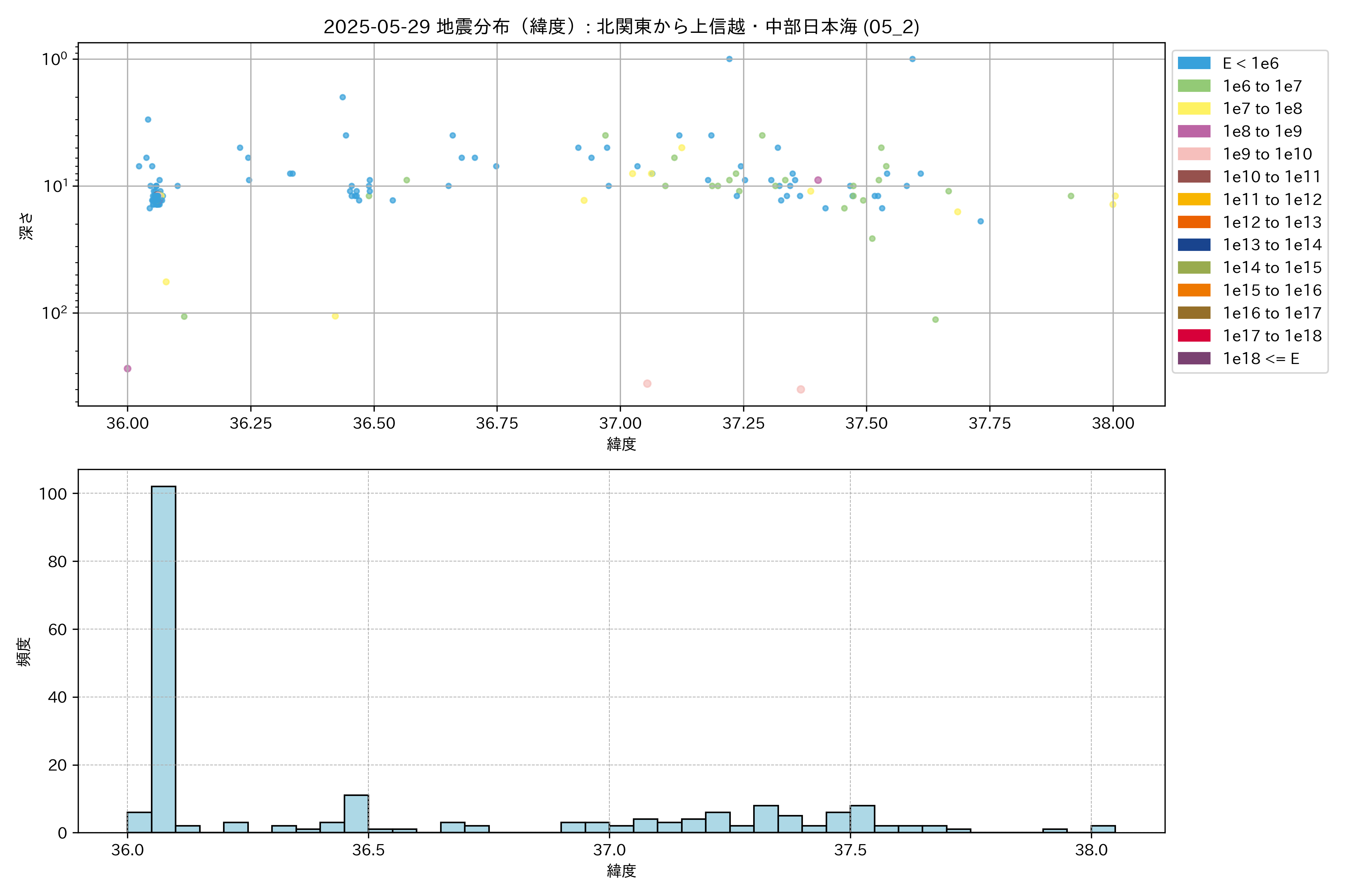 2025年05月29日 北関東から上信越・中部日本海 エリア震源マップ