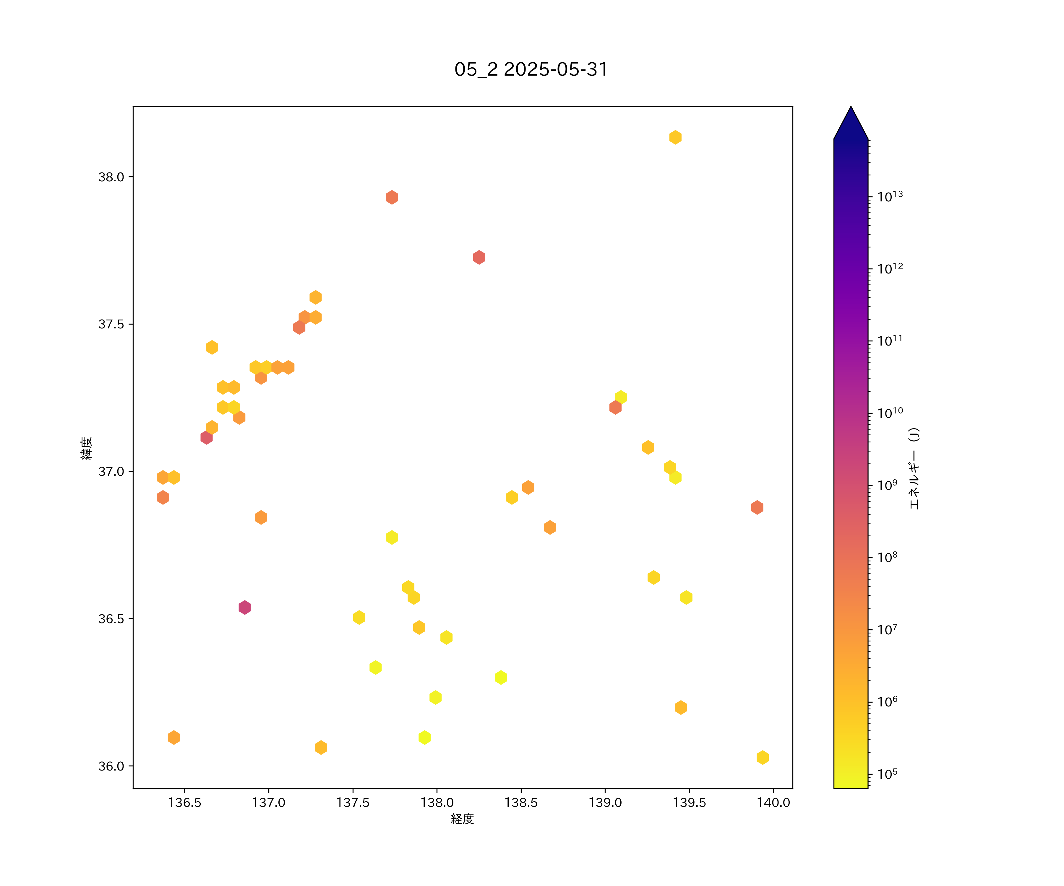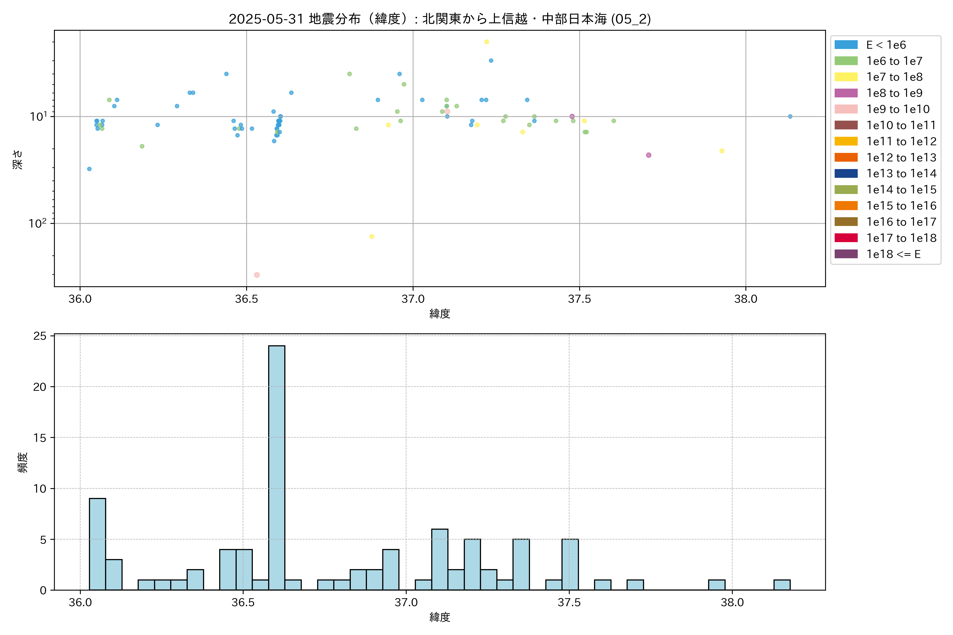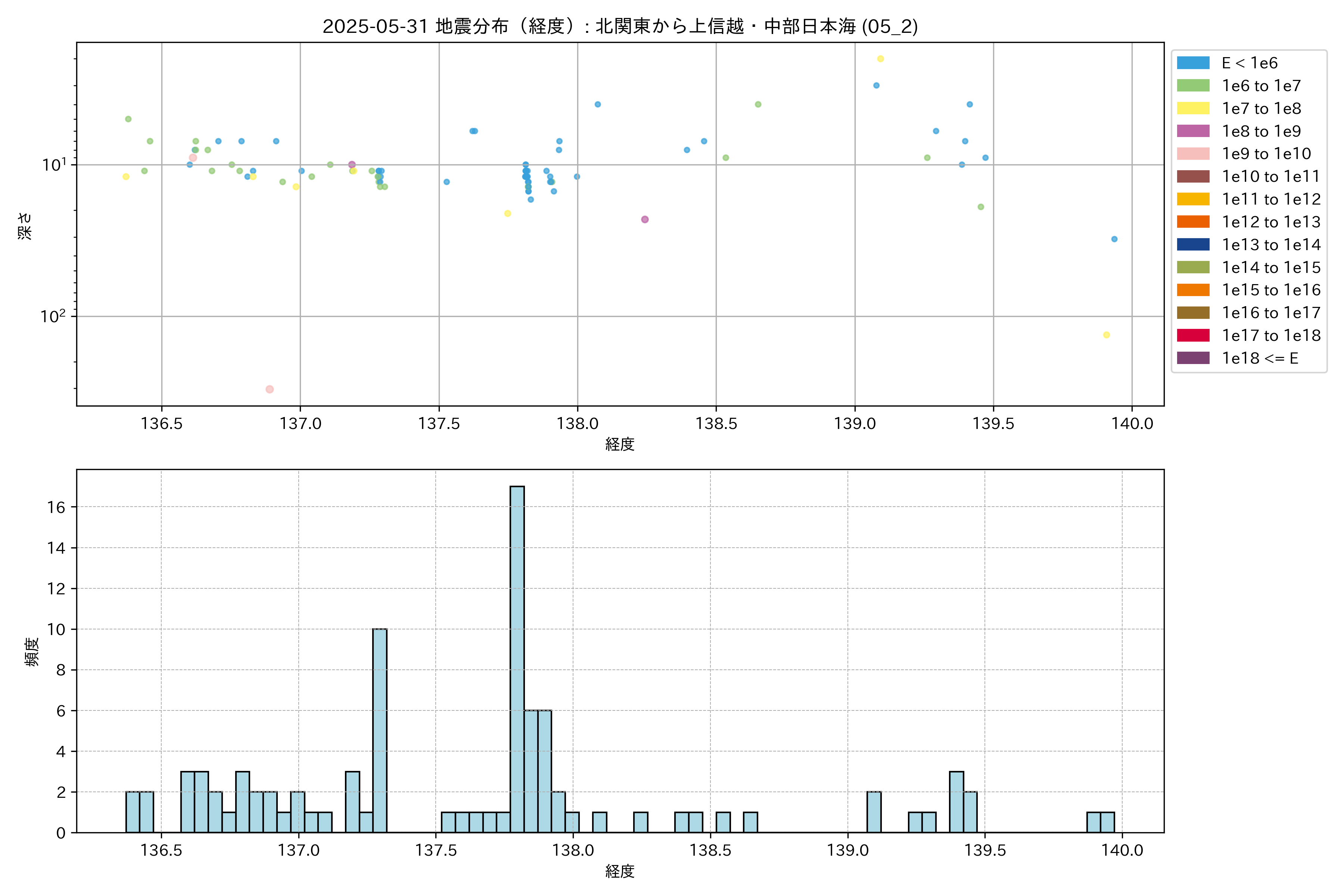 2025年05月31日 北関東から上信越・中部日本海 エリア震源マップ