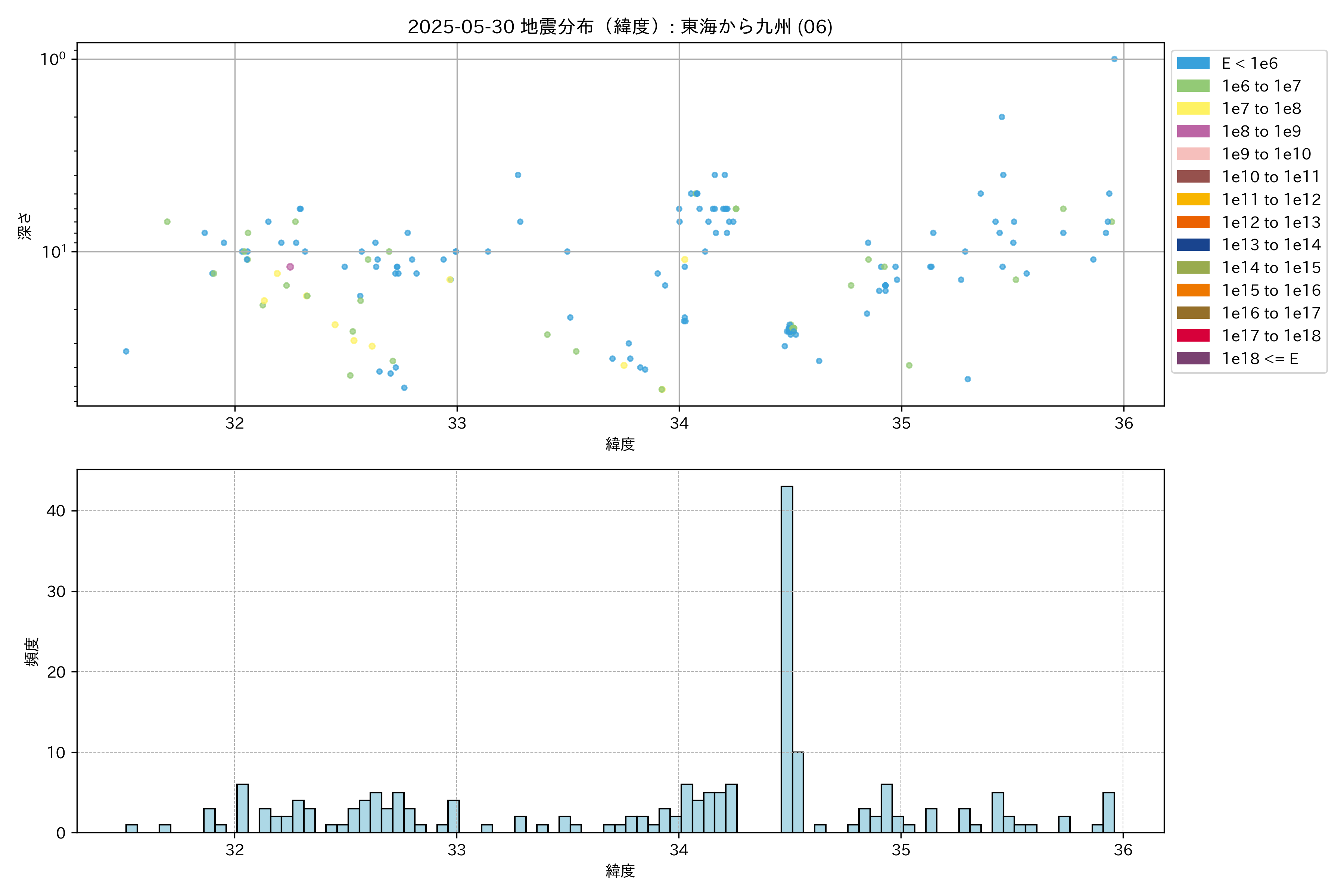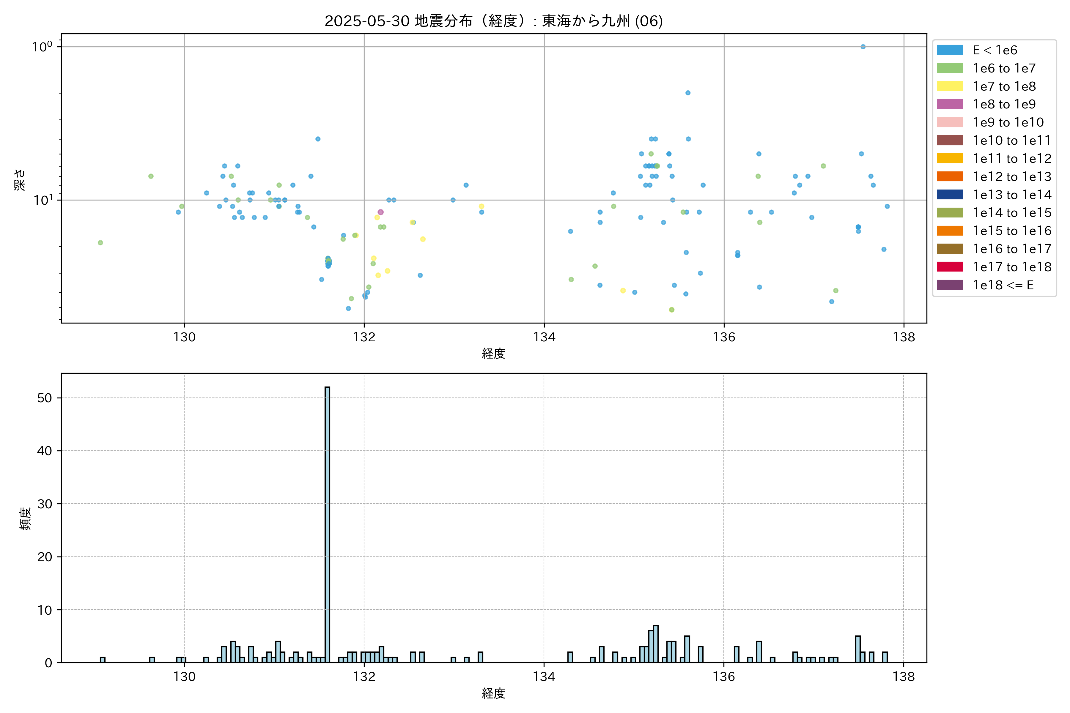 2025年05月30日 東海から九州 エリア震源マップ