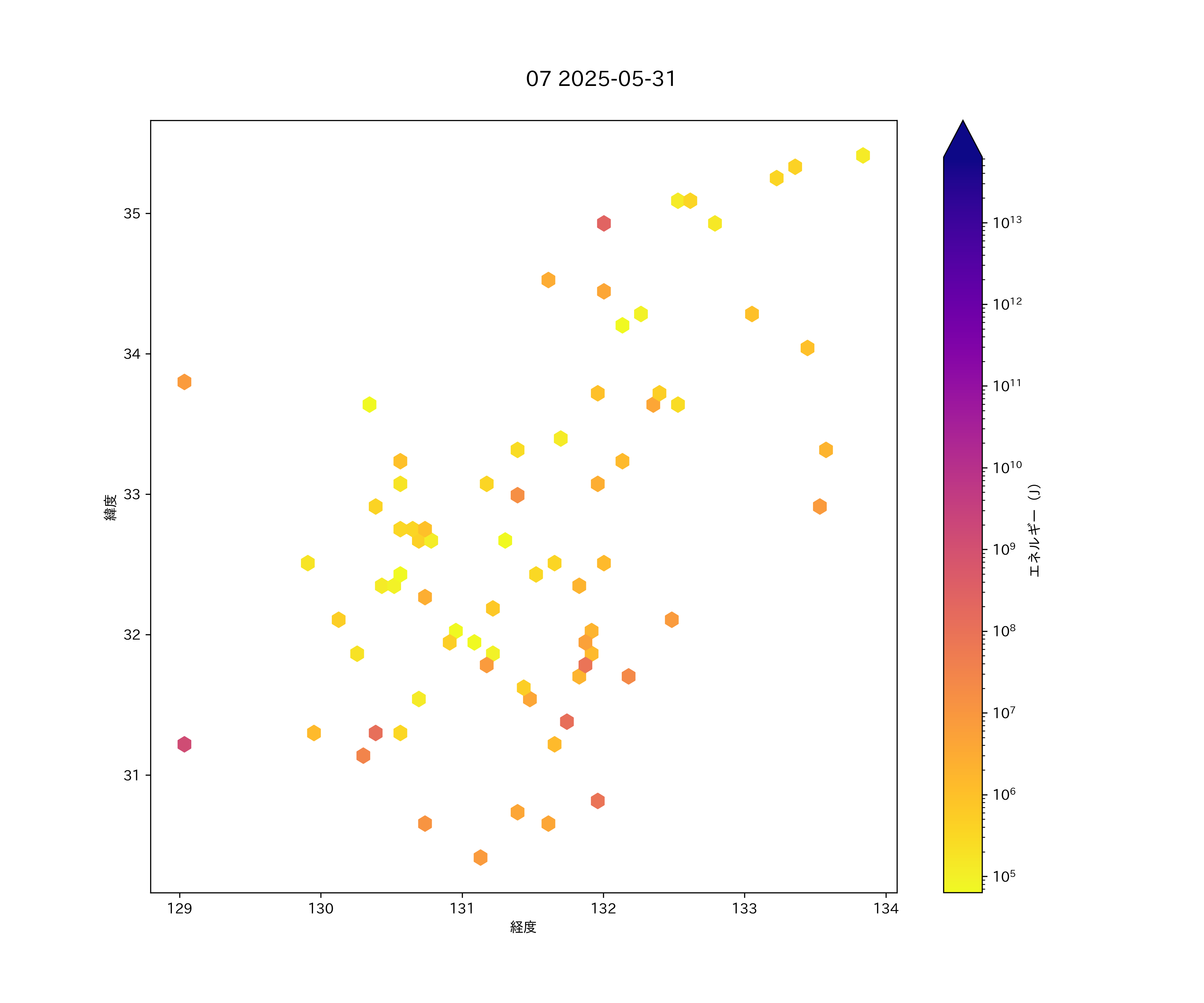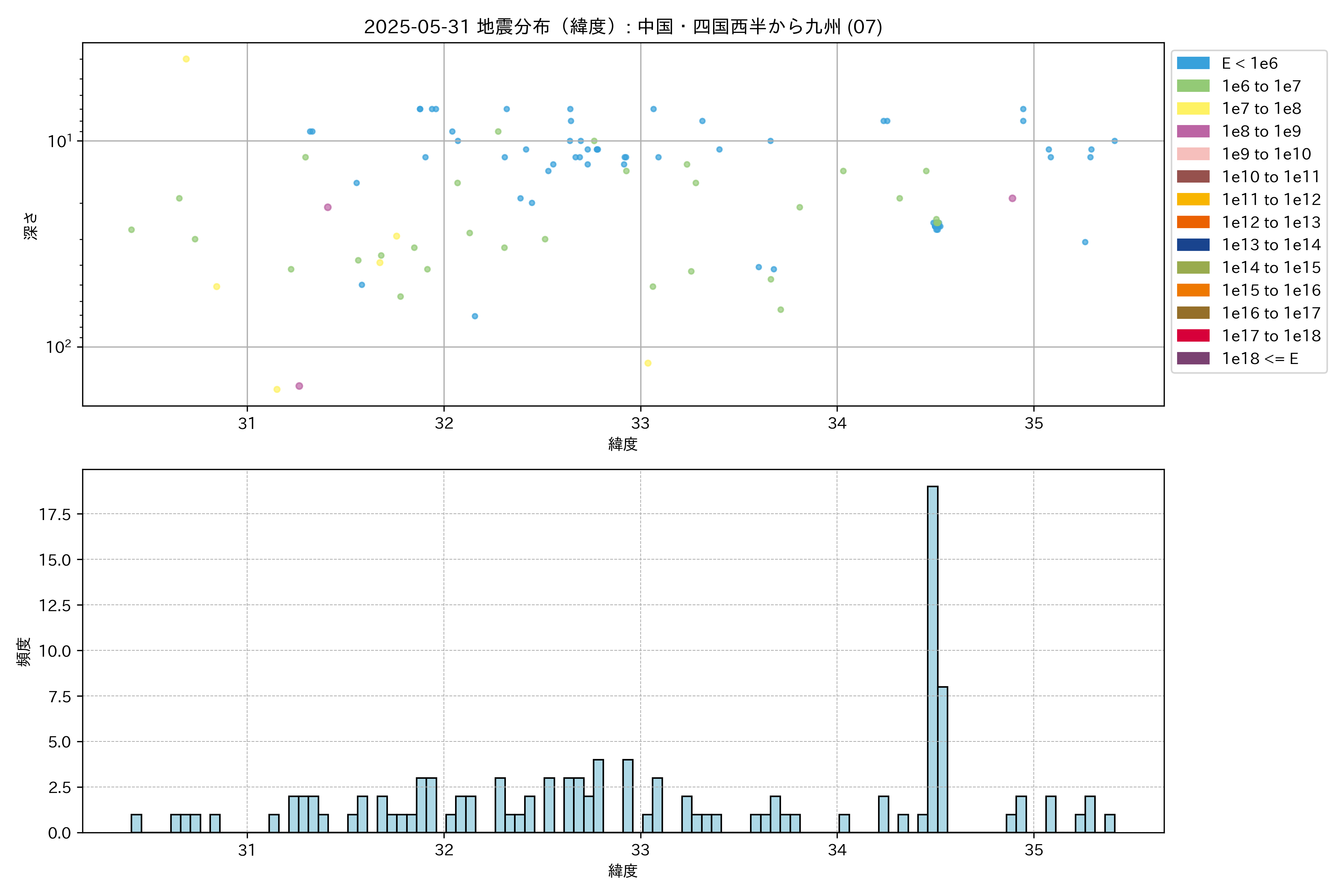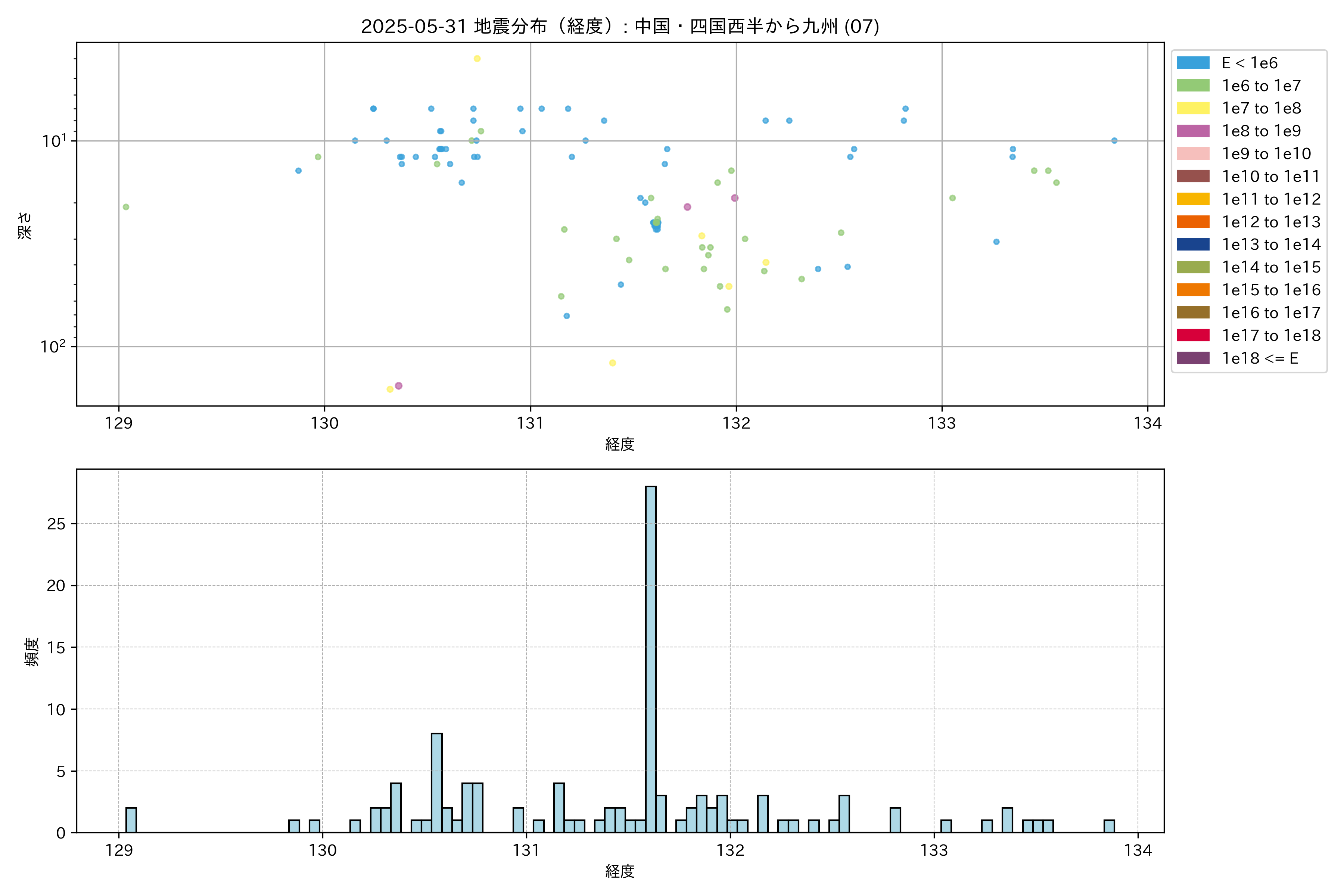 2025年05月31日 中国・四国西半から九州 エリア震源マップ