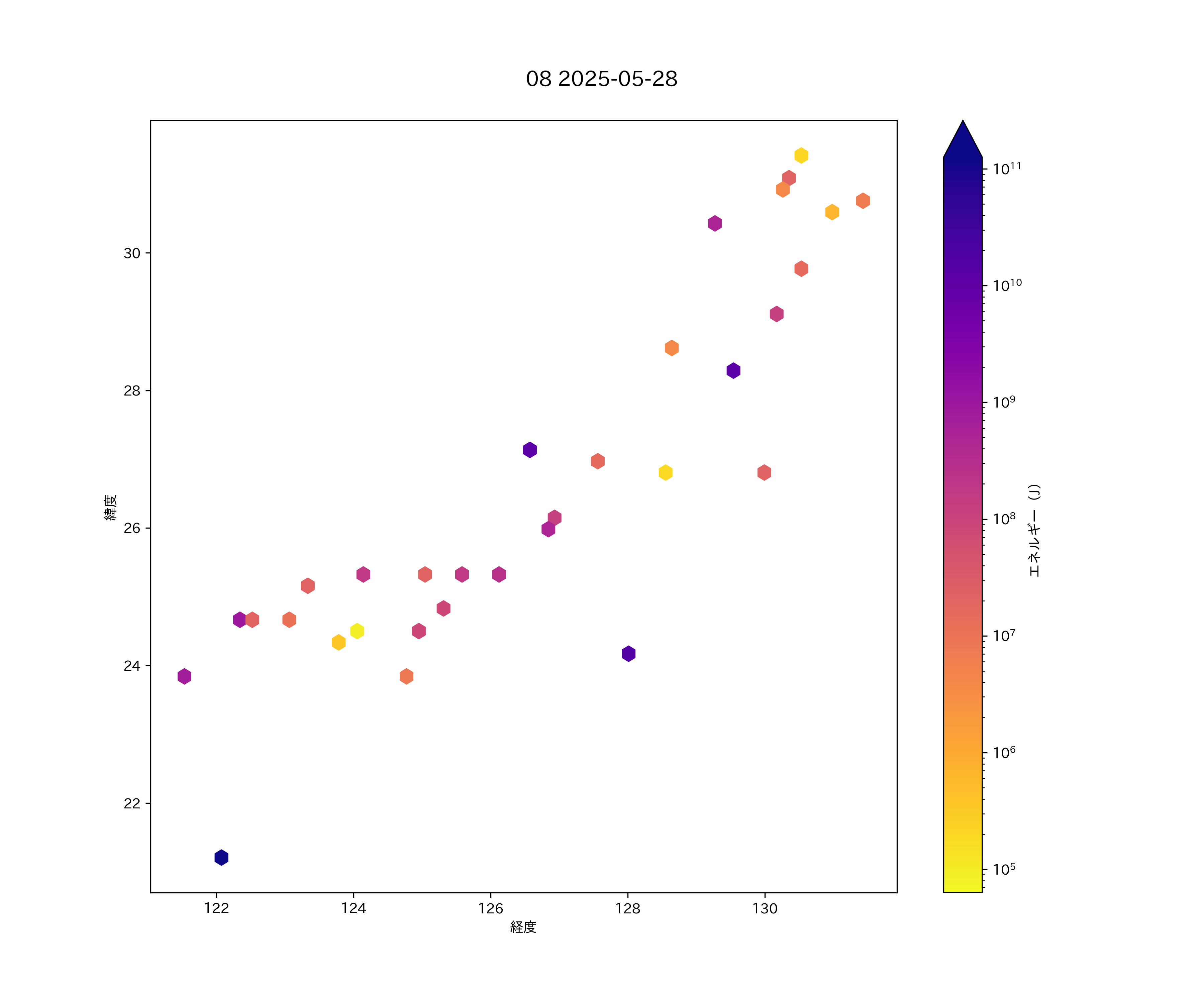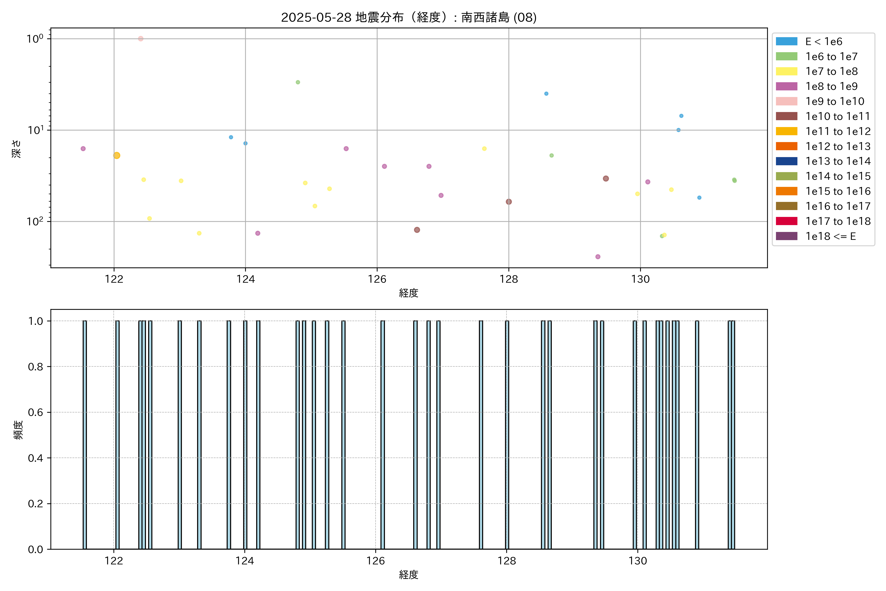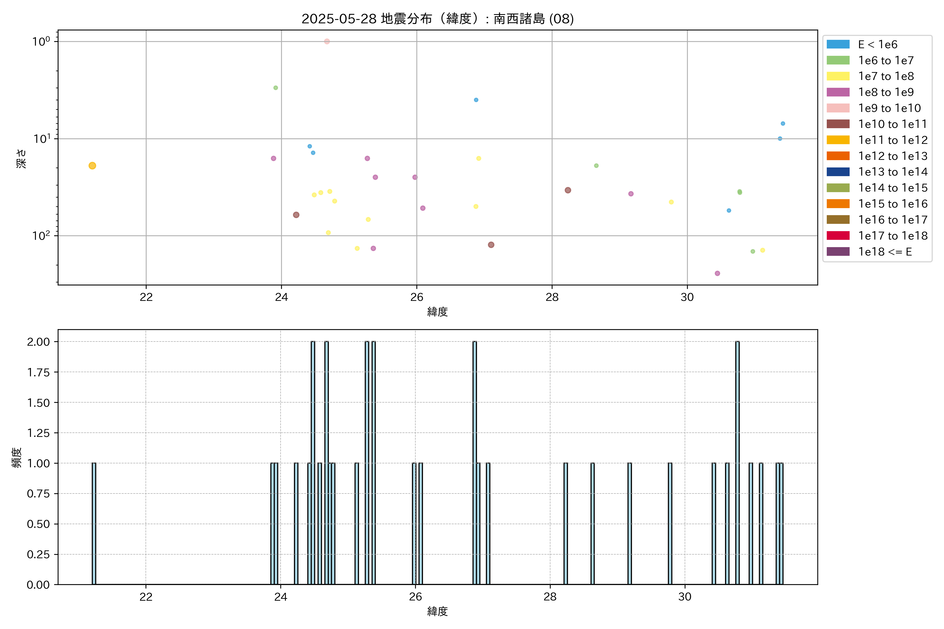 2025年05月28日 南西諸島 エリア震源マップ
