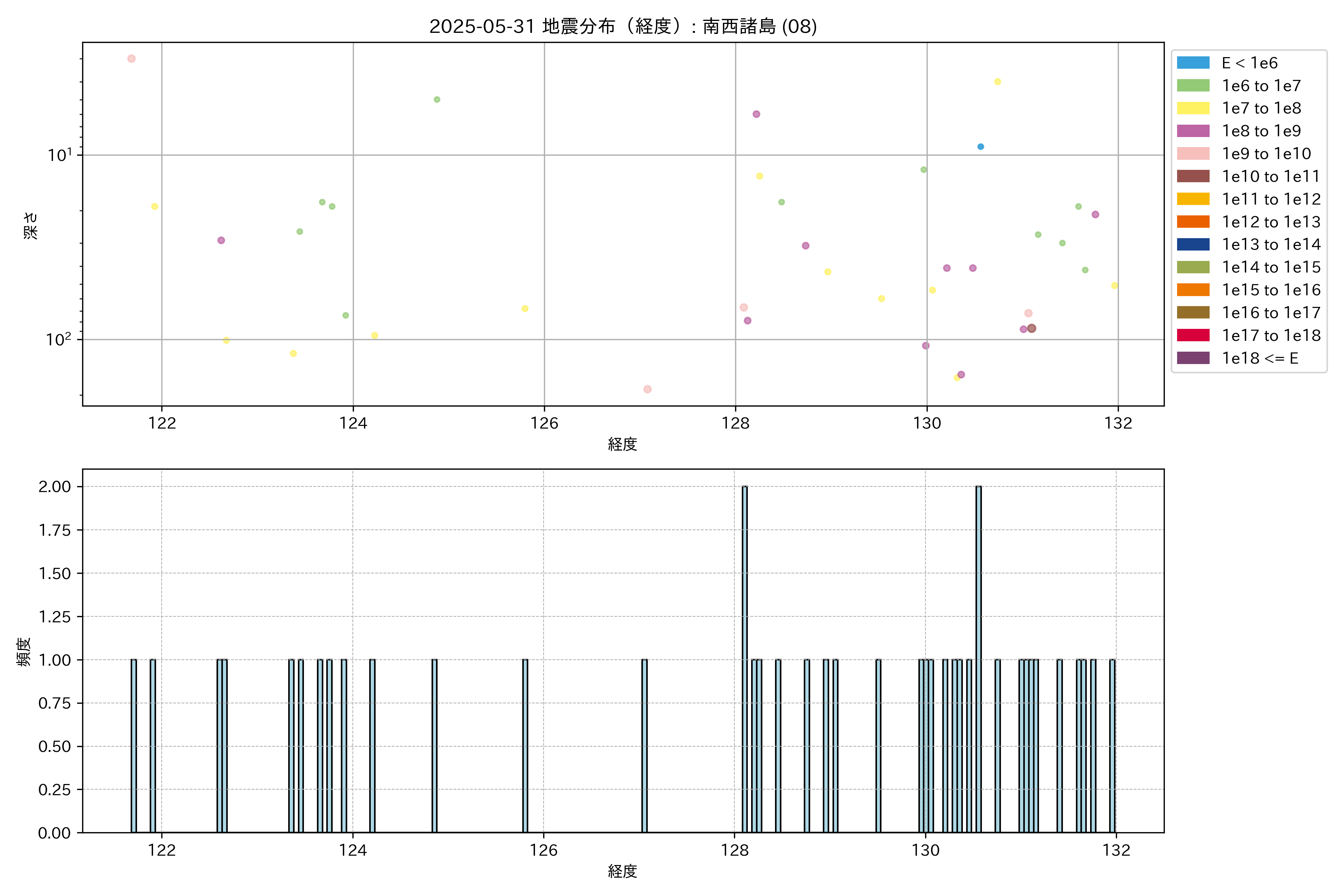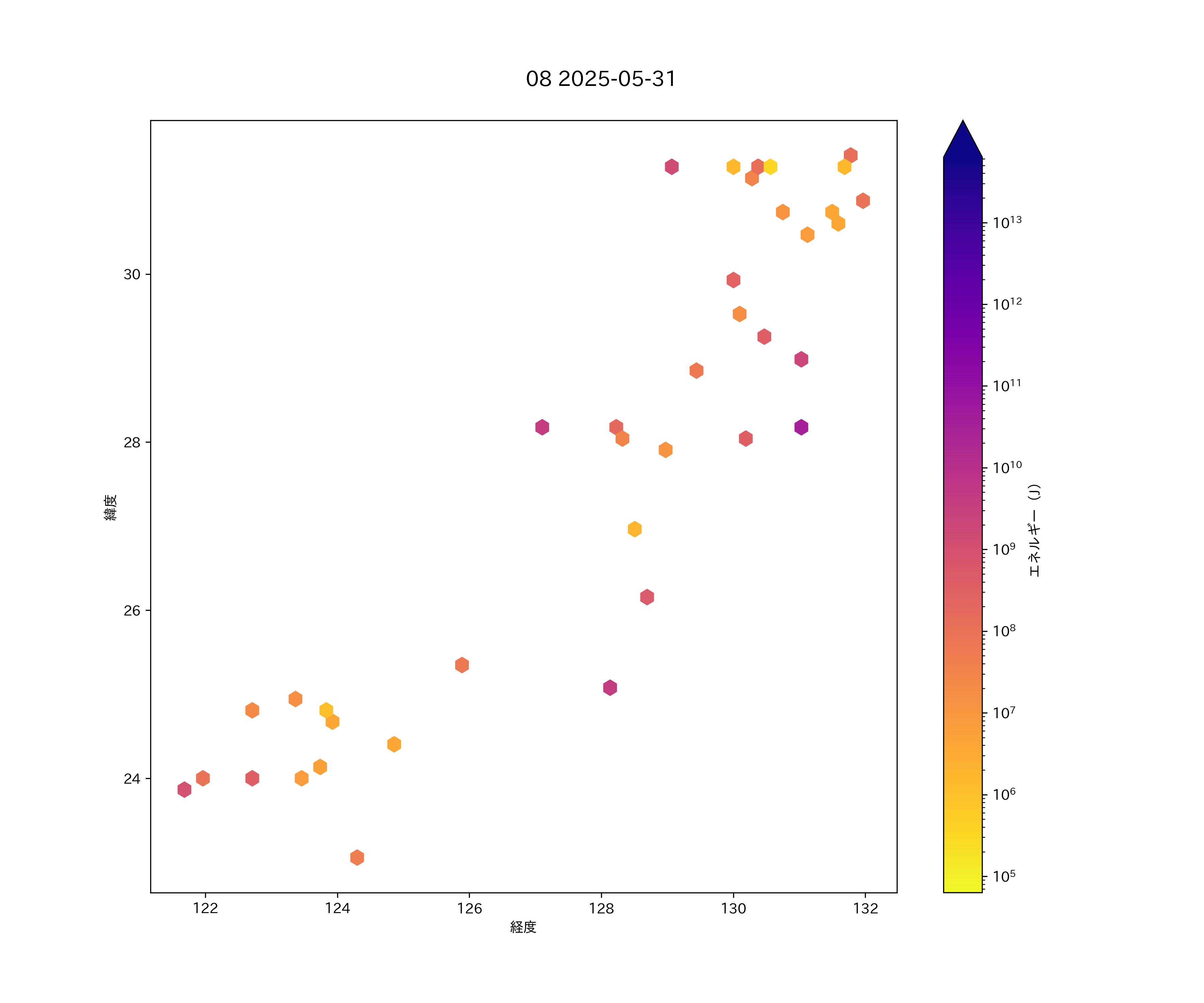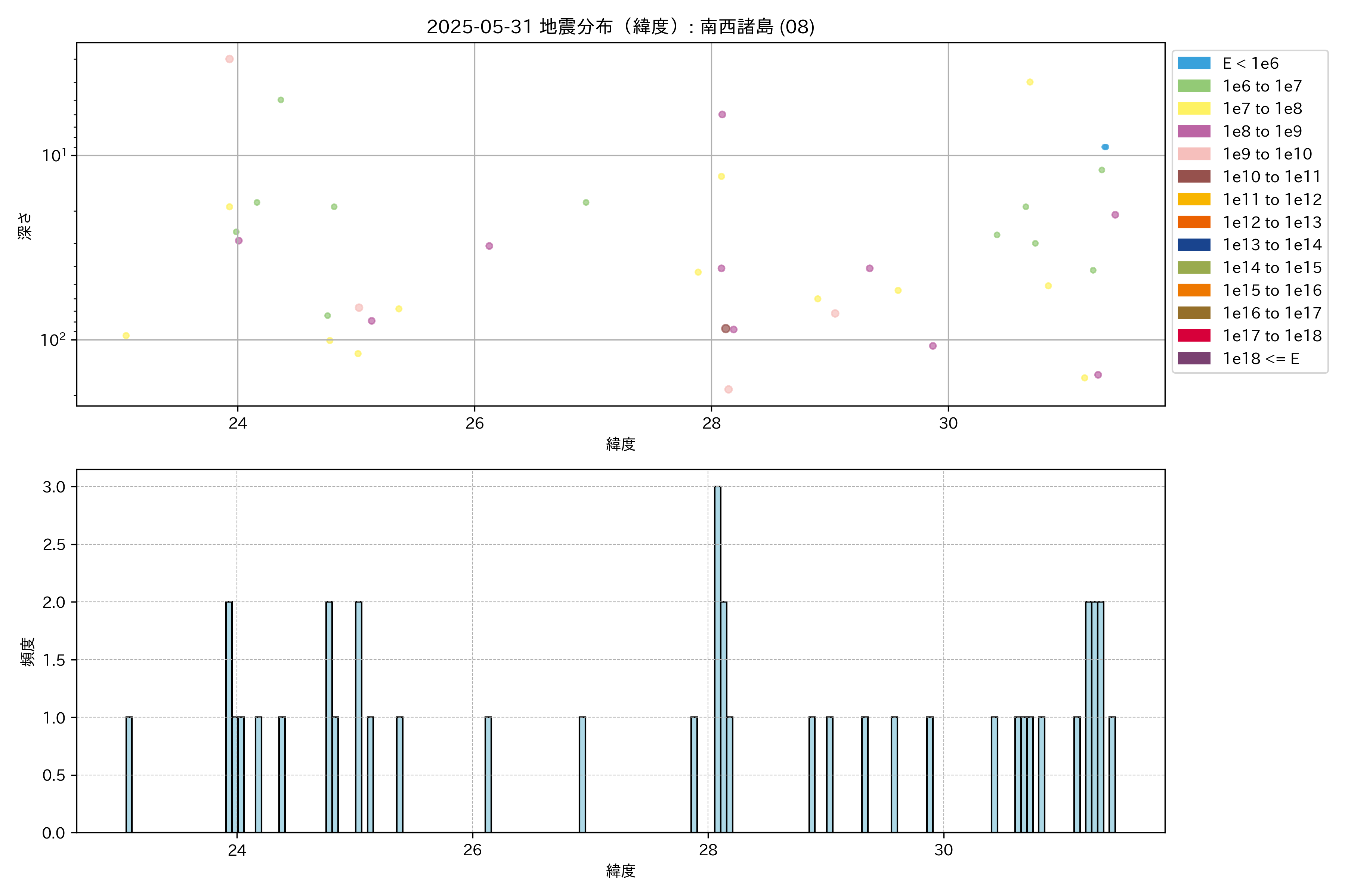 2025年05月31日 南西諸島 エリア震源マップ