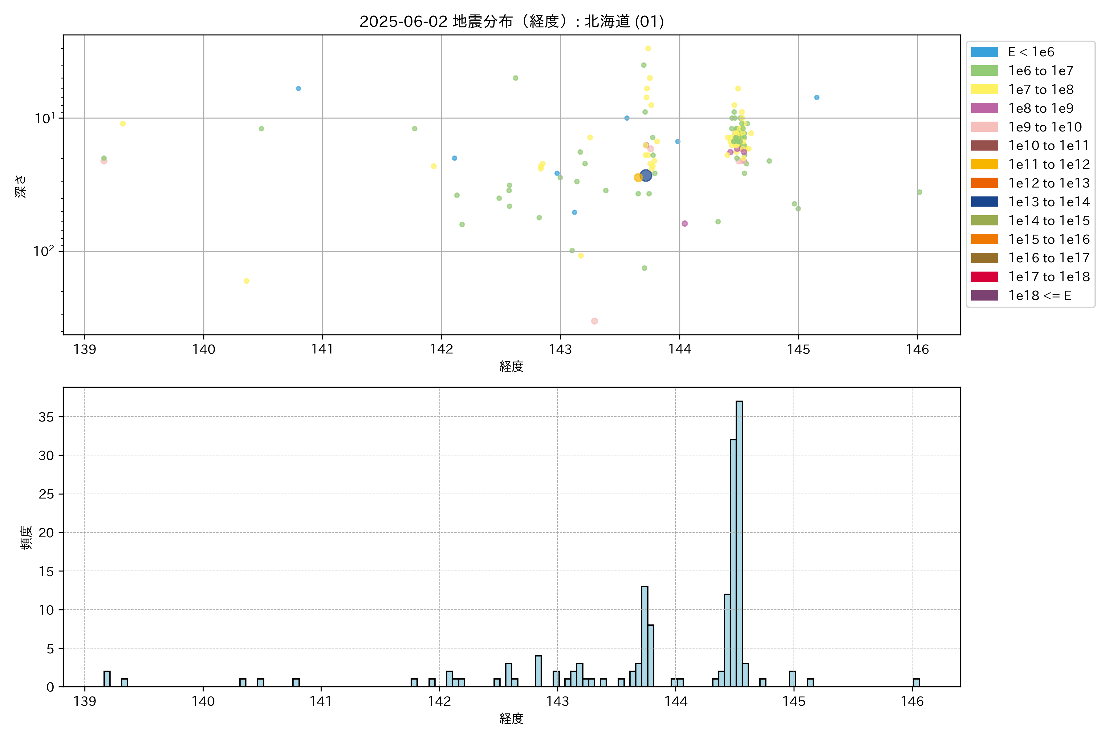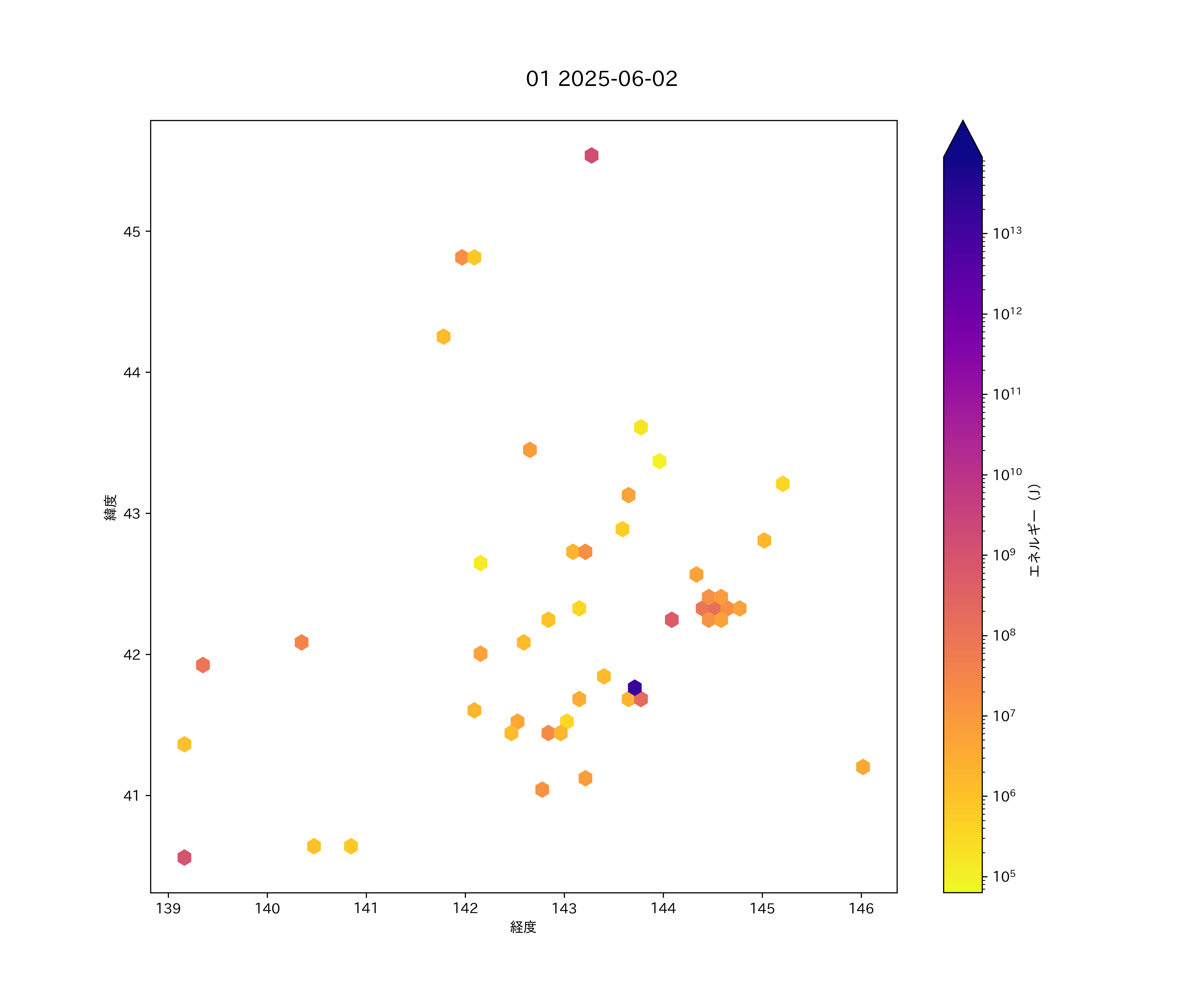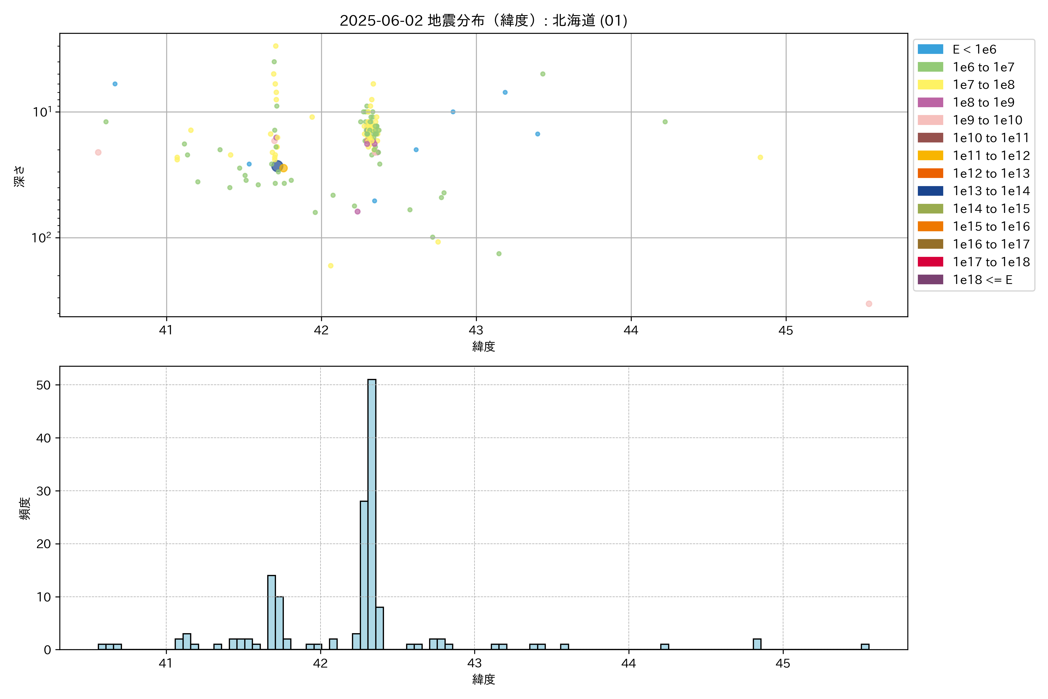 2025年06月02日 北海道 エリア震源マップ