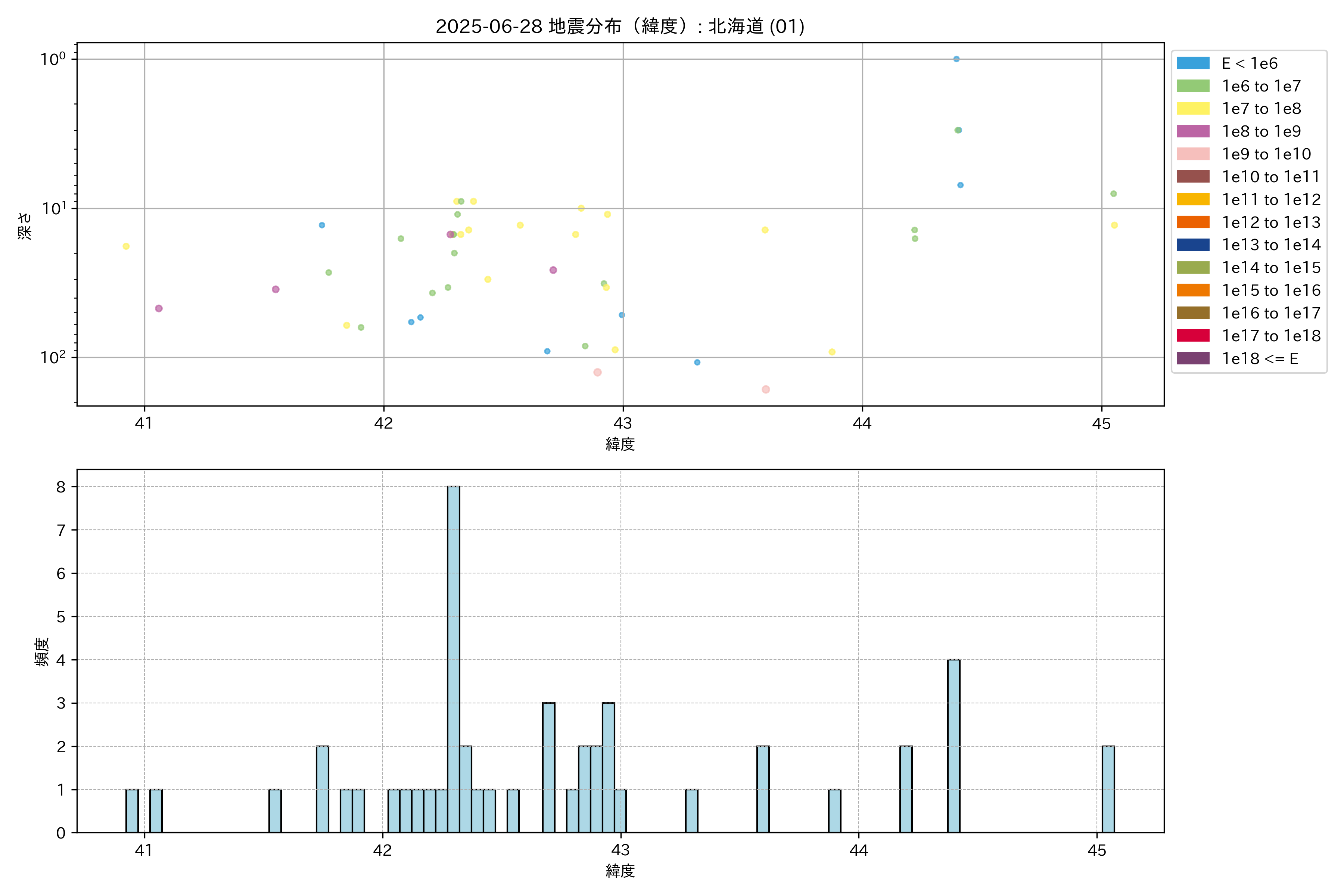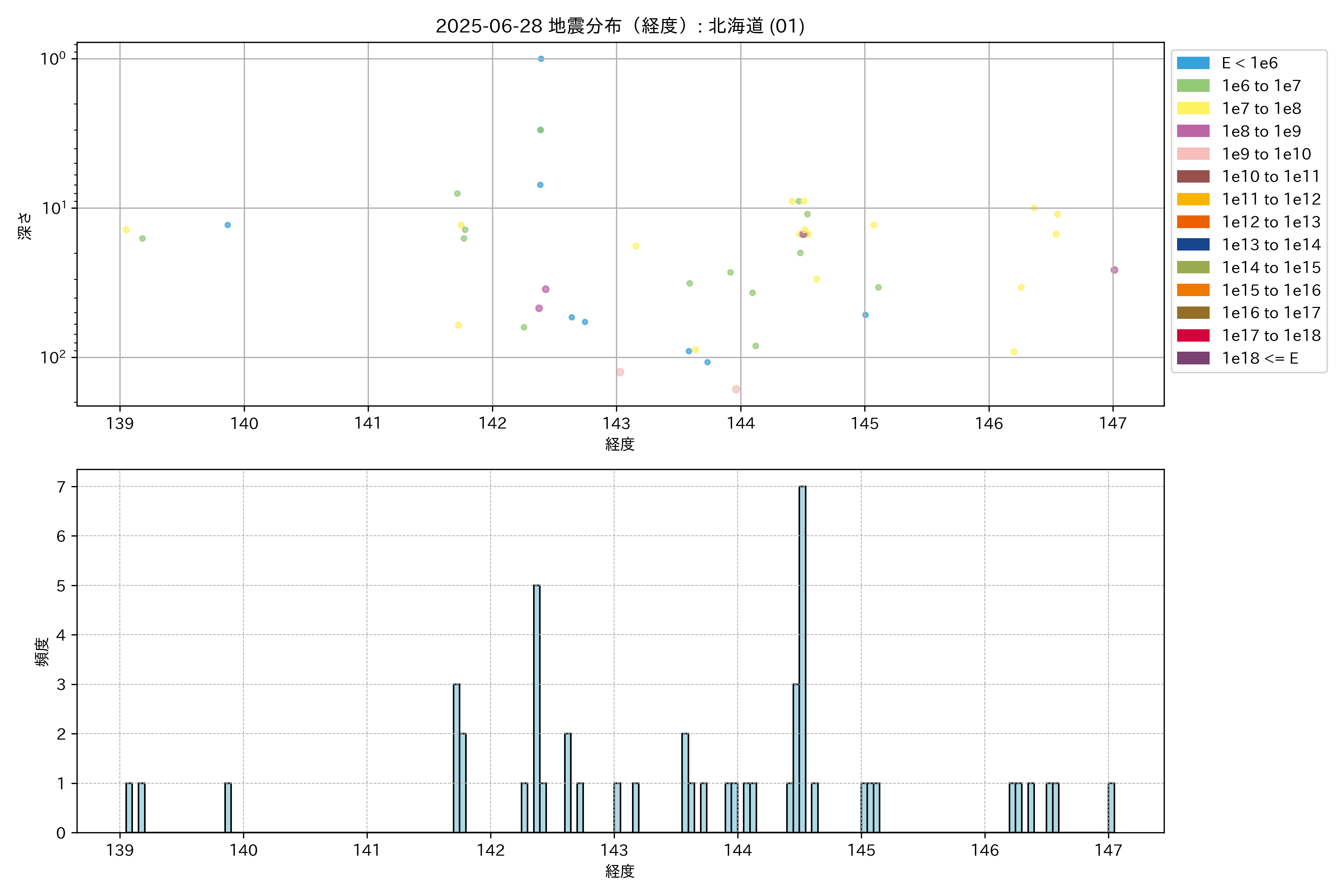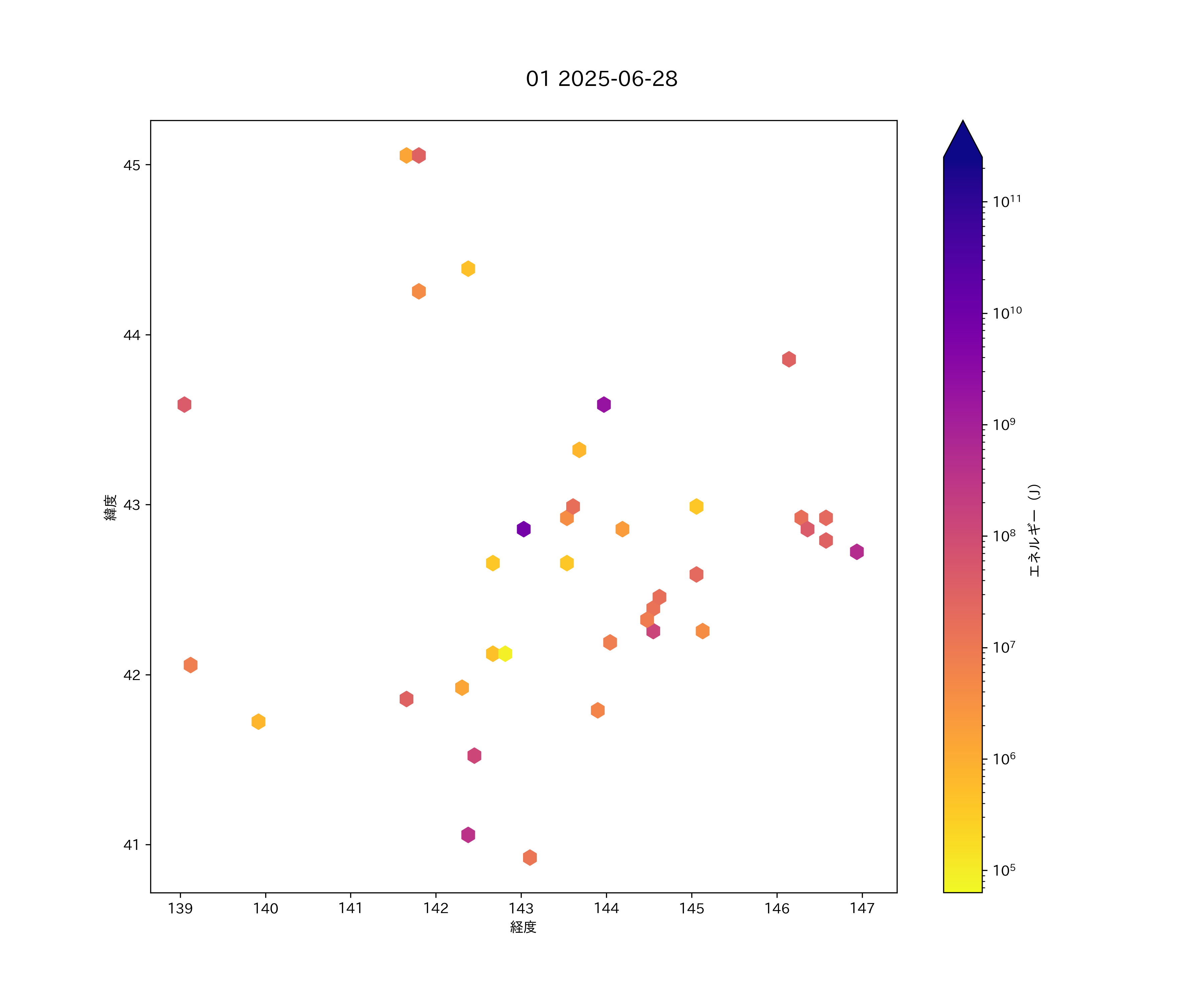 2025年06月28日 北海道 エリア震源マップ