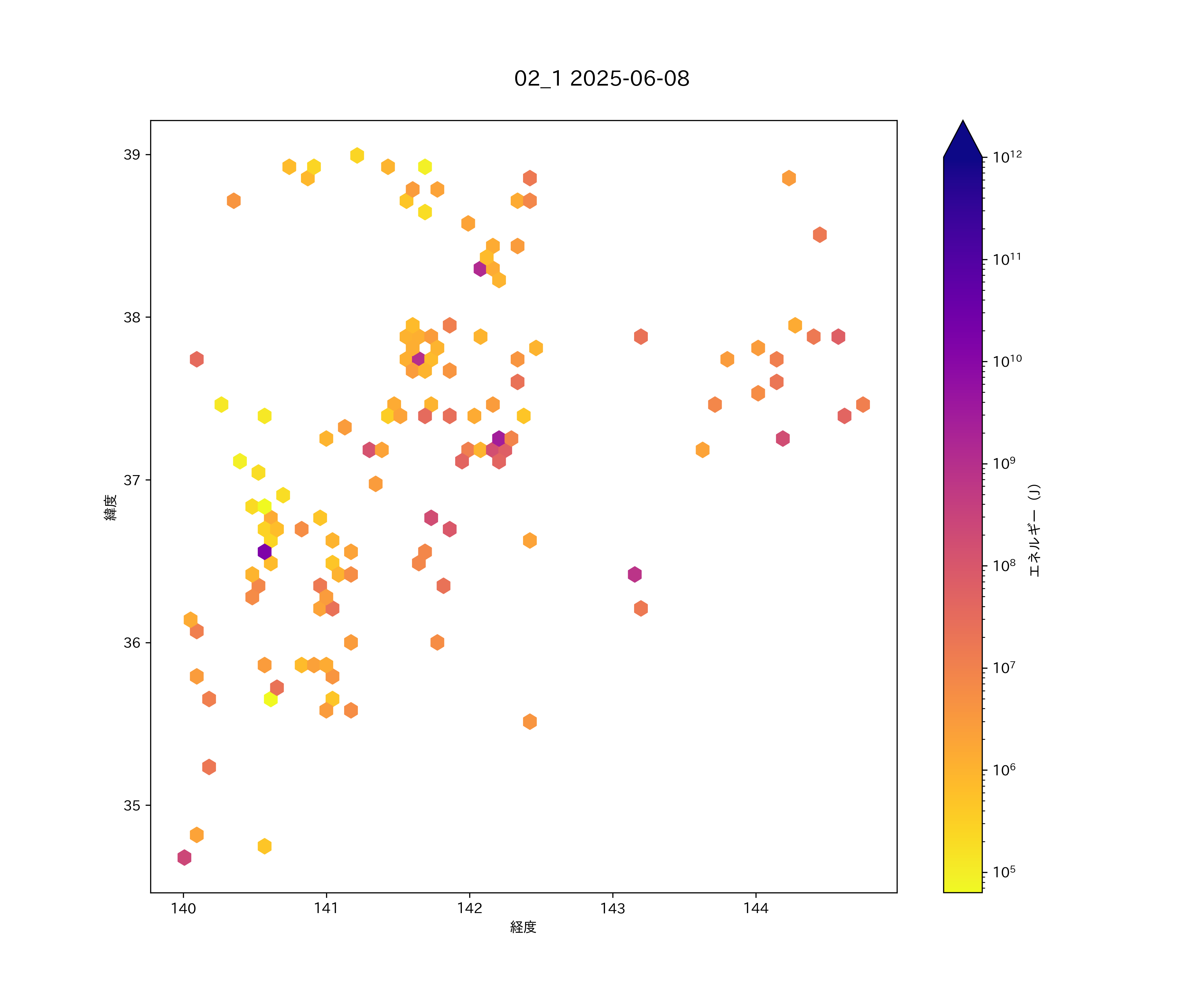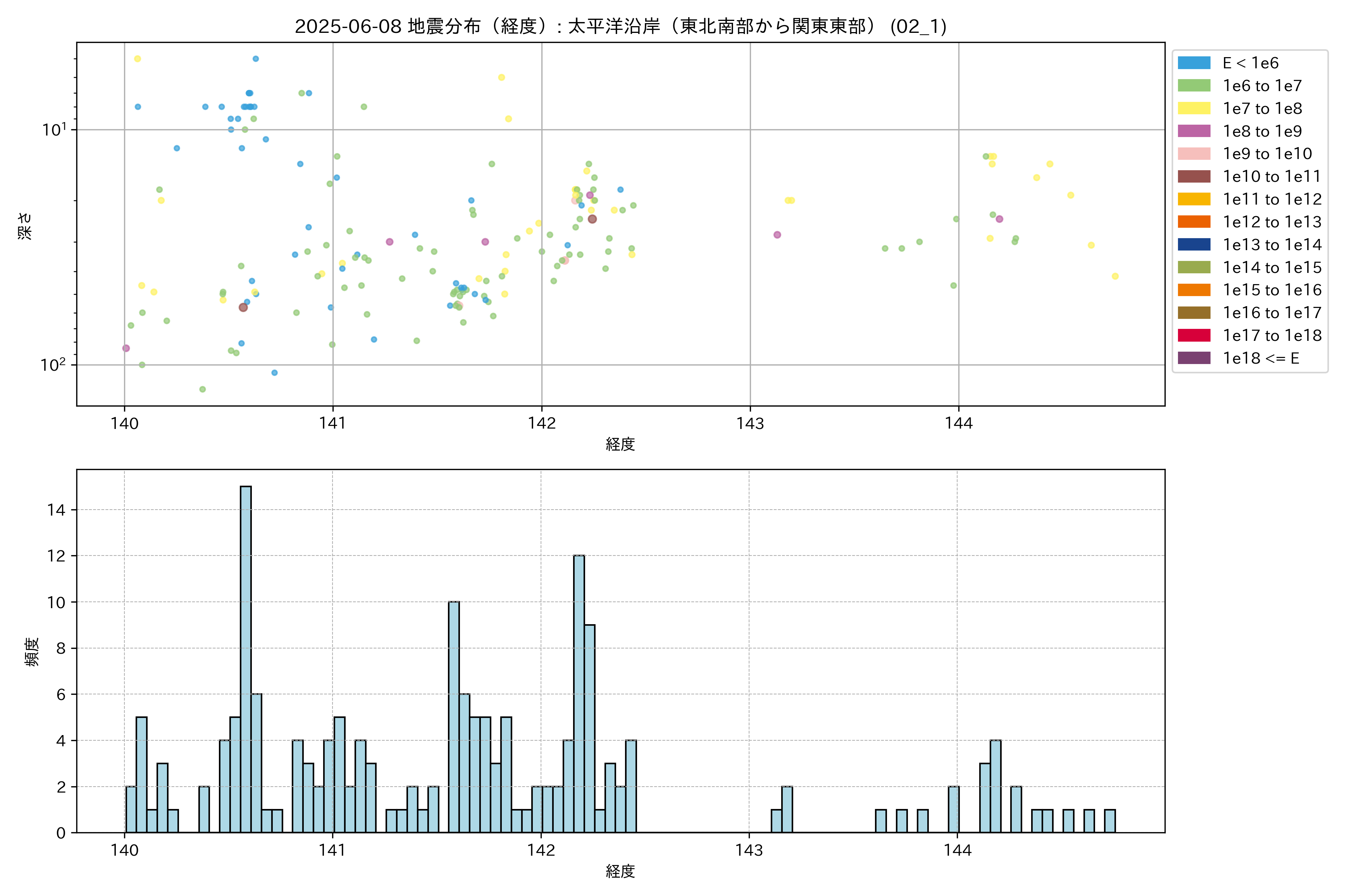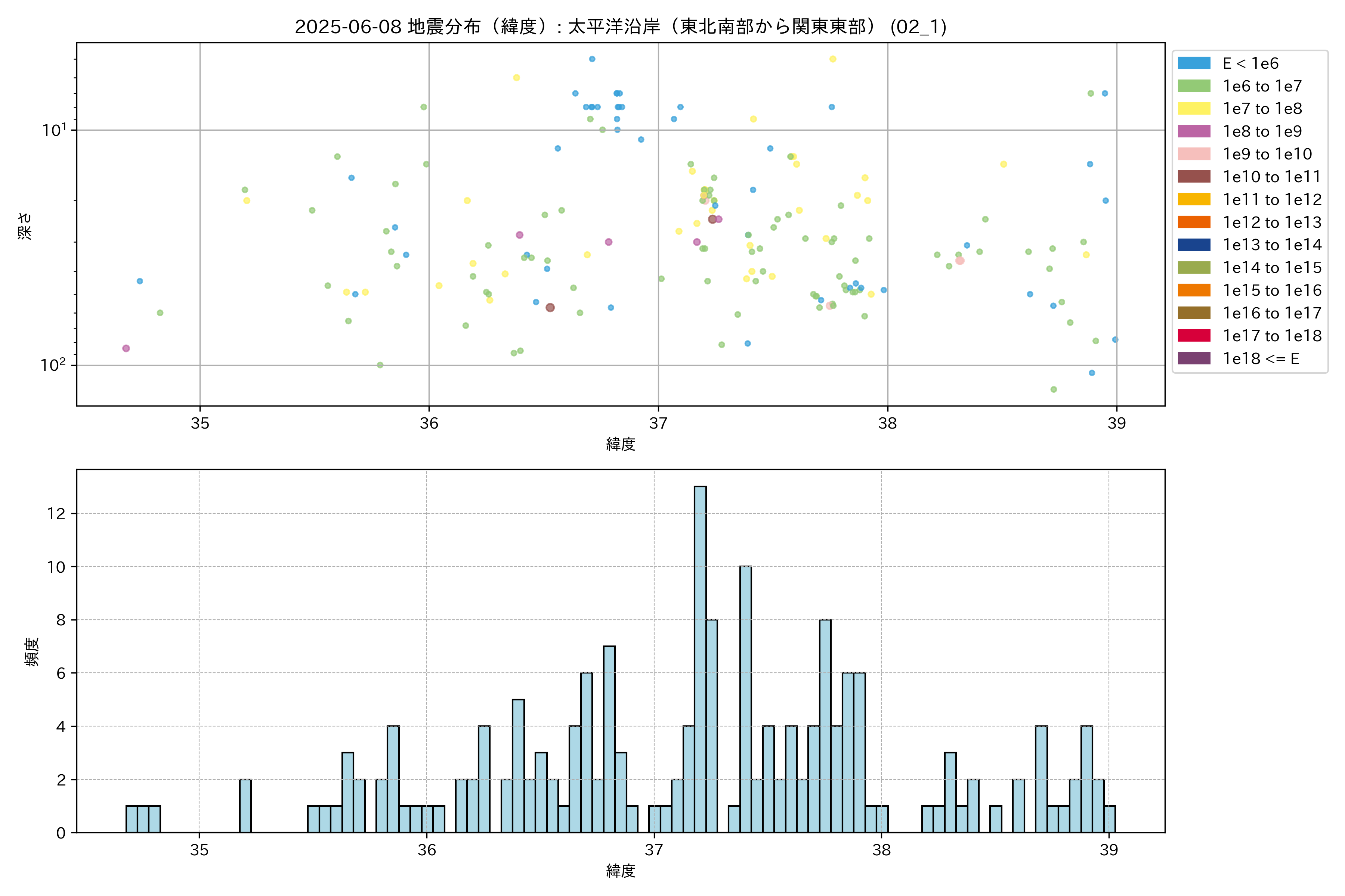 2025年06月08日 太平洋沿岸(東北南部から関東東部) エリア震源マップ