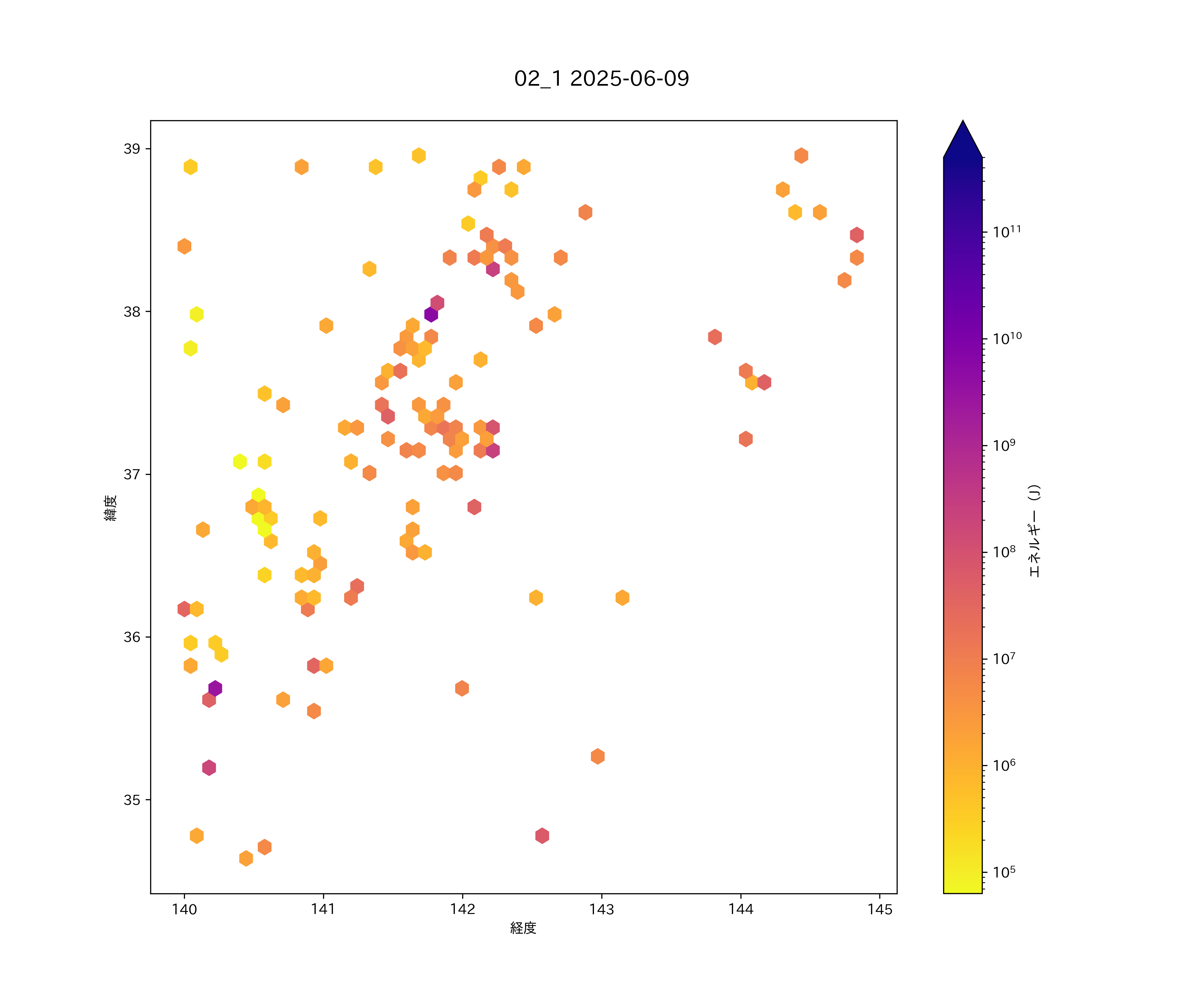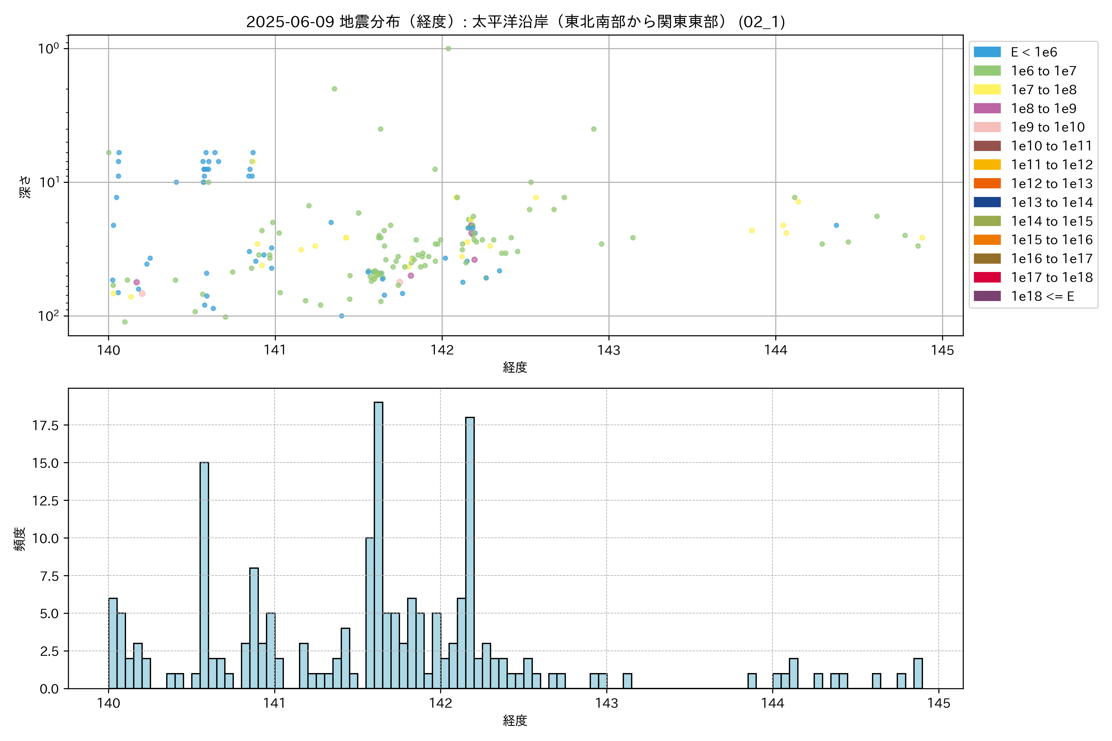 2025年06月09日 太平洋沿岸(東北南部から関東東部) エリア震源マップ