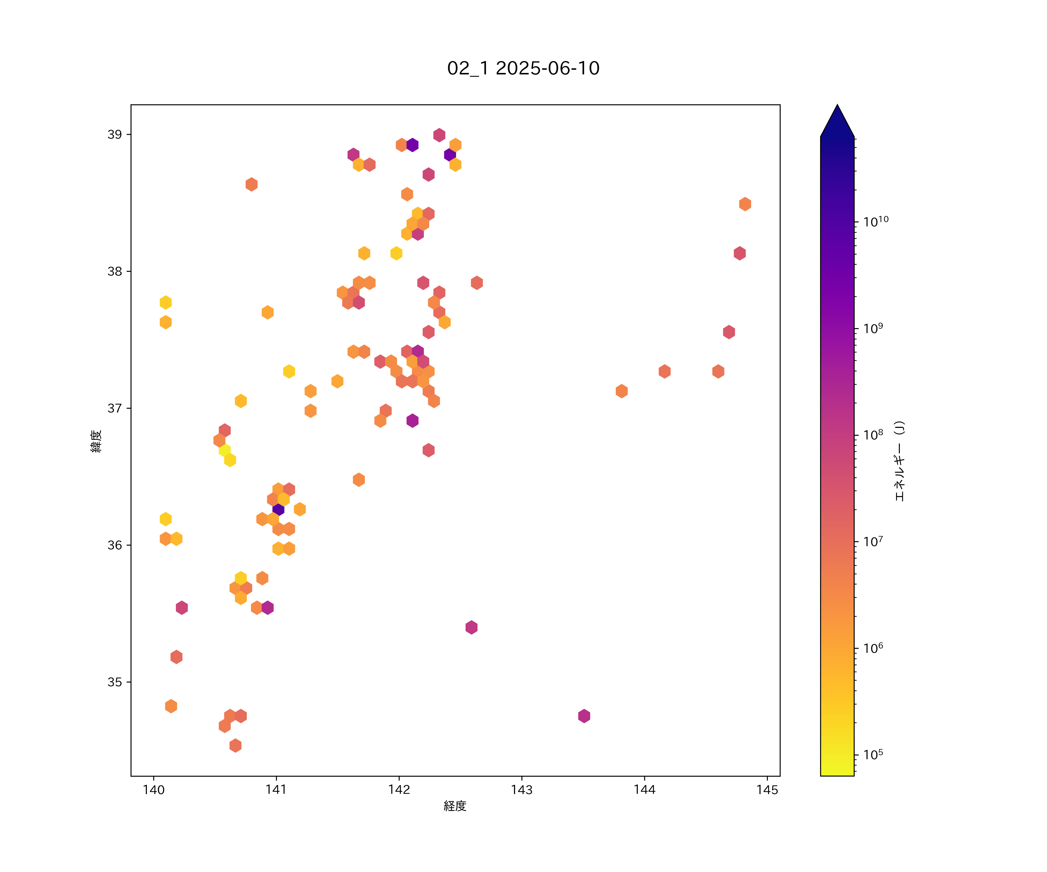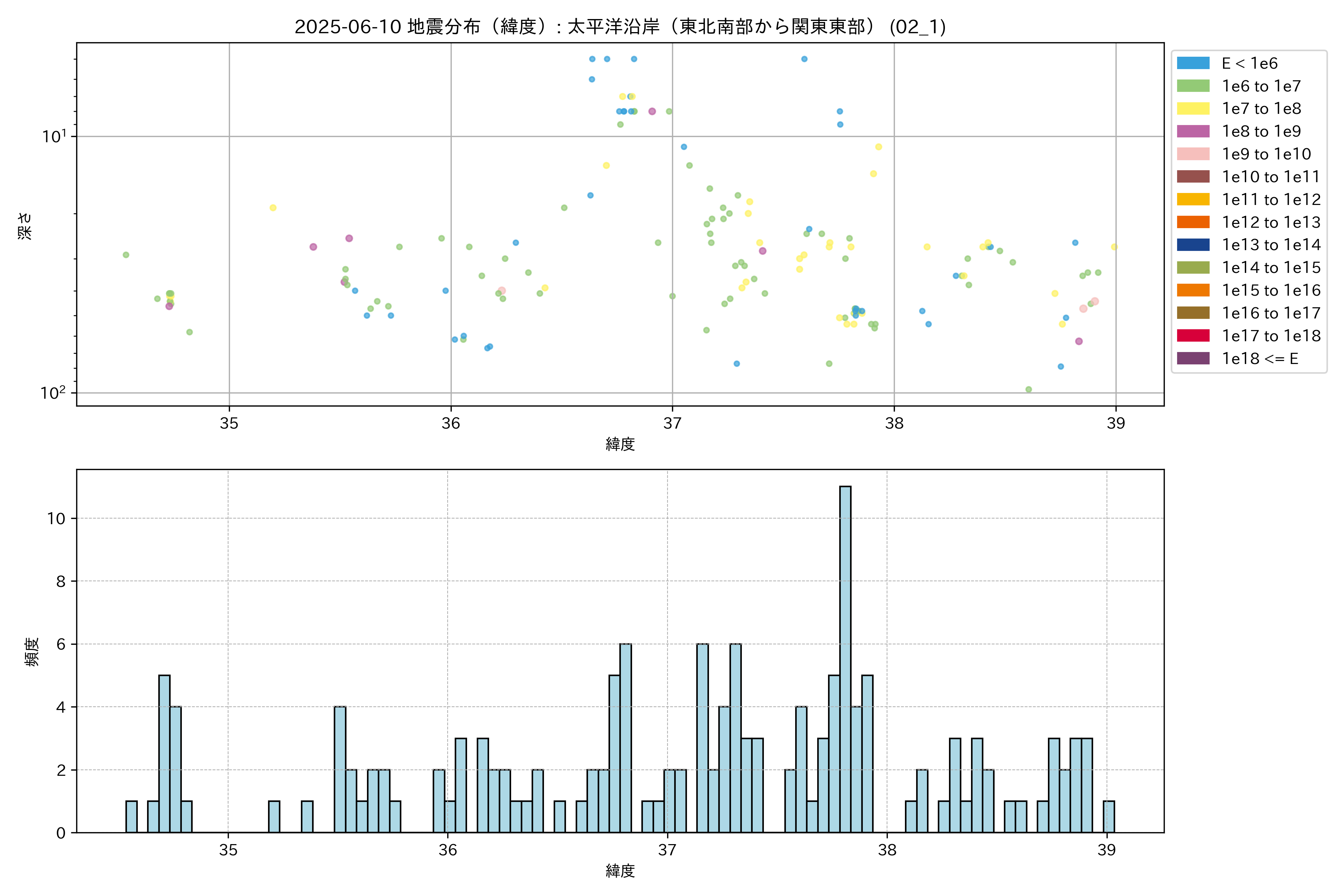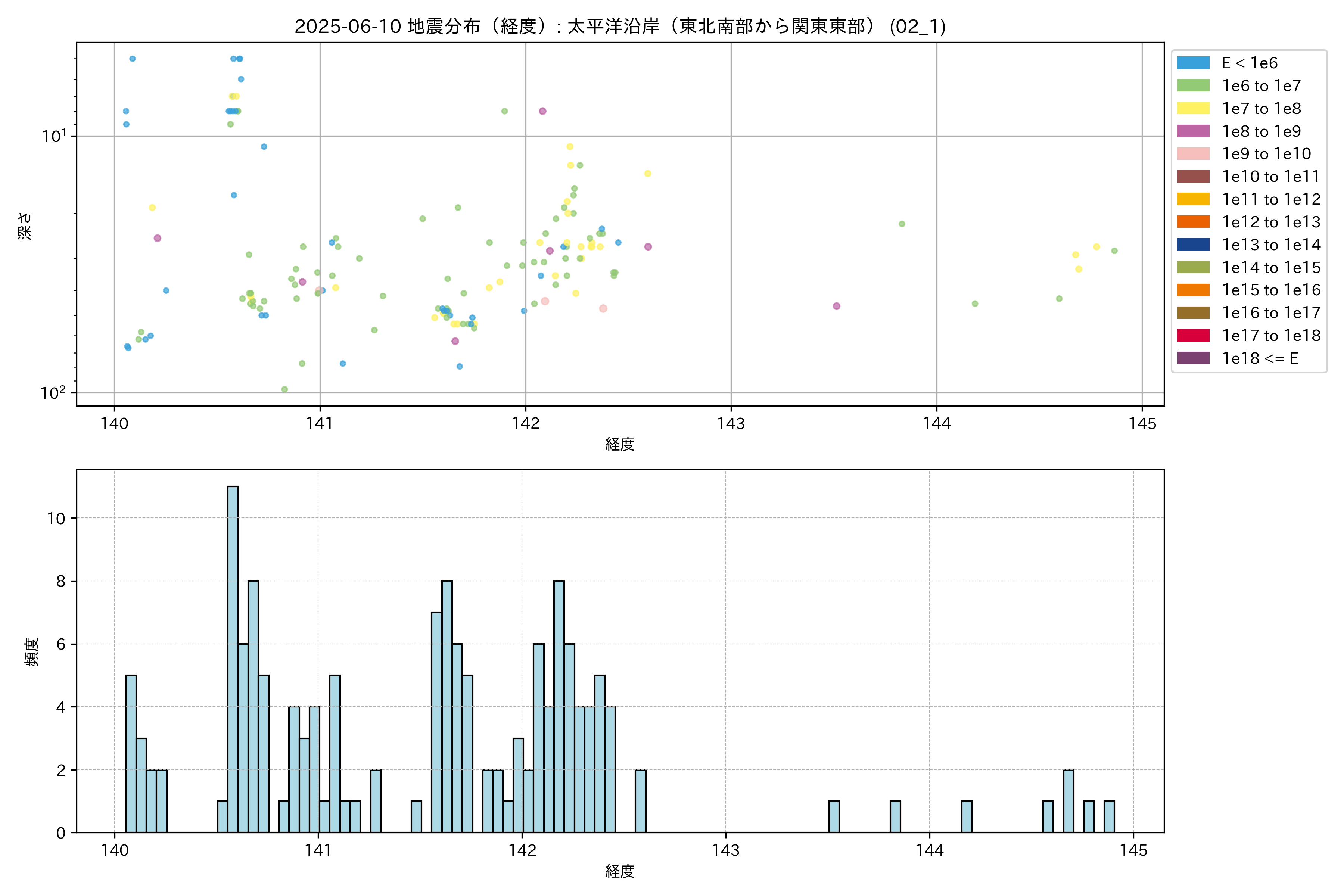 2025年06月10日 太平洋沿岸(東北南部から関東東部) エリア震源マップ