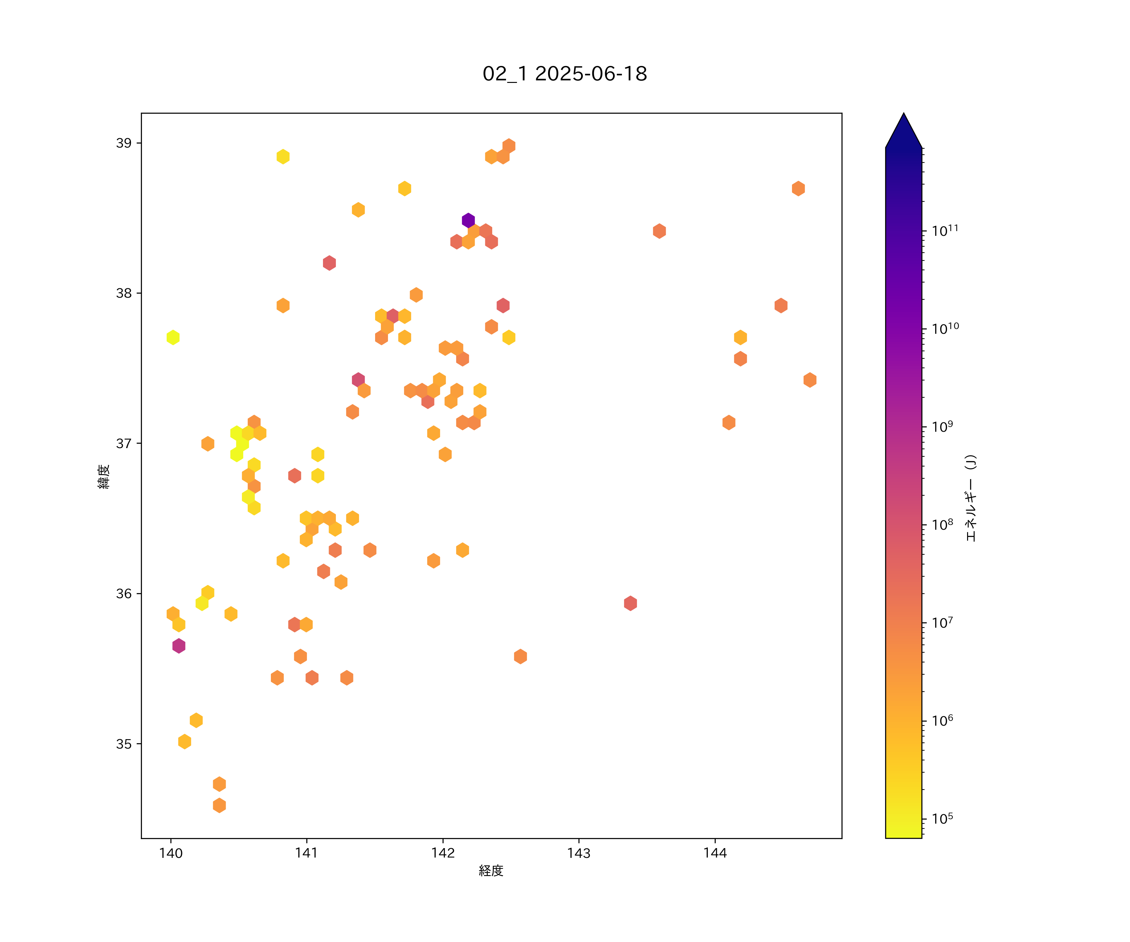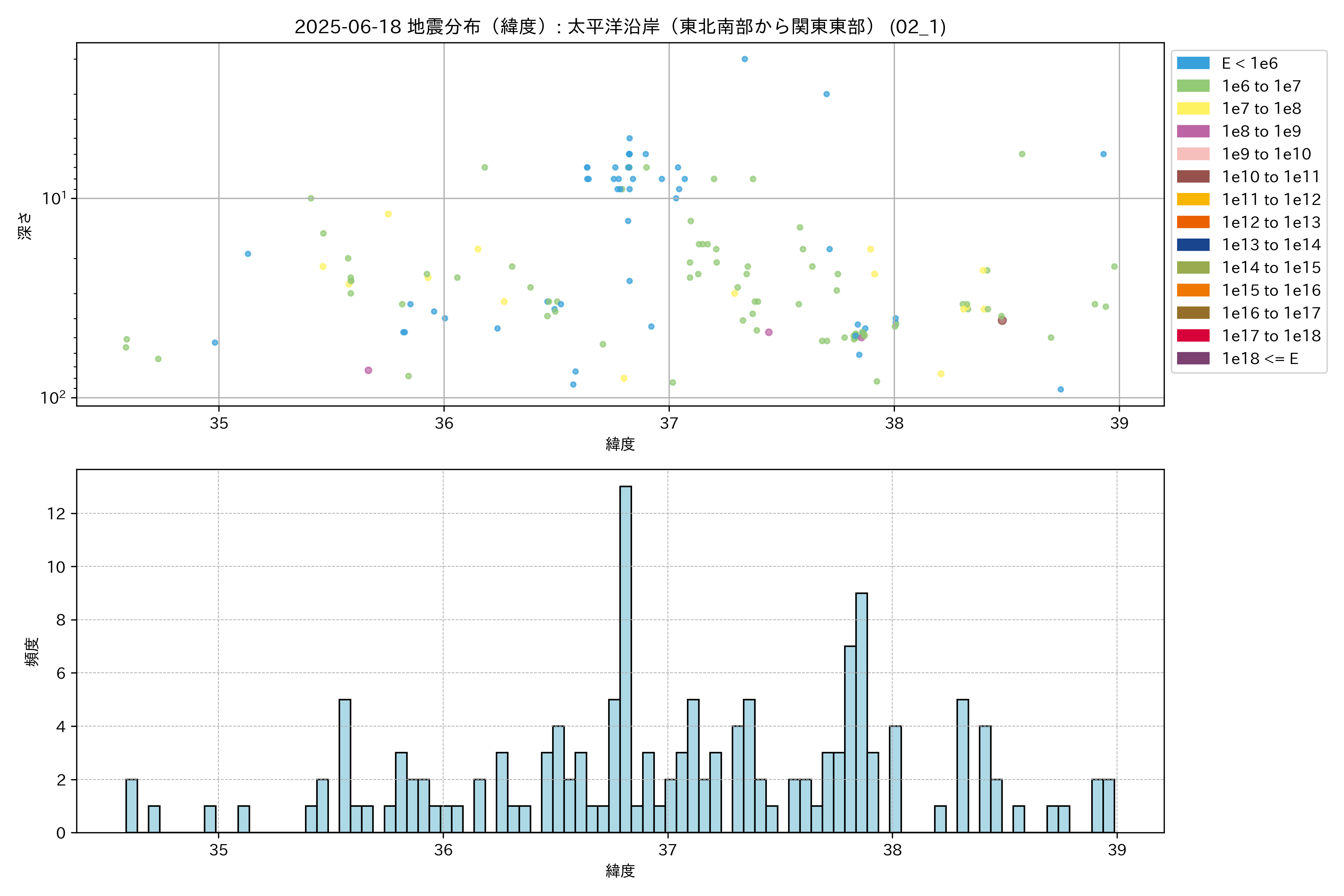 2025年06月18日 太平洋沿岸(東北南部から関東東部) エリア震源マップ