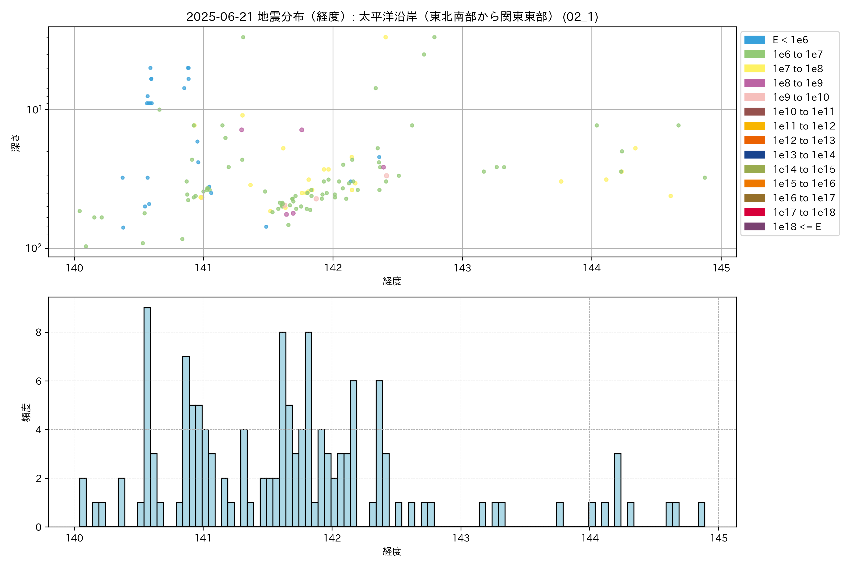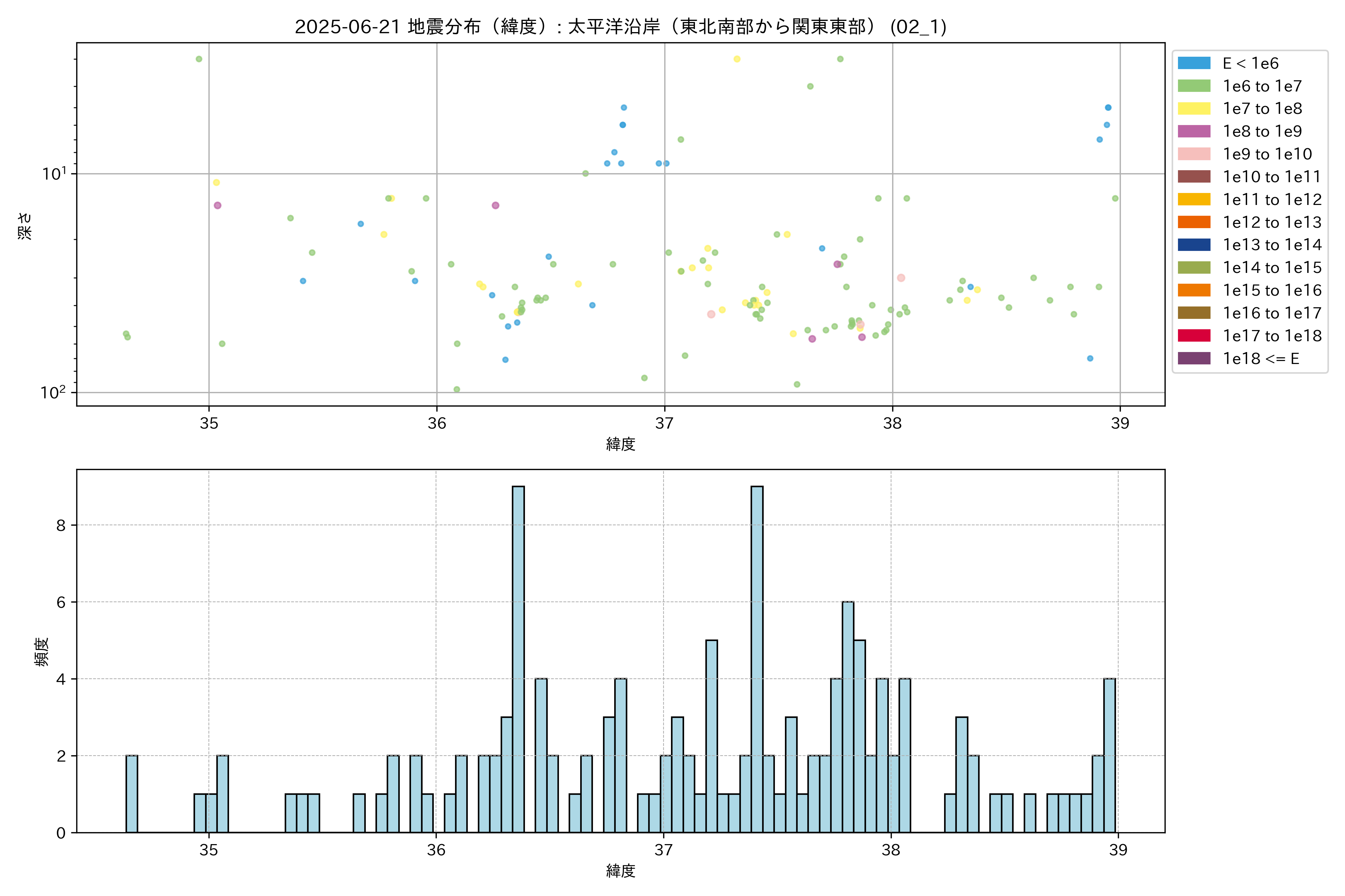 2025年06月21日 太平洋沿岸(東北南部から関東東部) エリア震源マップ