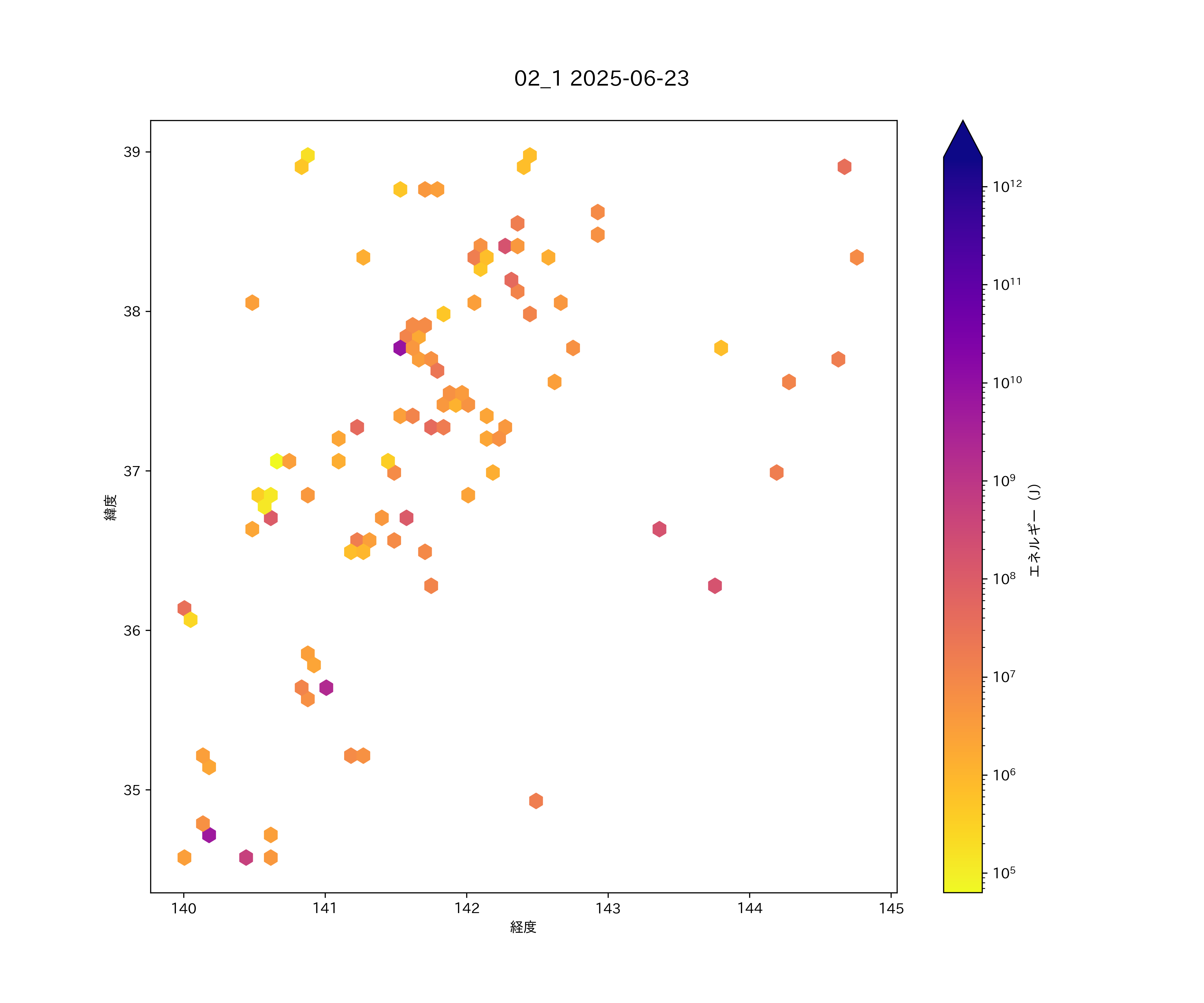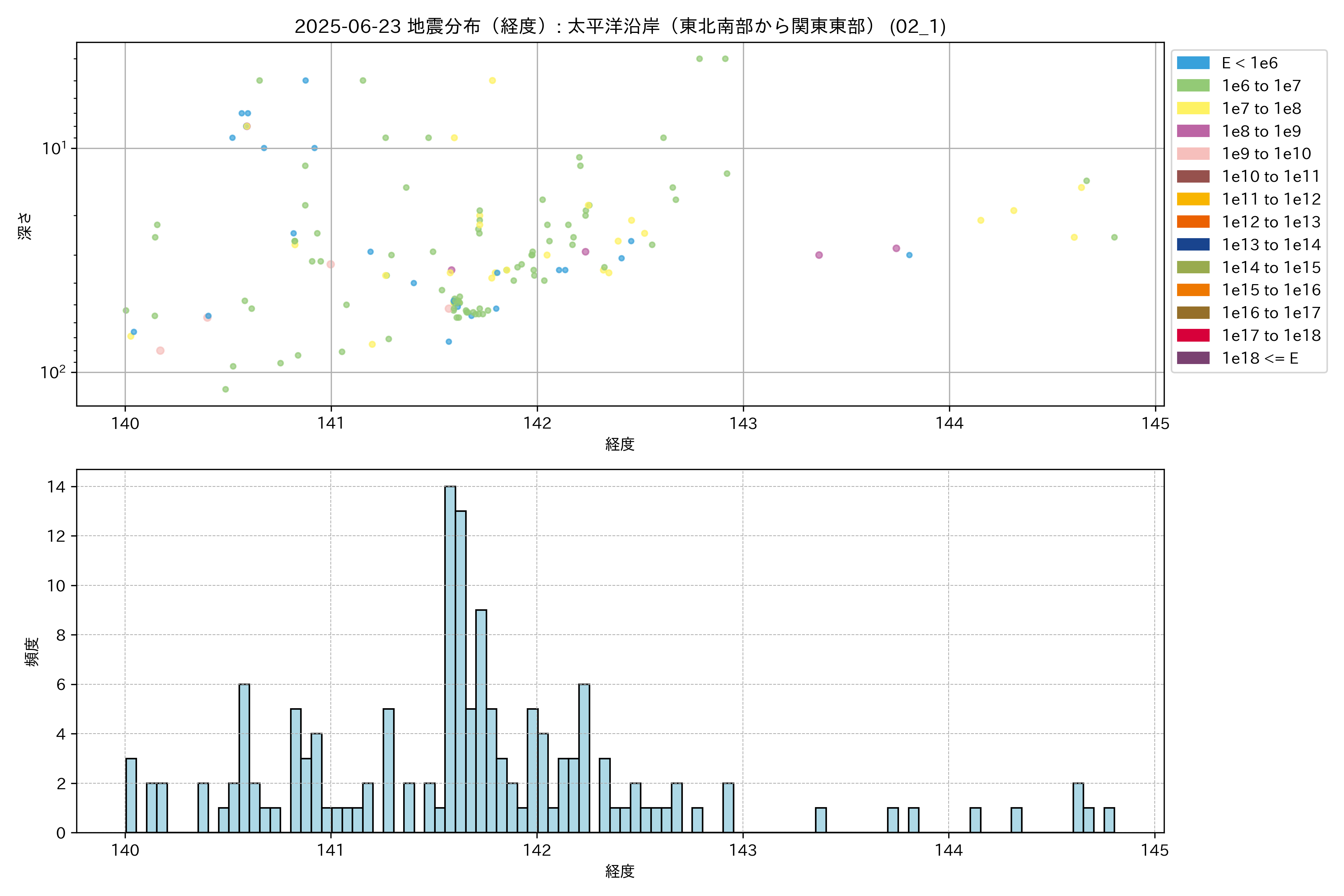 2025年06月23日 太平洋沿岸(東北南部から関東東部) エリア震源マップ
