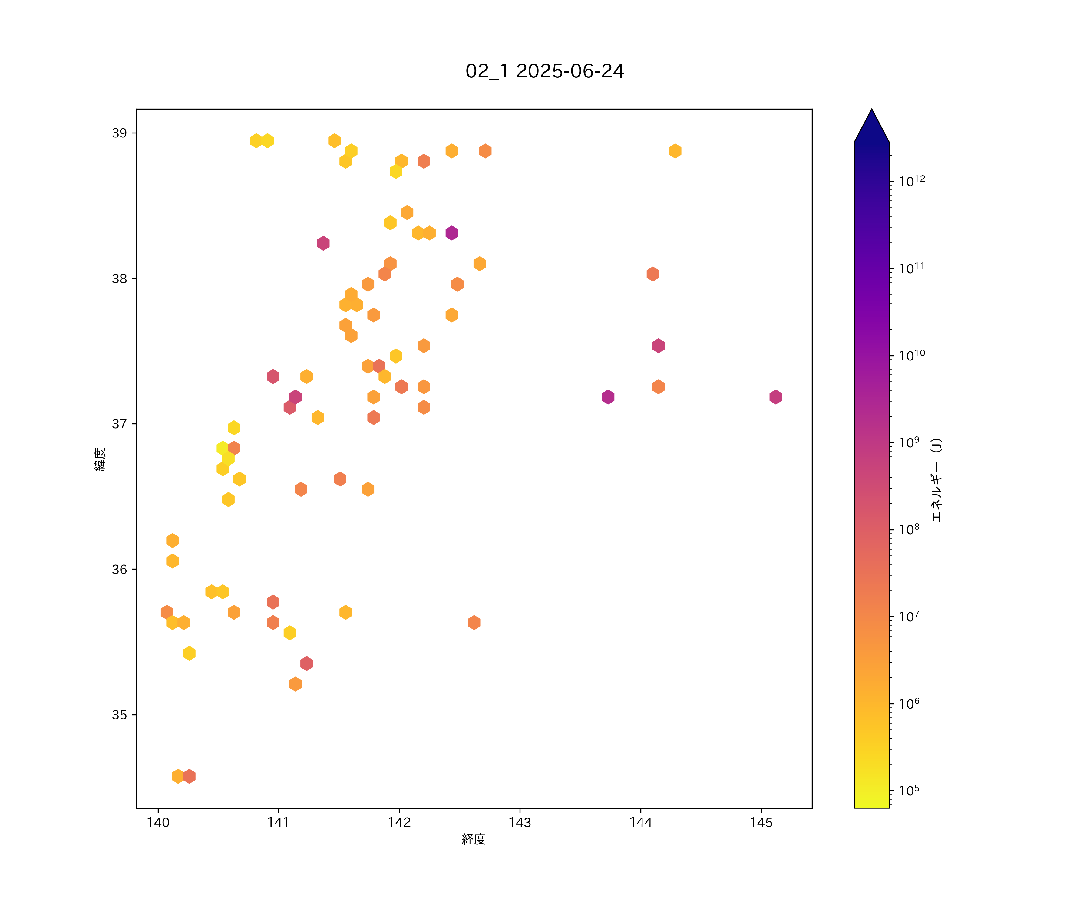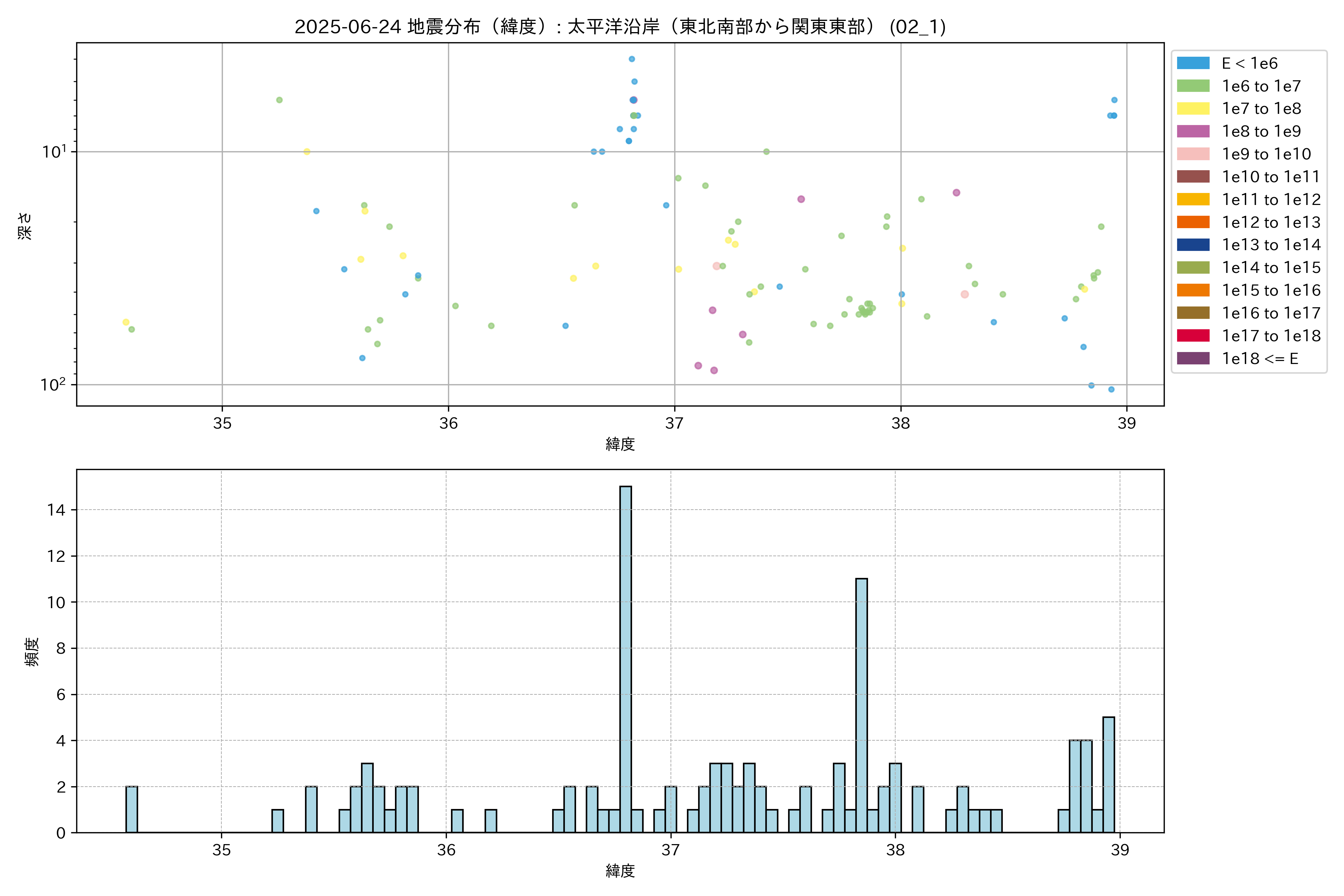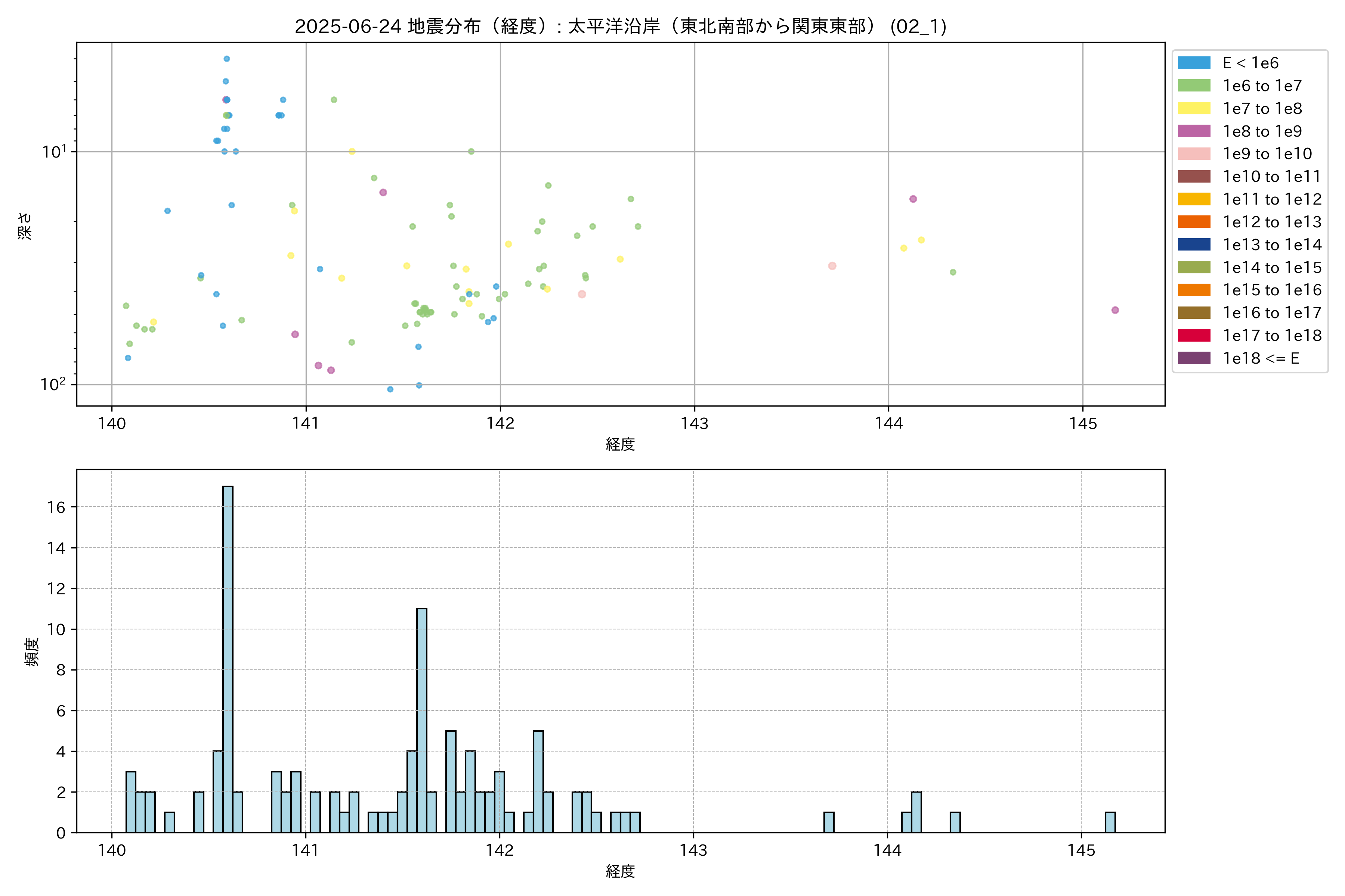 2025年06月24日 太平洋沿岸(東北南部から関東東部) エリア震源マップ