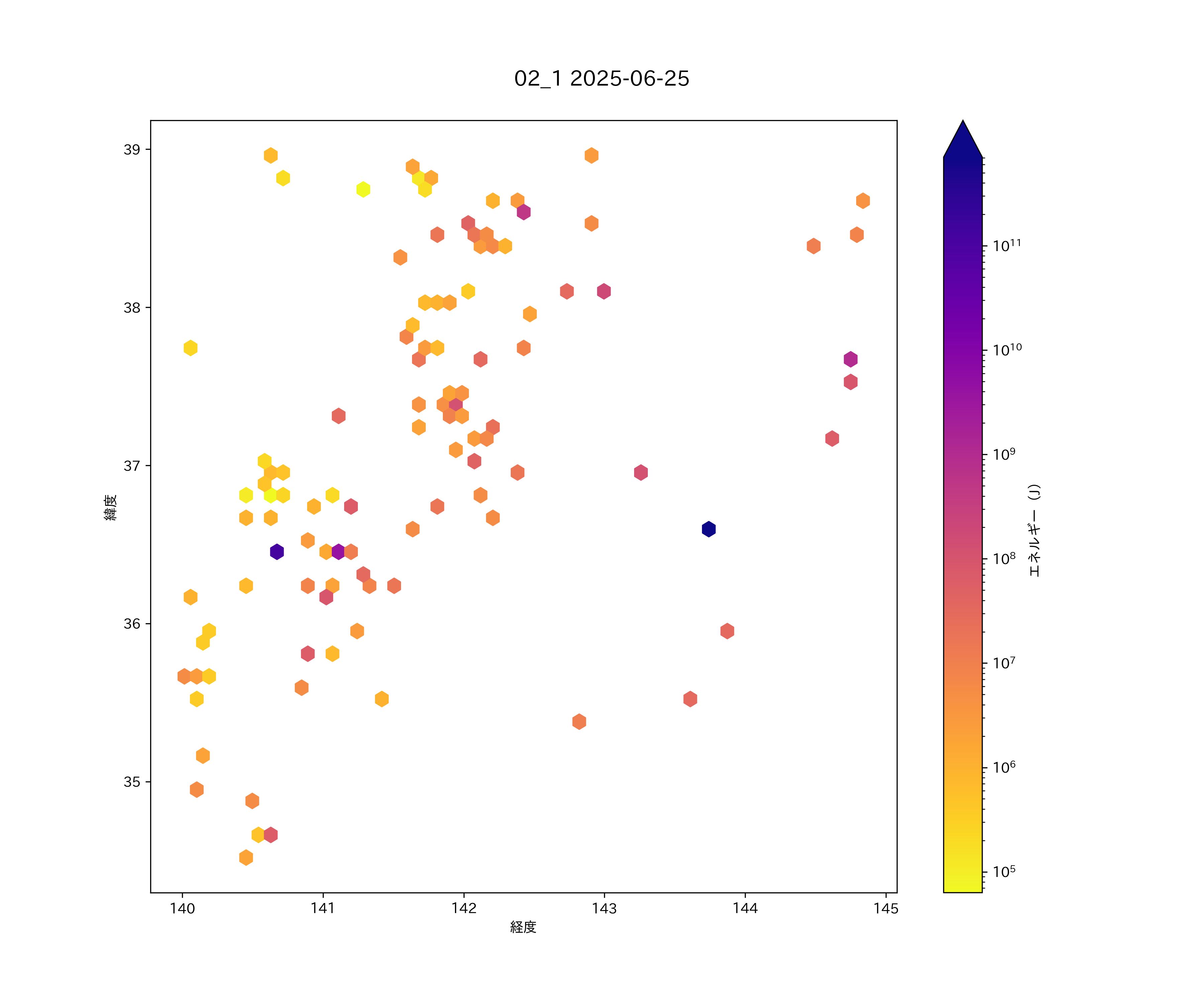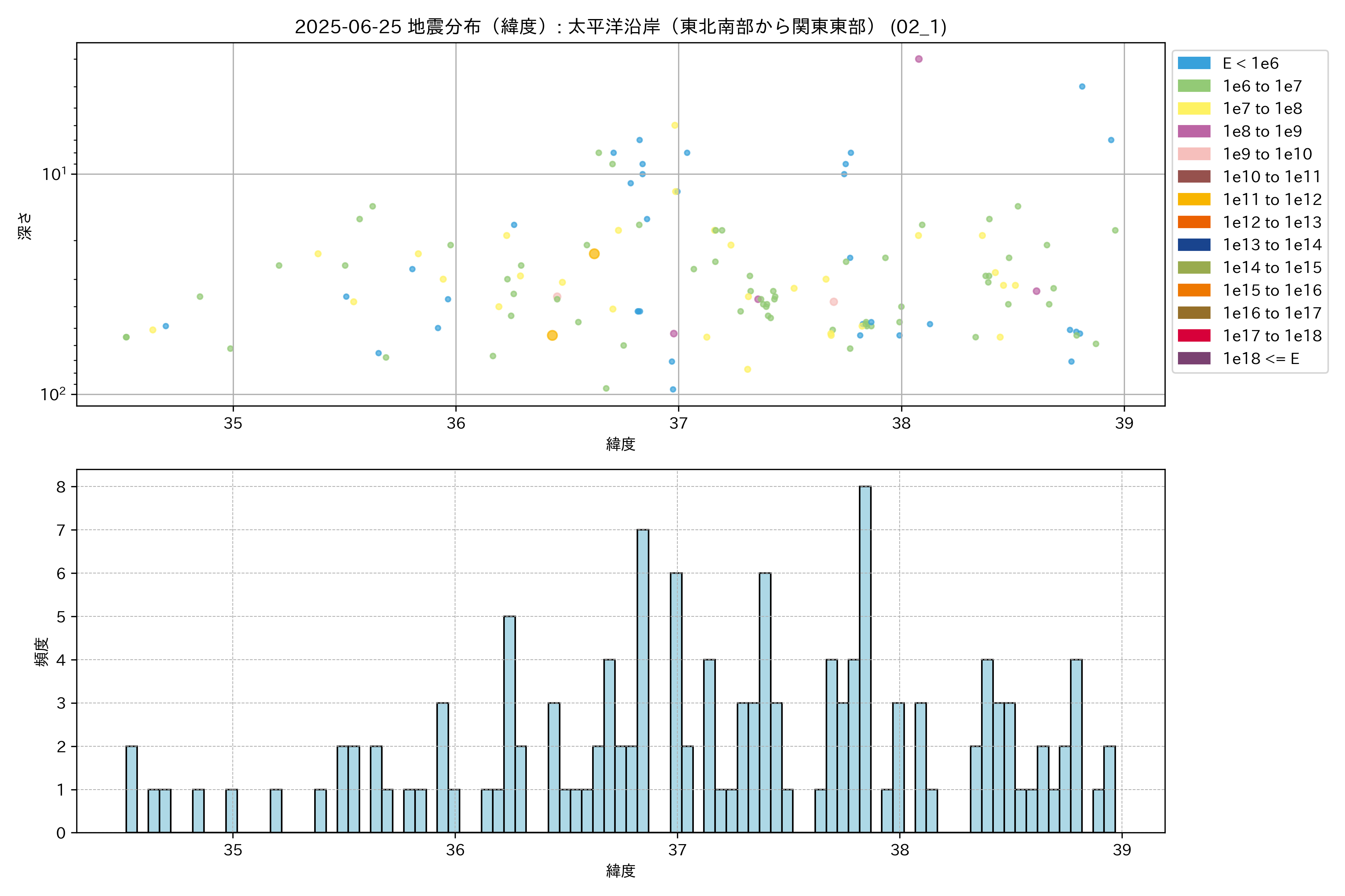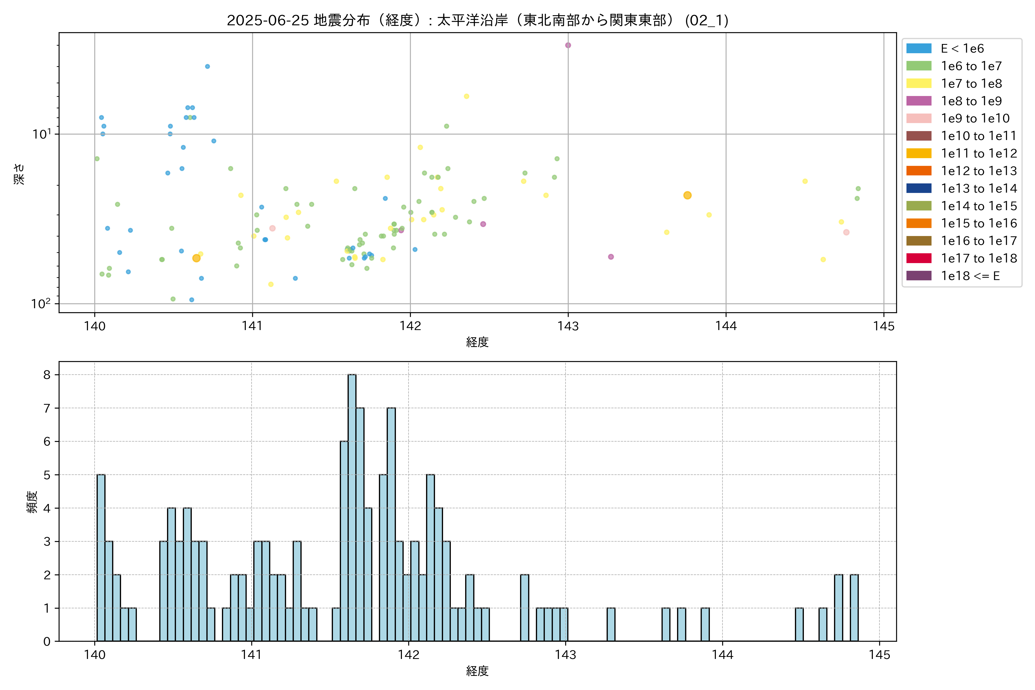 2025年06月25日 太平洋沿岸(東北南部から関東東部) エリア震源マップ