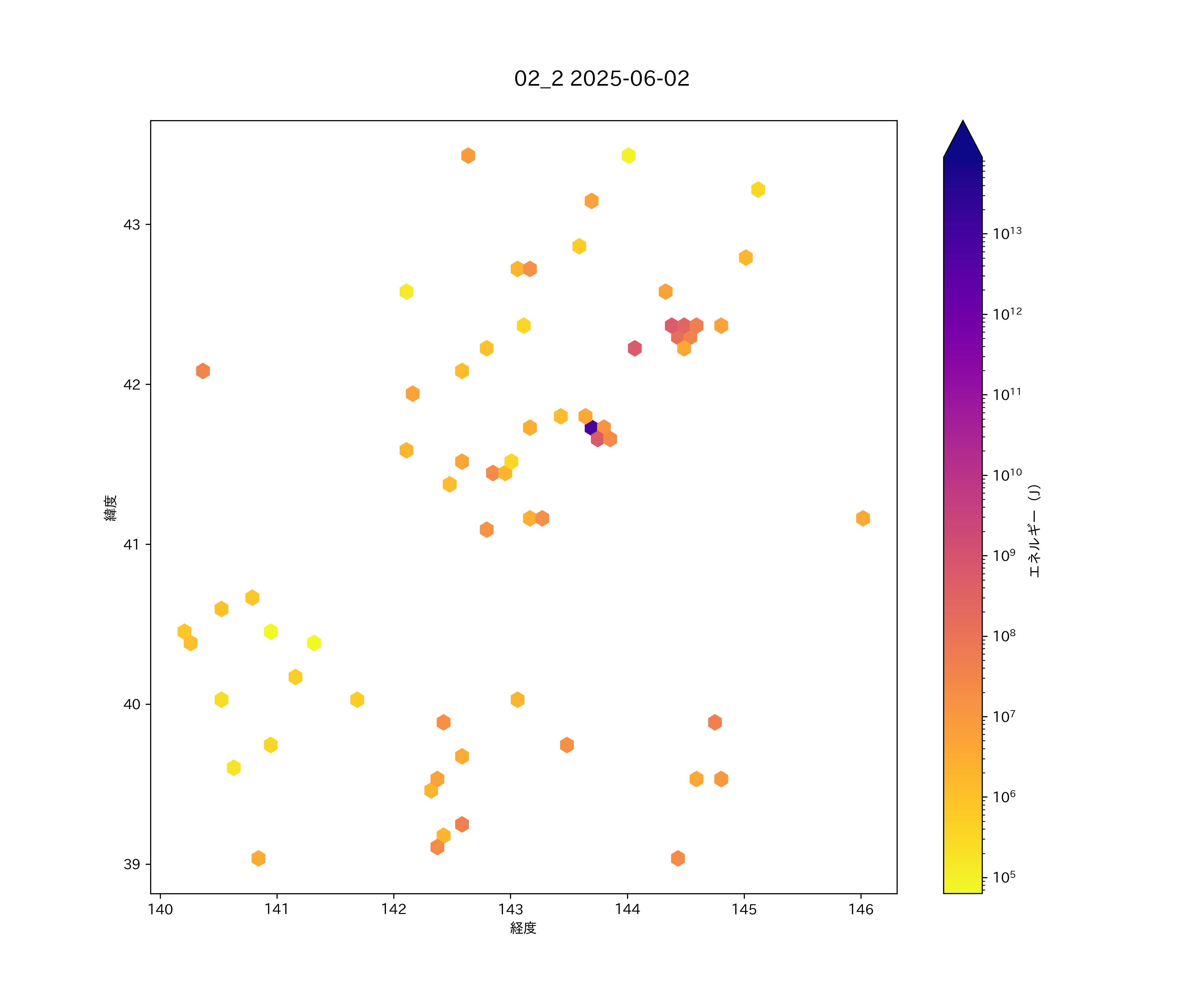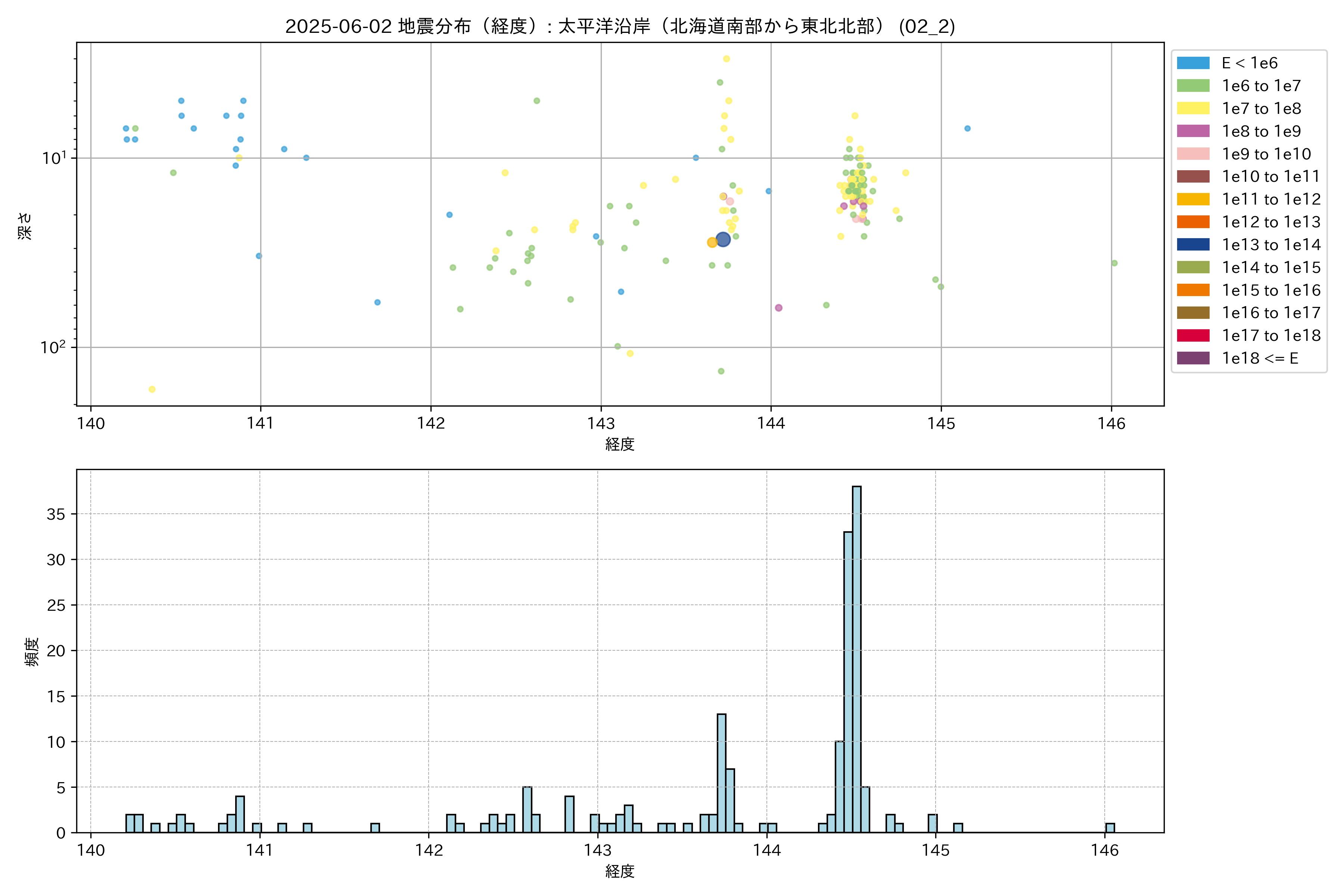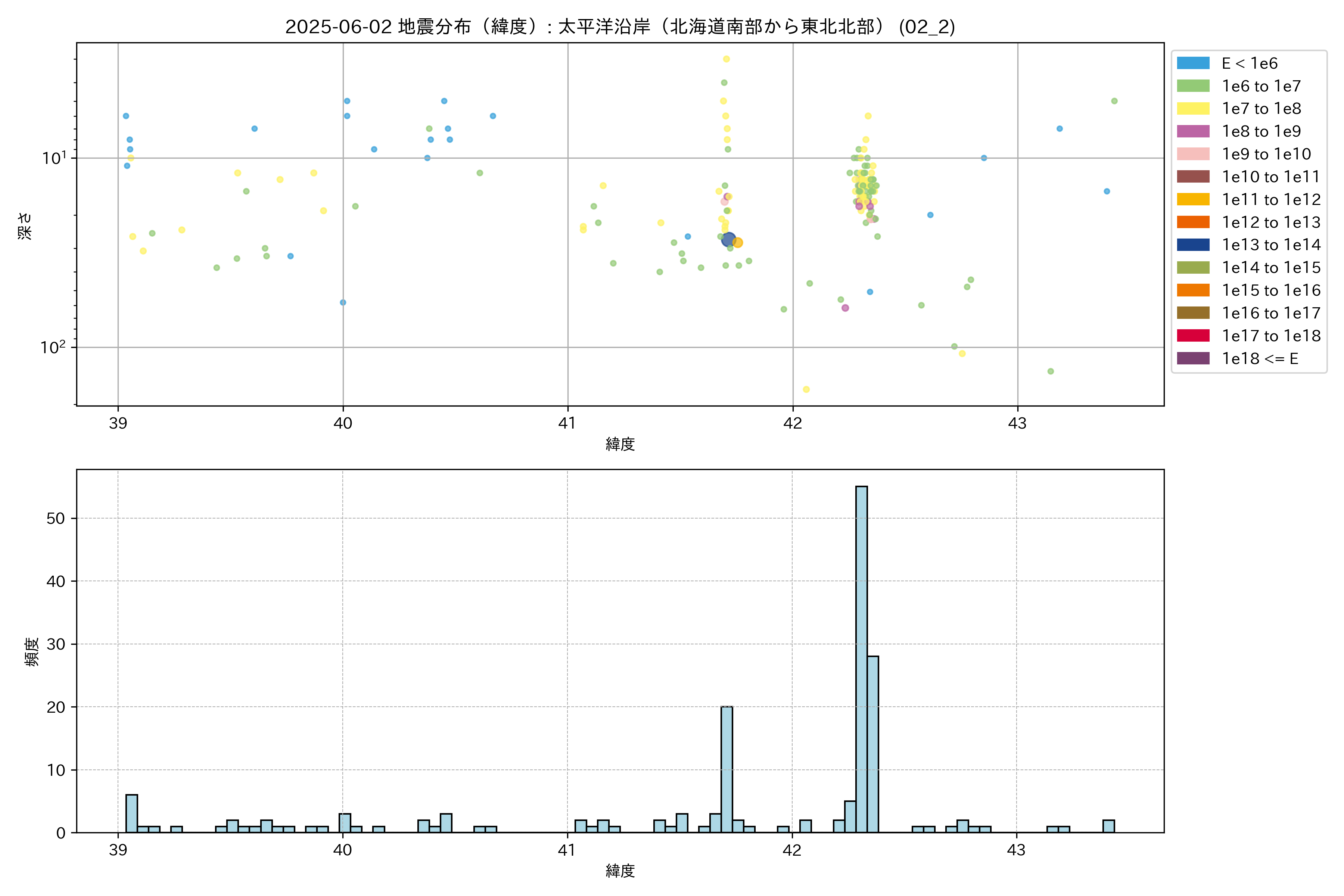 2025年06月02日 太平洋沿岸(北海道南部から東北北部) エリア震源マップ