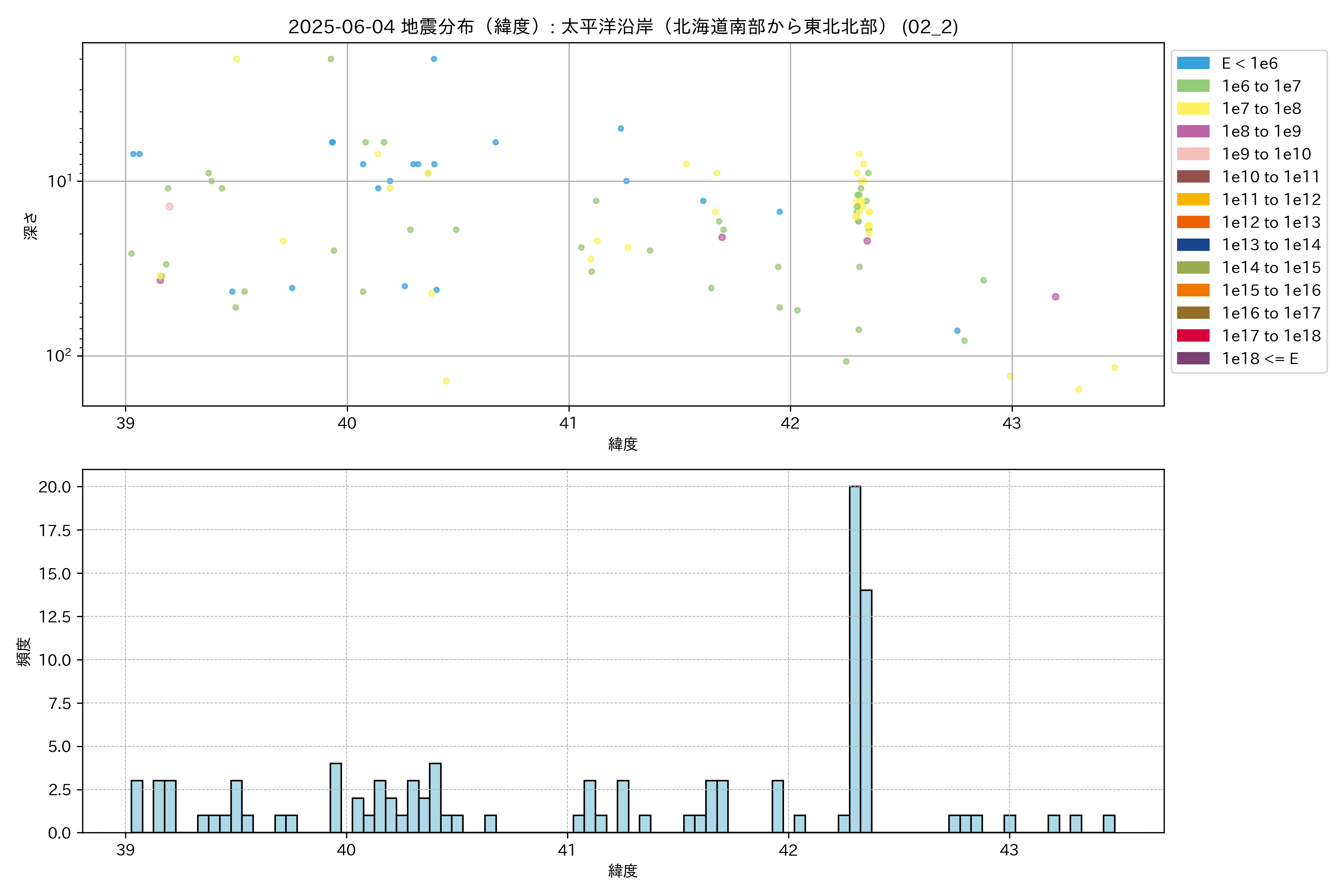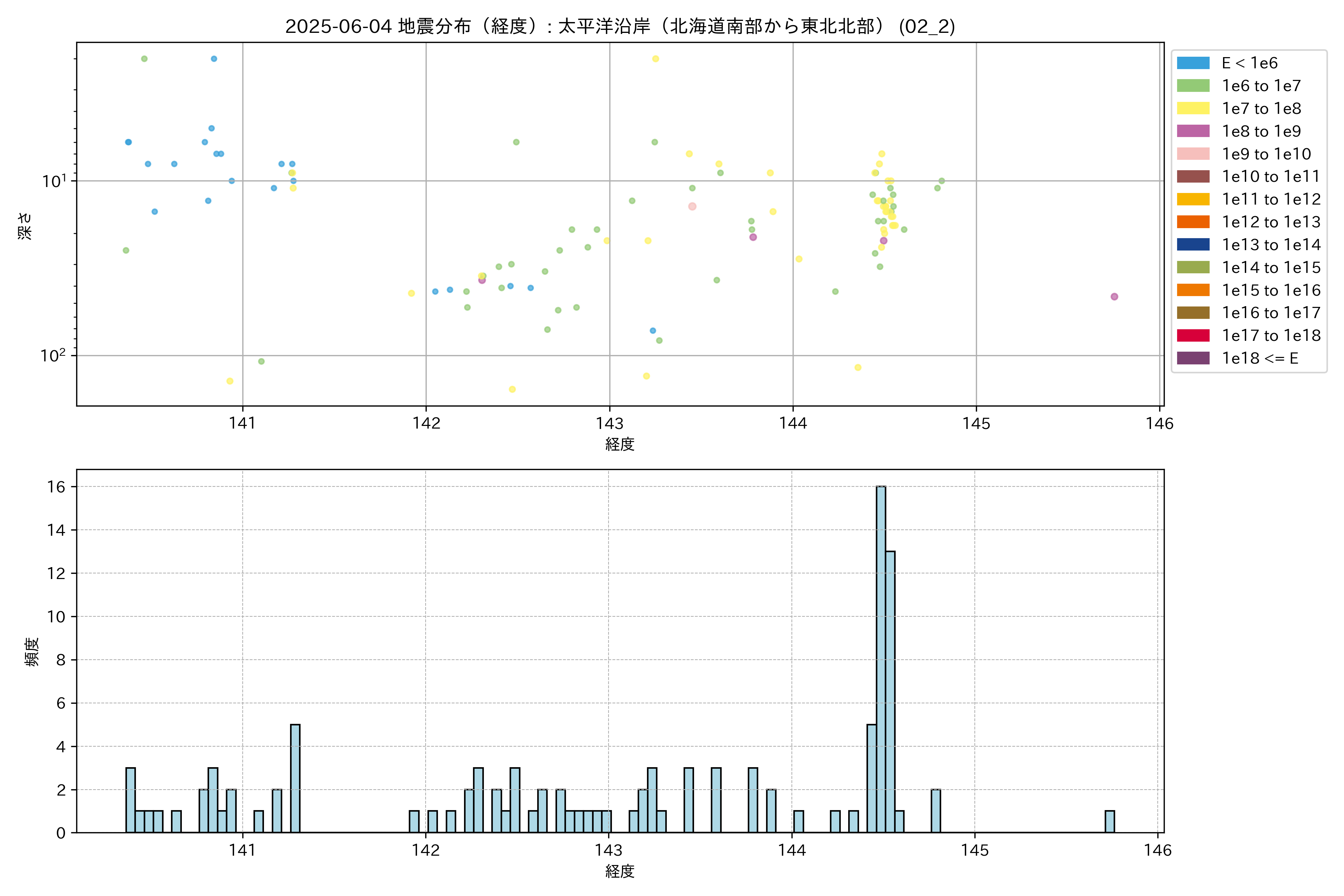2025年06月04日 太平洋沿岸(北海道南部から東北北部) エリア震源マップ