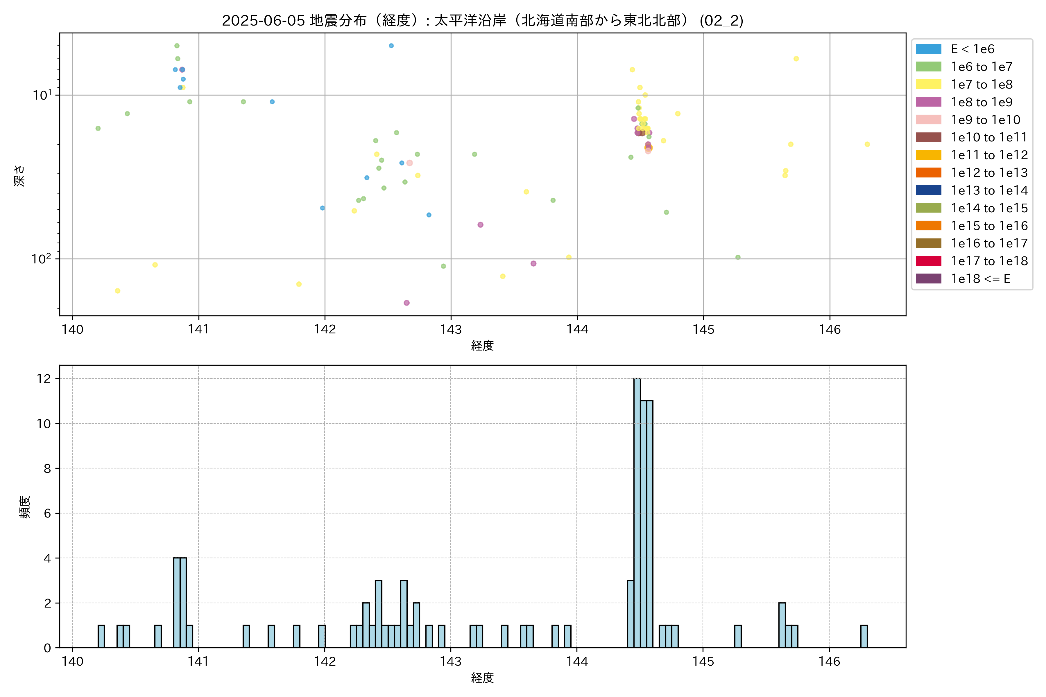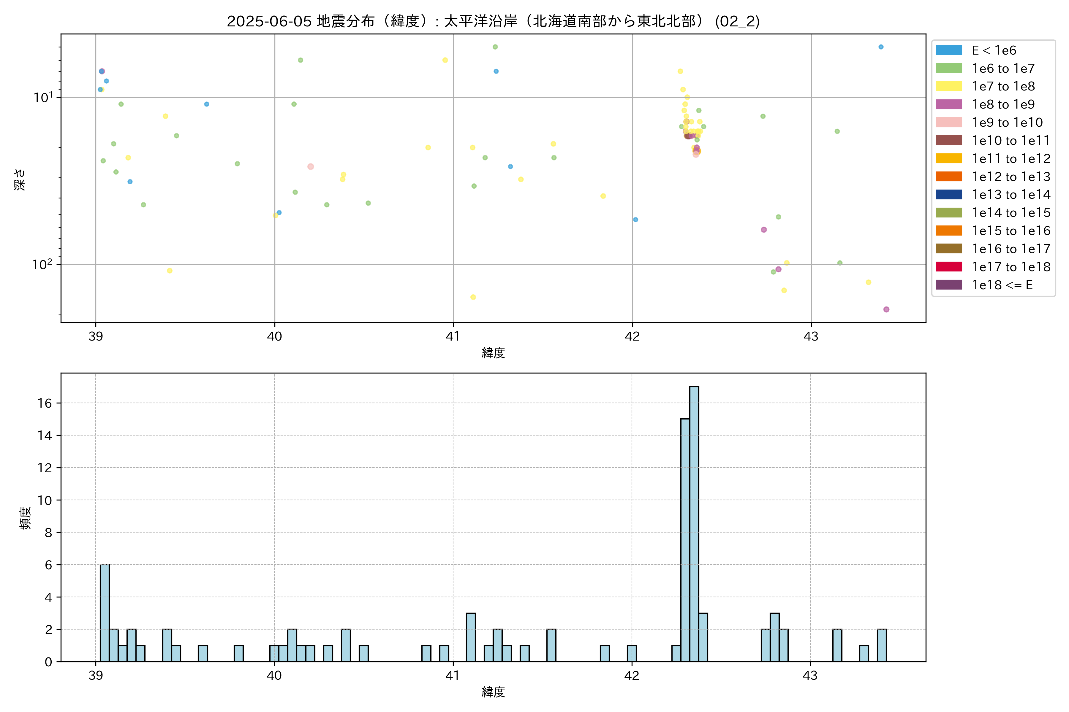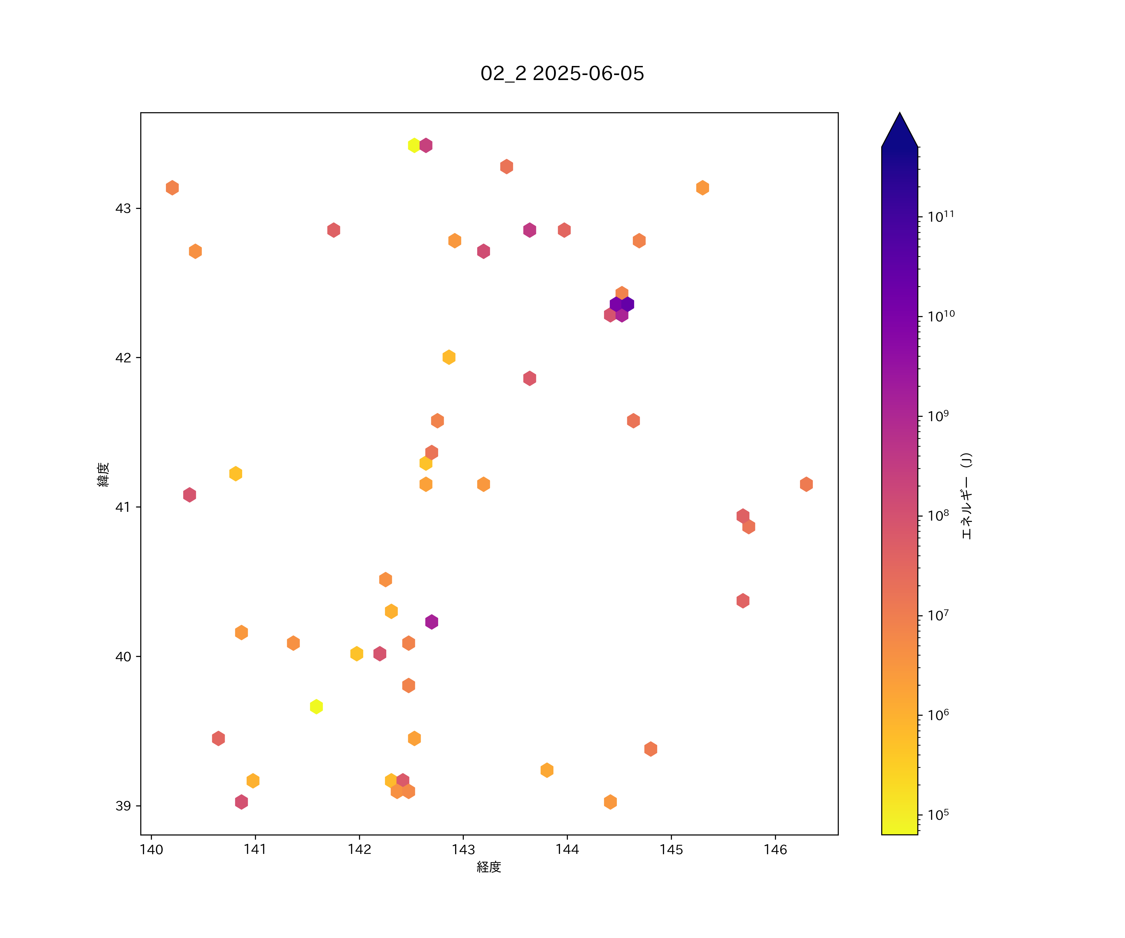 2025年06月05日 太平洋沿岸(北海道南部から東北北部) エリア震源マップ