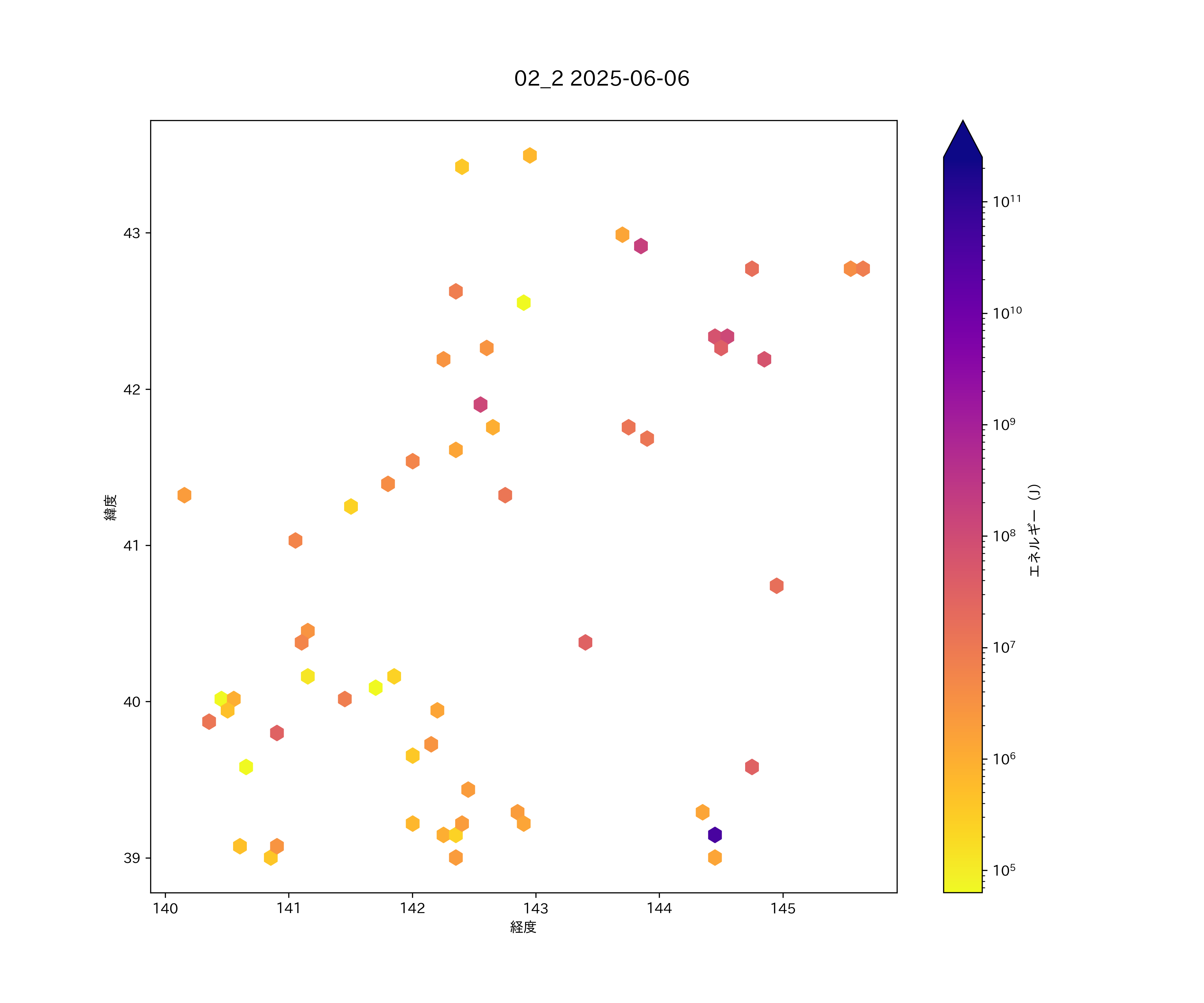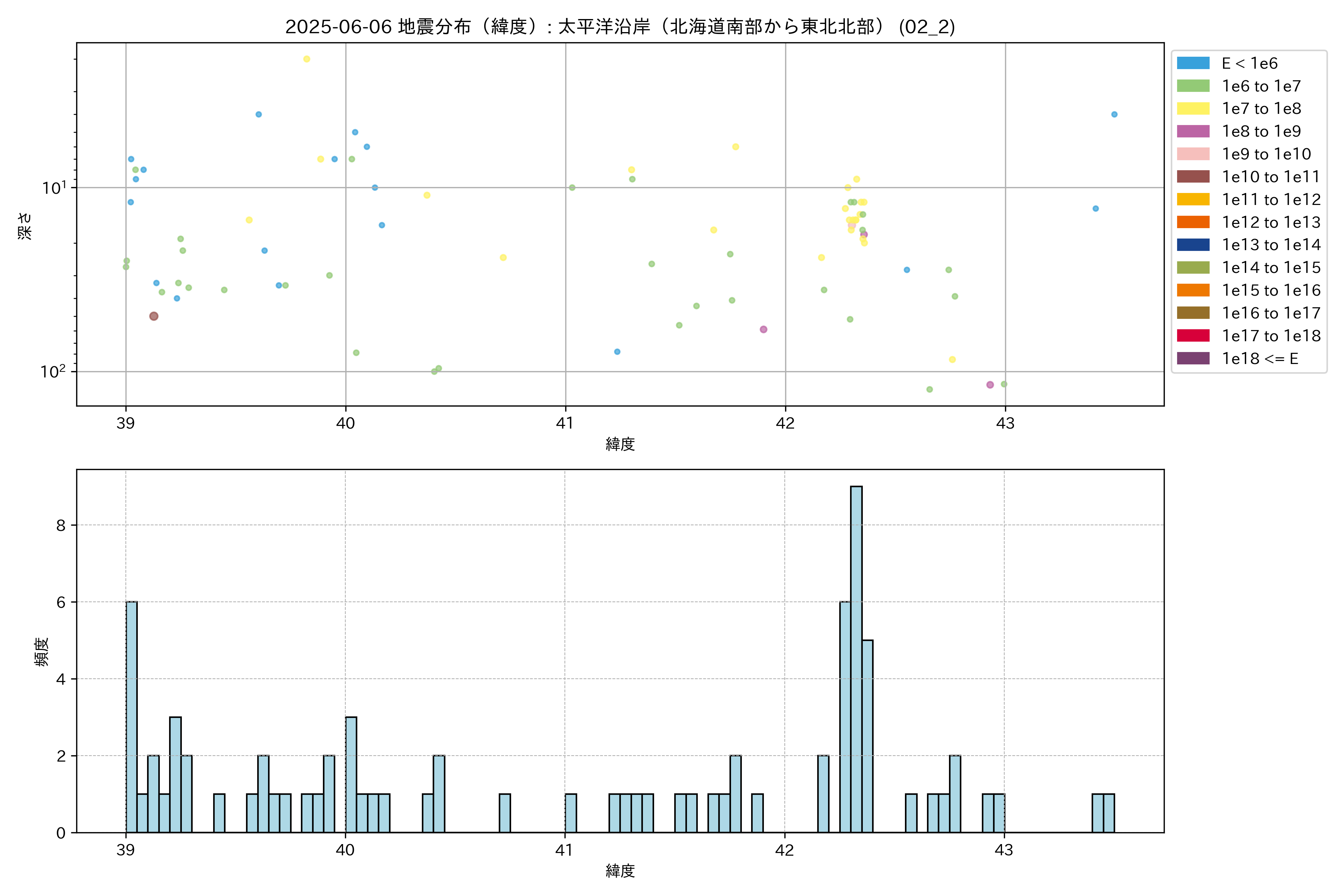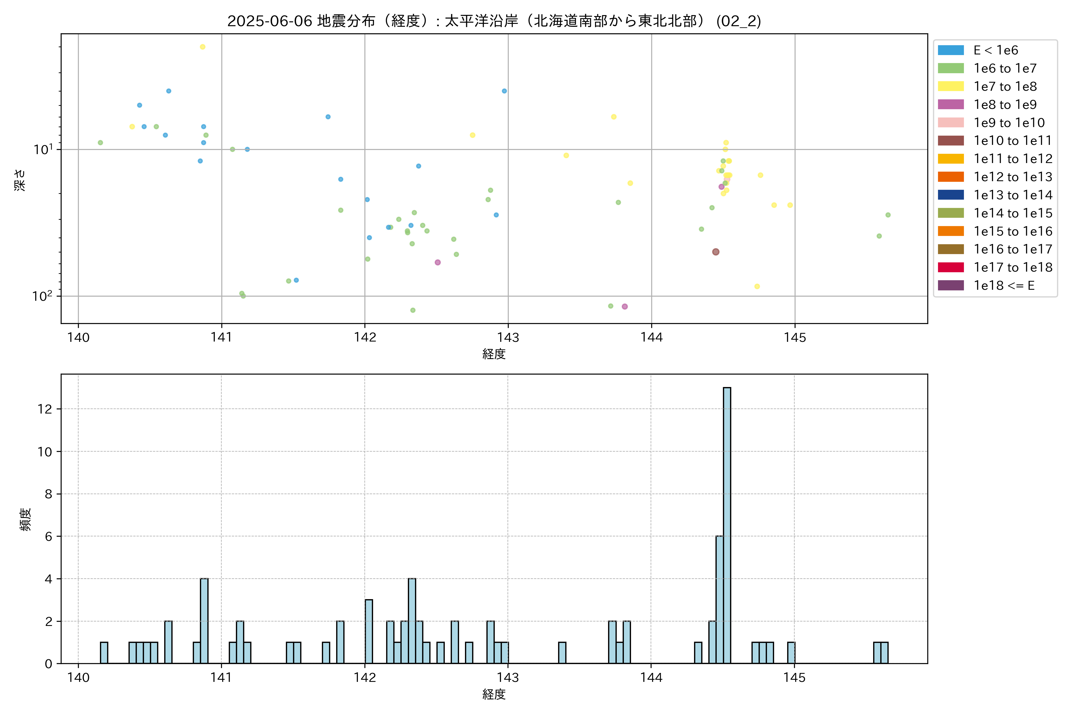 2025年06月06日 太平洋沿岸(北海道南部から東北北部) エリア震源マップ