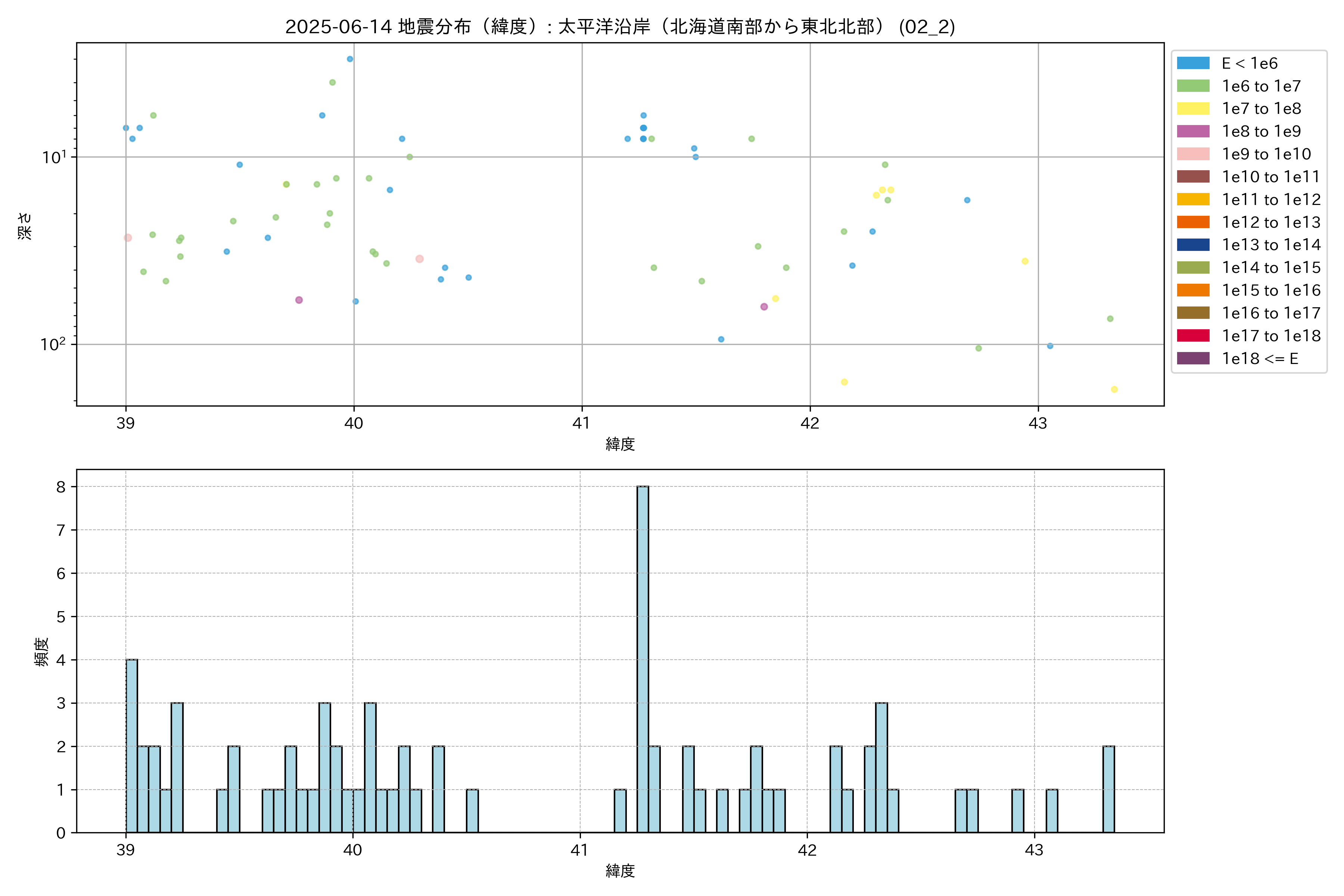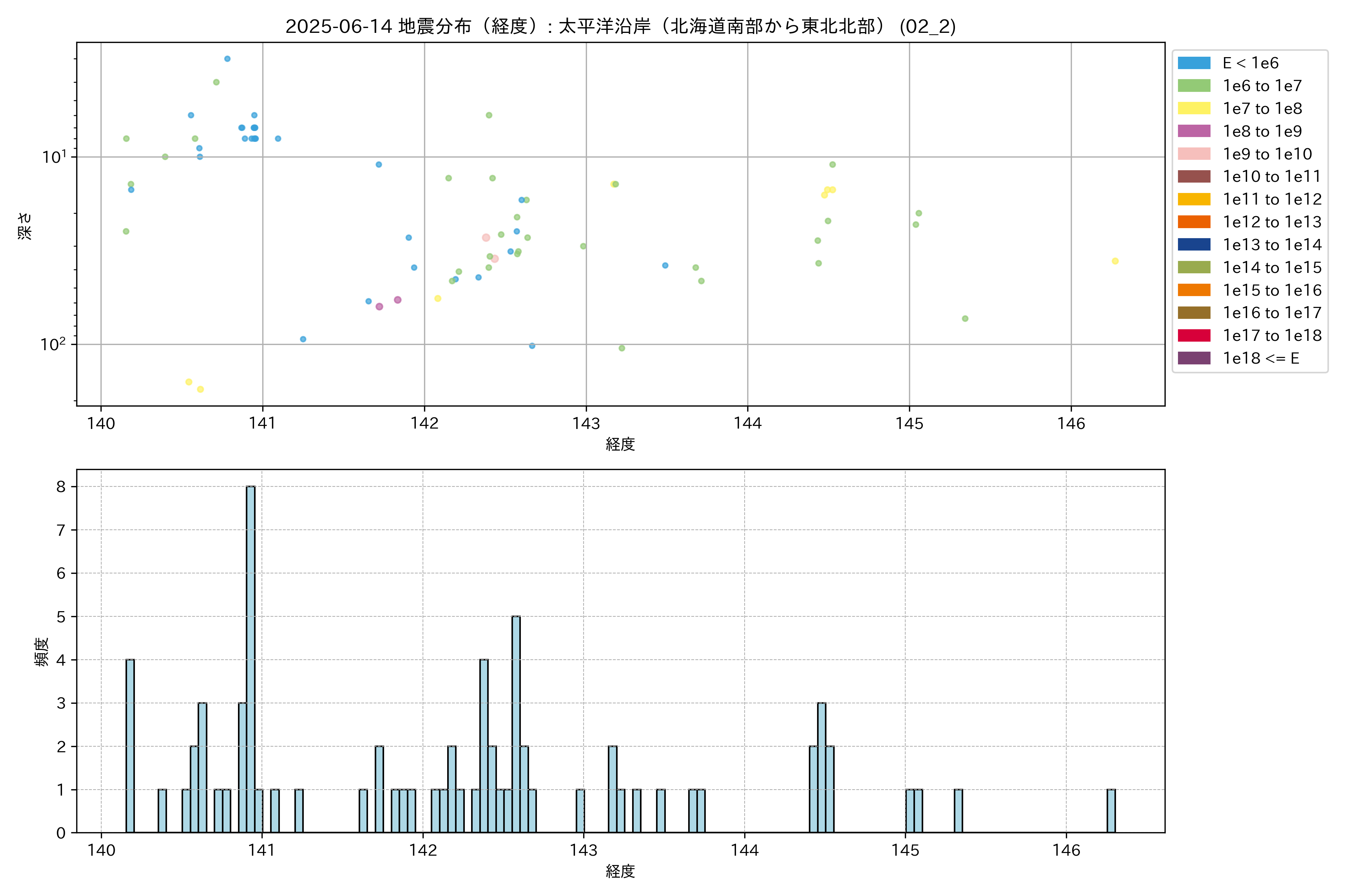 2025年06月14日 太平洋沿岸(北海道南部から東北北部) エリア震源マップ