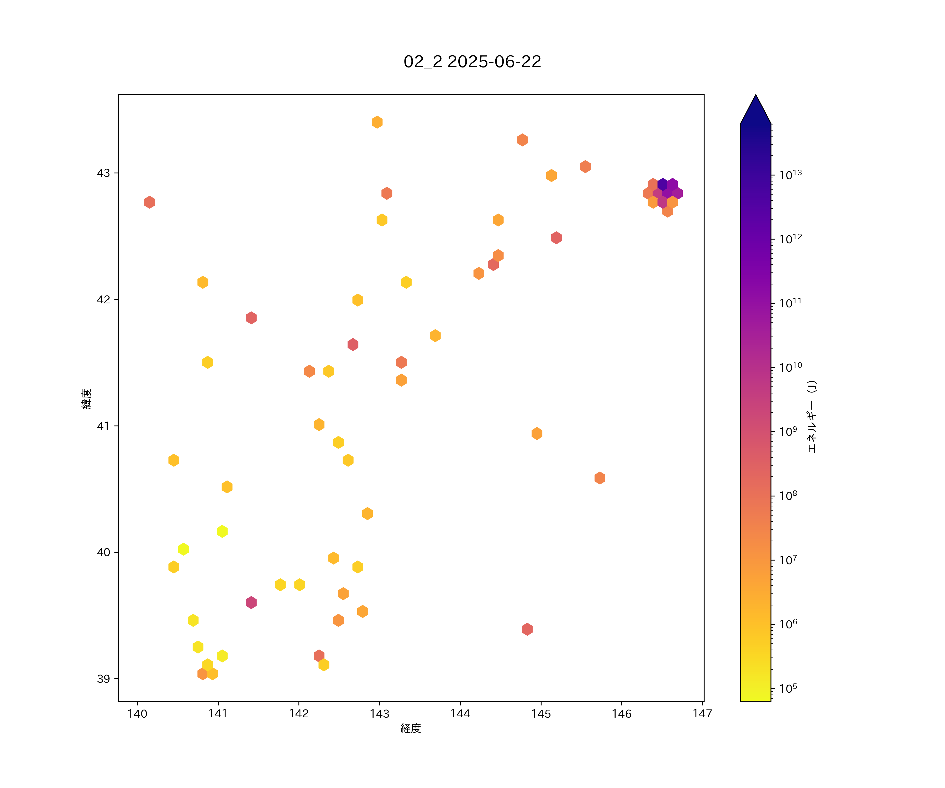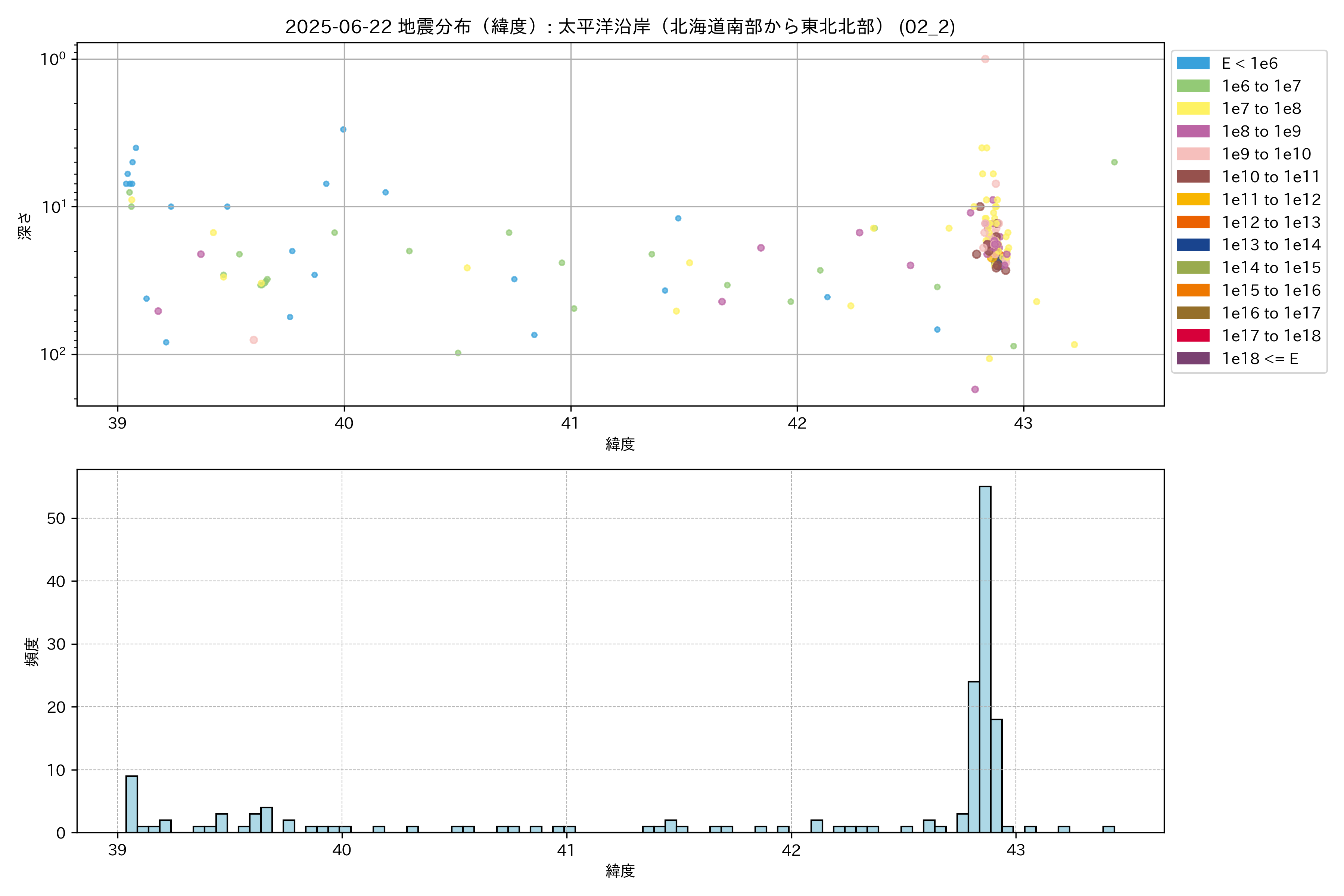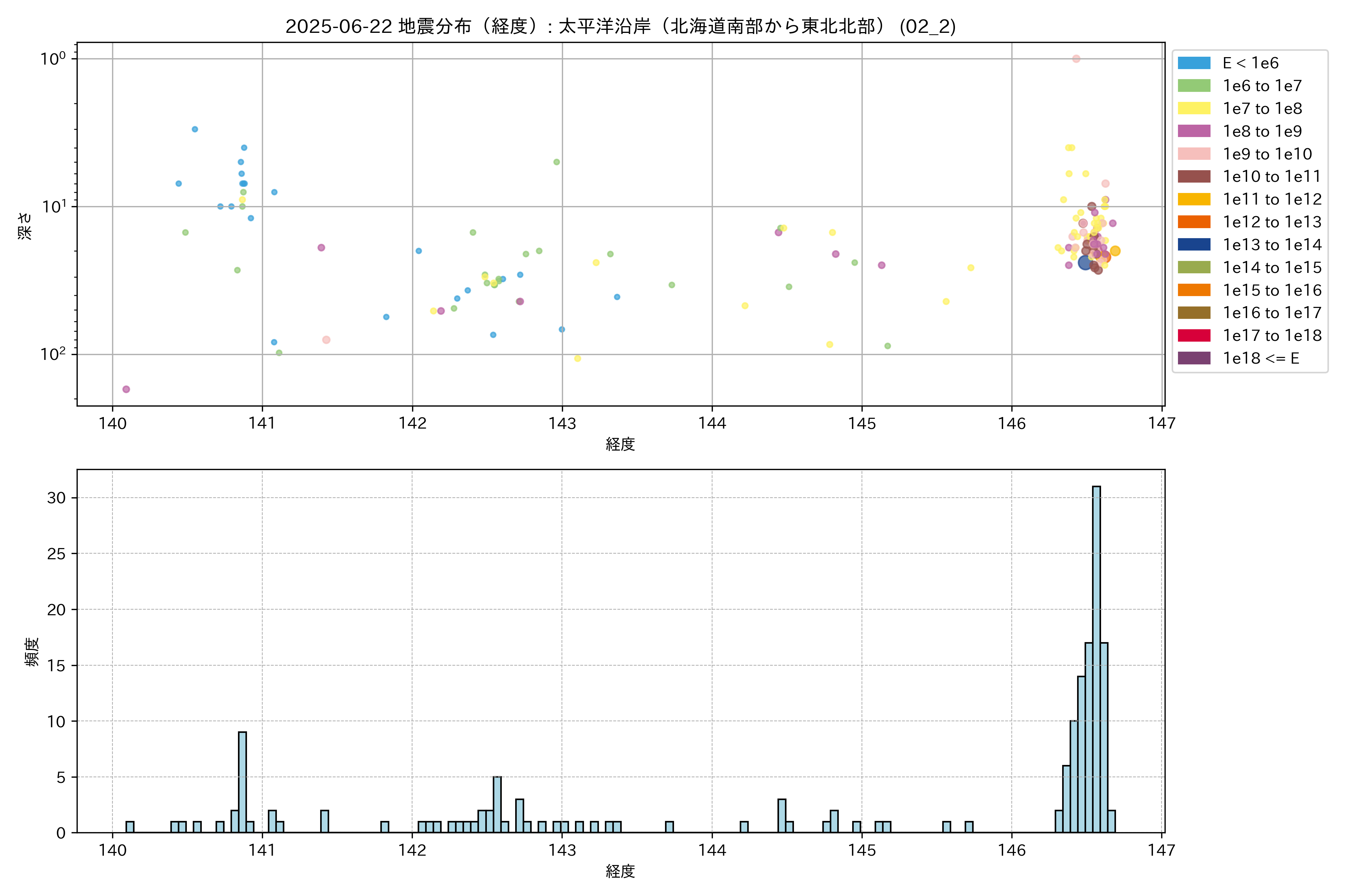 2025年06月22日 太平洋沿岸(北海道南部から東北北部) エリア震源マップ