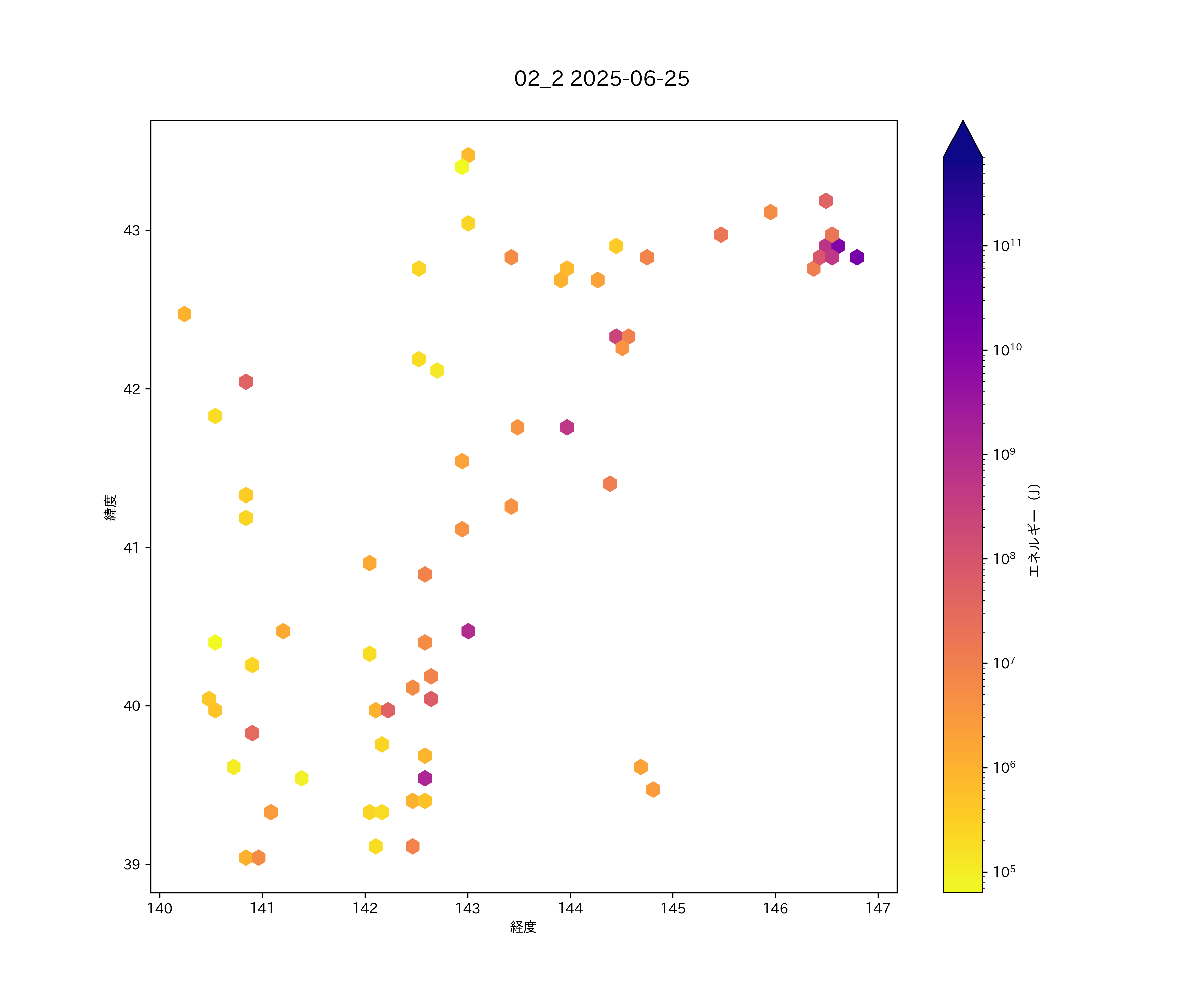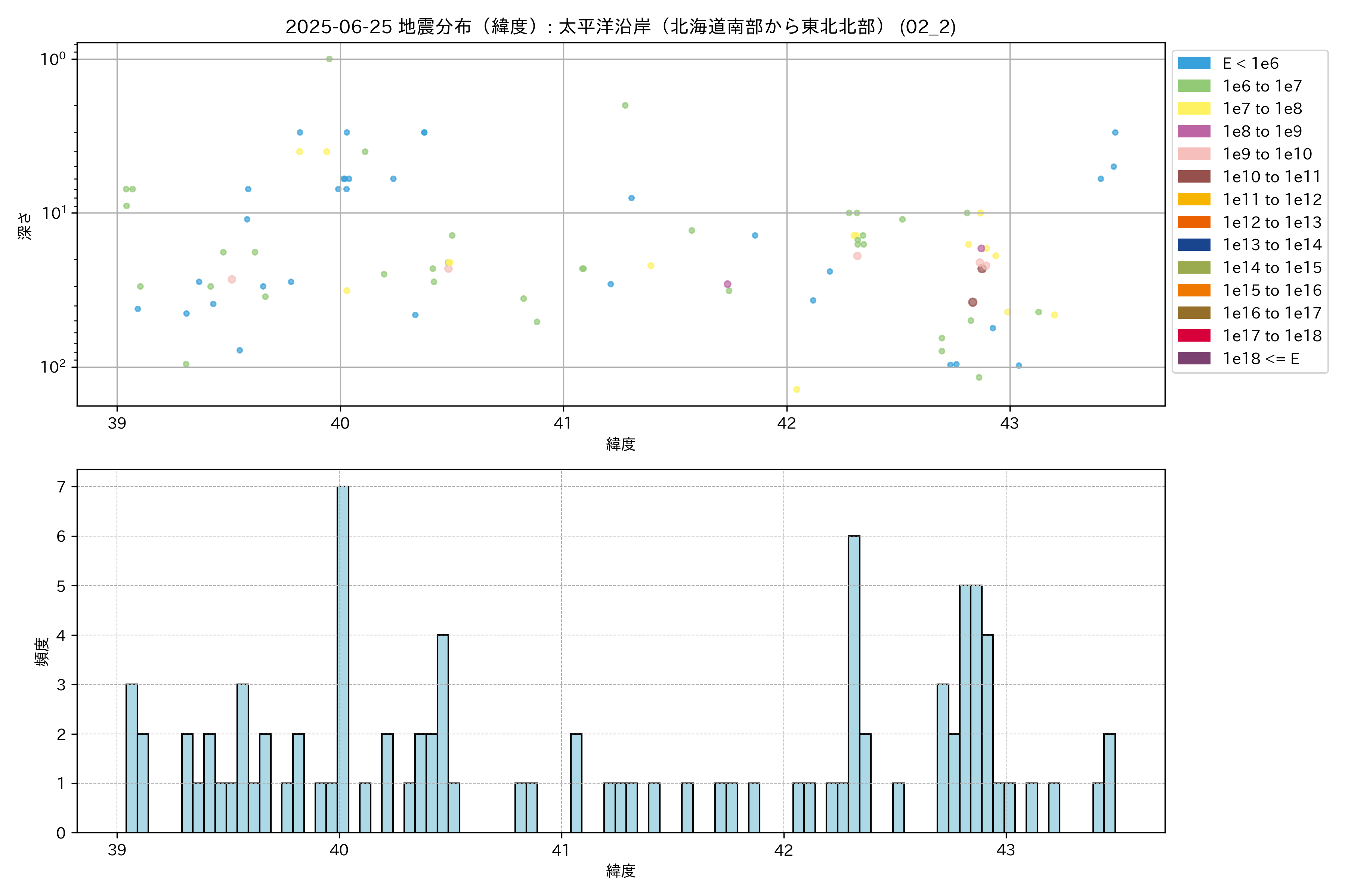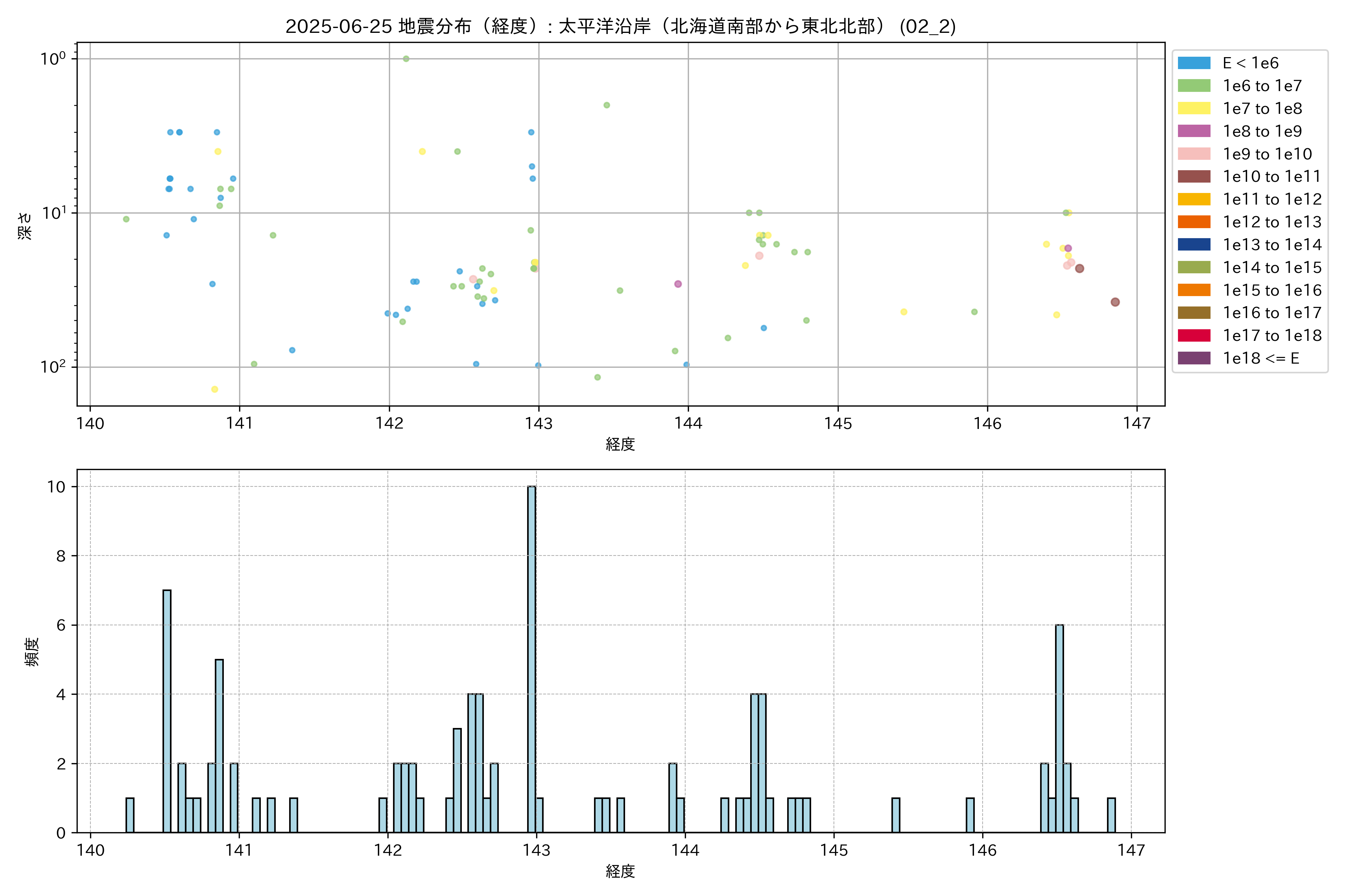 2025年06月25日 太平洋沿岸(北海道南部から東北北部) エリア震源マップ