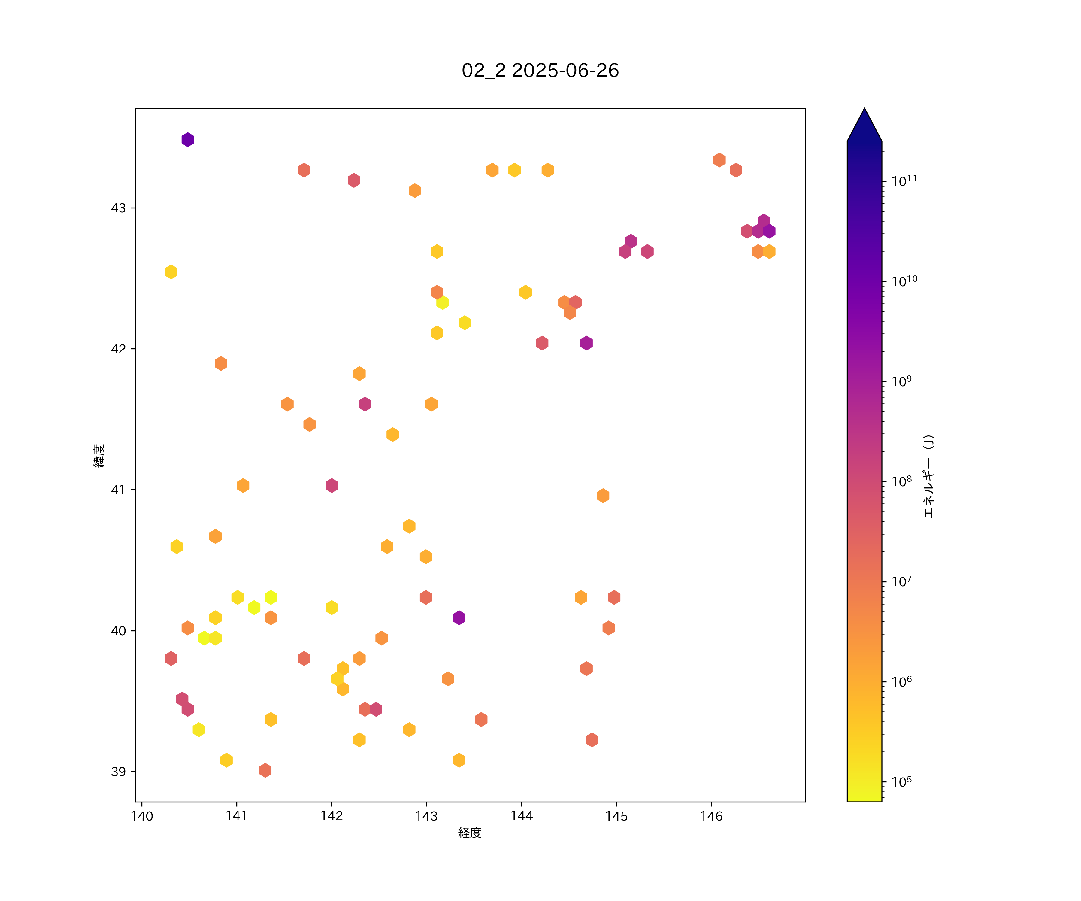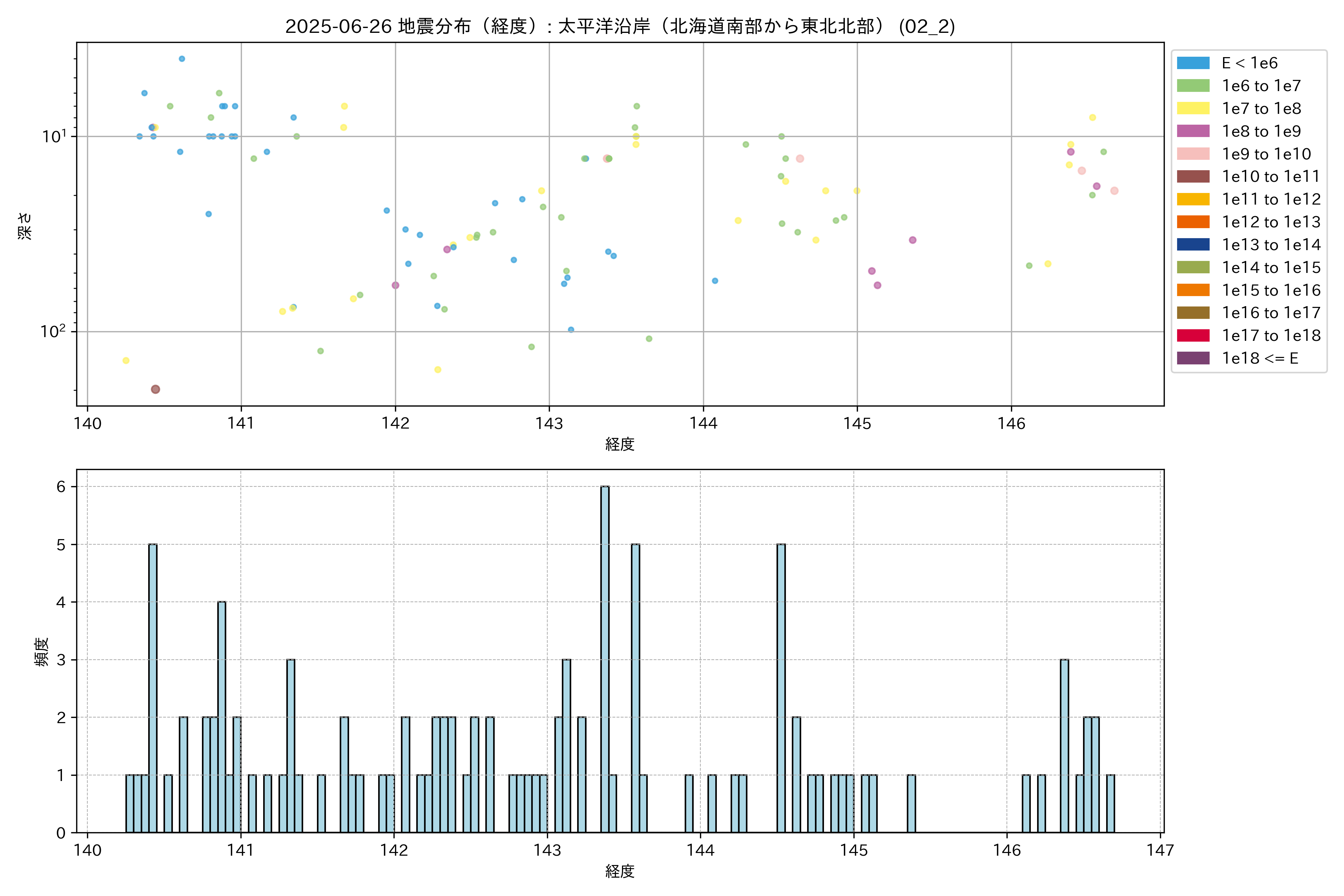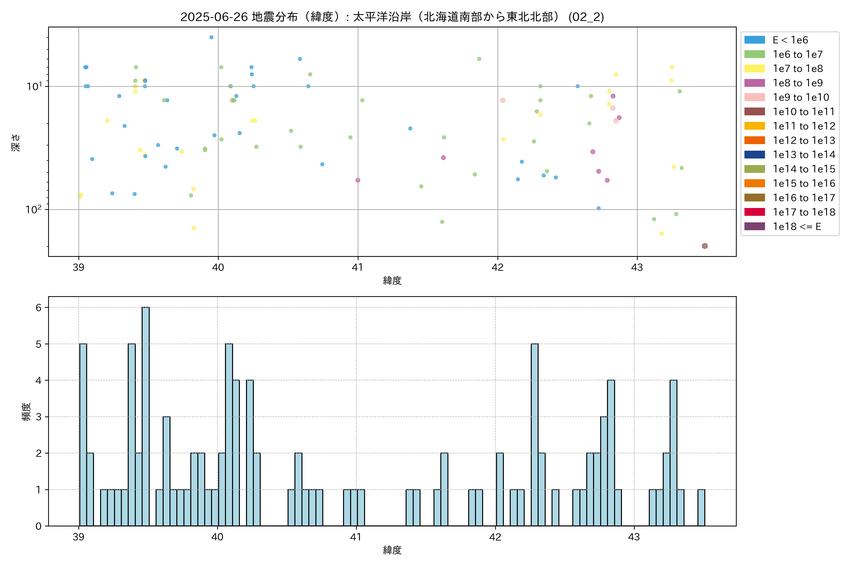 2025年06月26日 太平洋沿岸(北海道南部から東北北部) エリア震源マップ