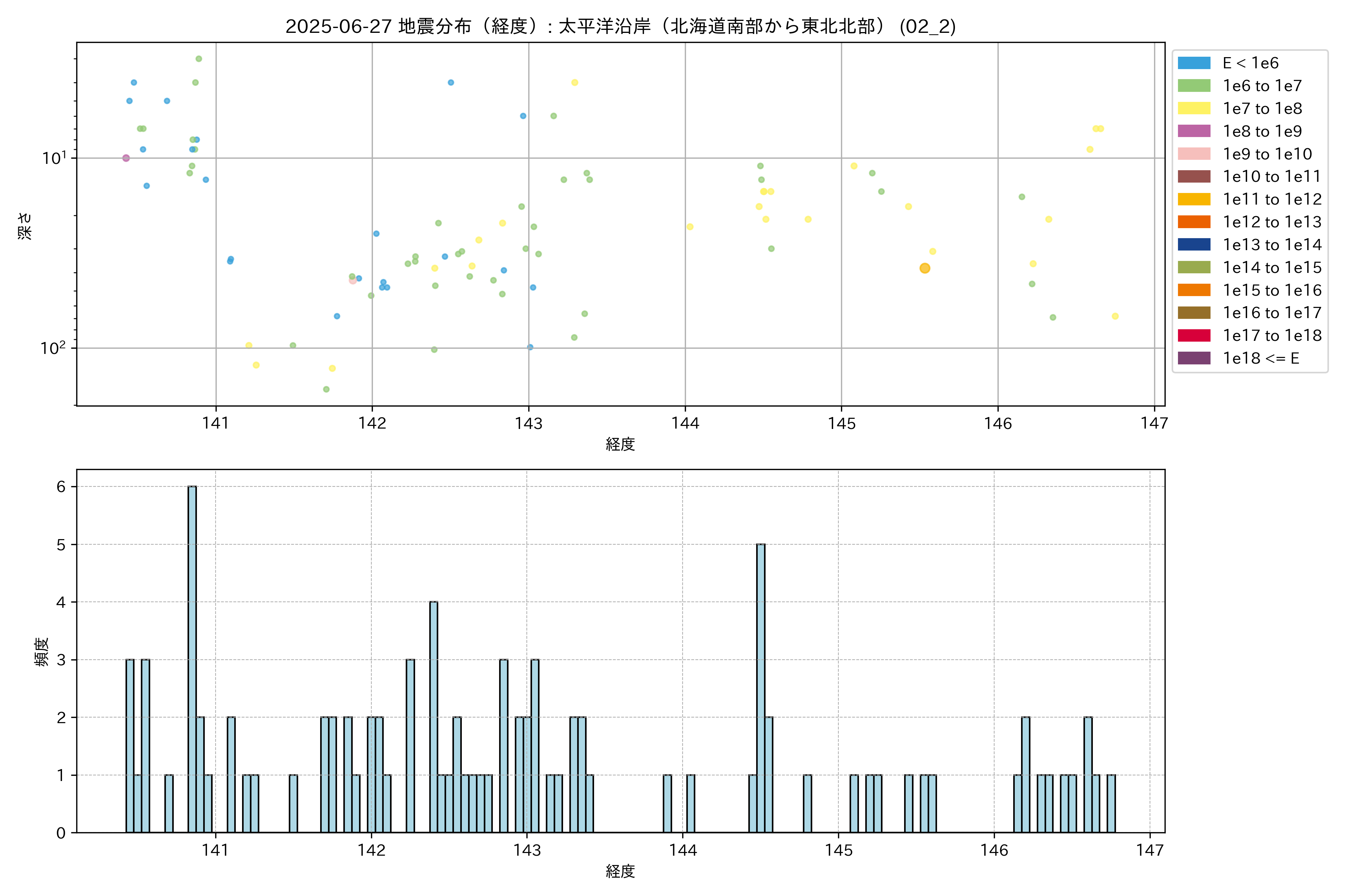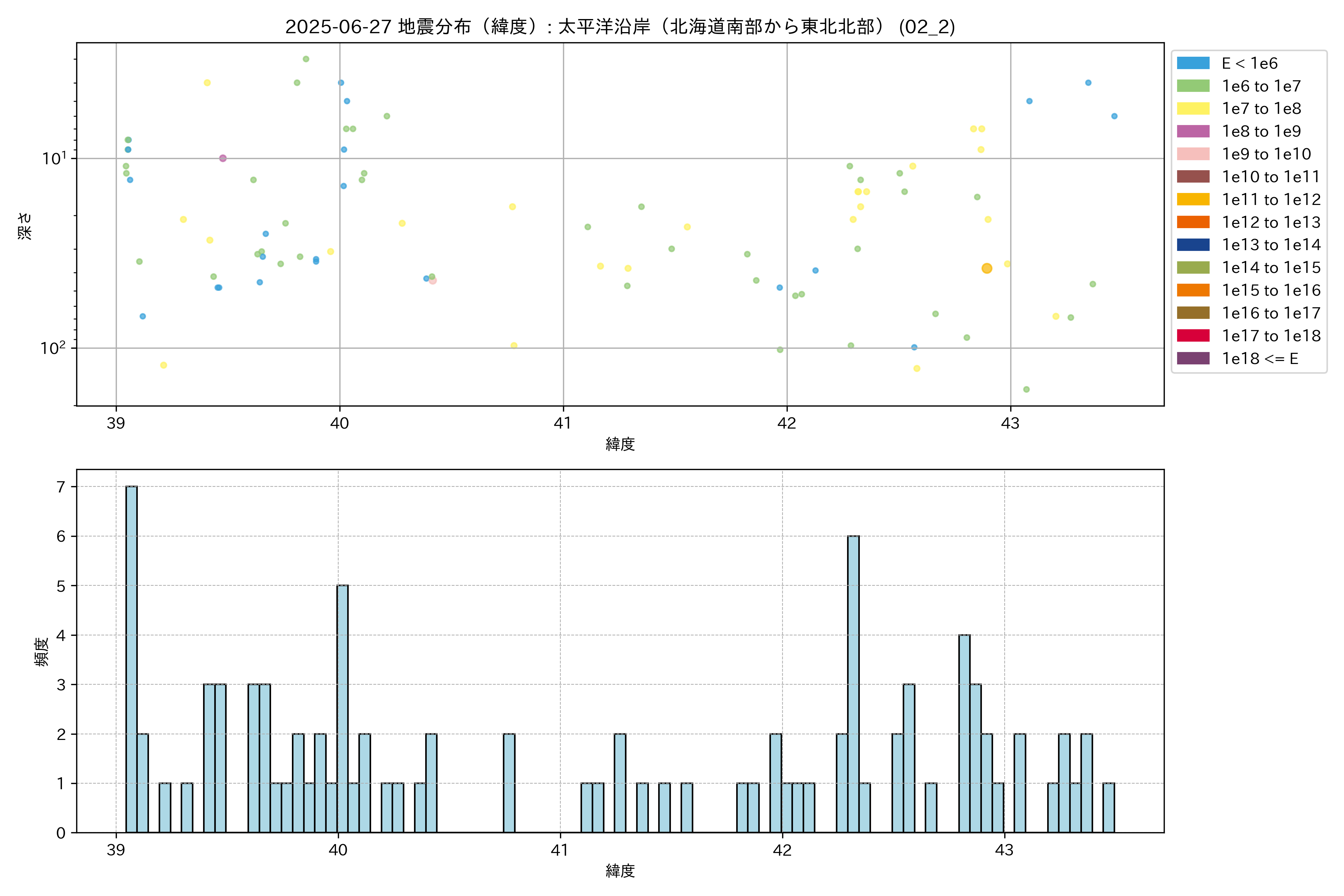 2025年06月27日 太平洋沿岸(北海道南部から東北北部) エリア震源マップ