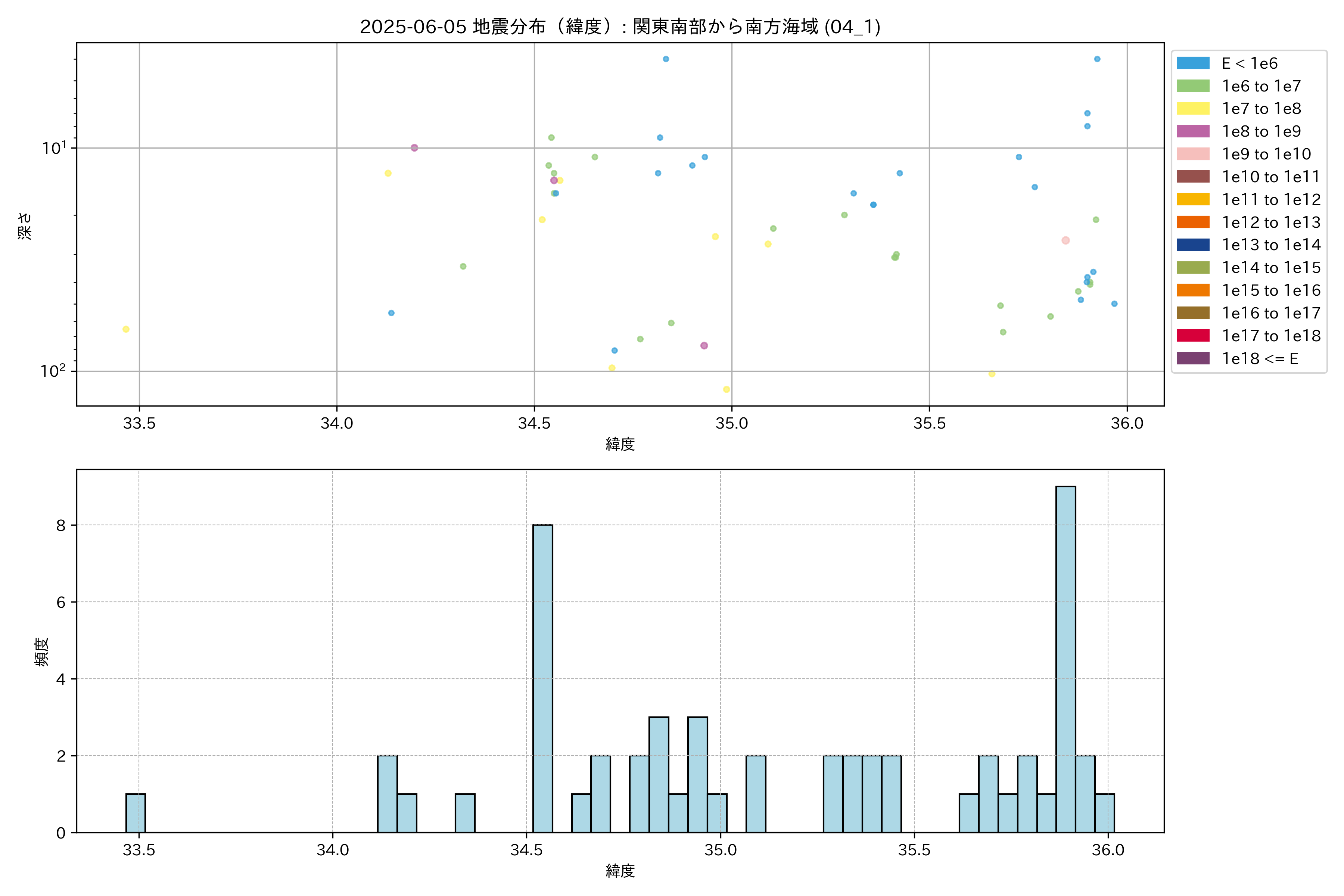 2025年06月05日 関東南部から南方海域 エリア震源マップ