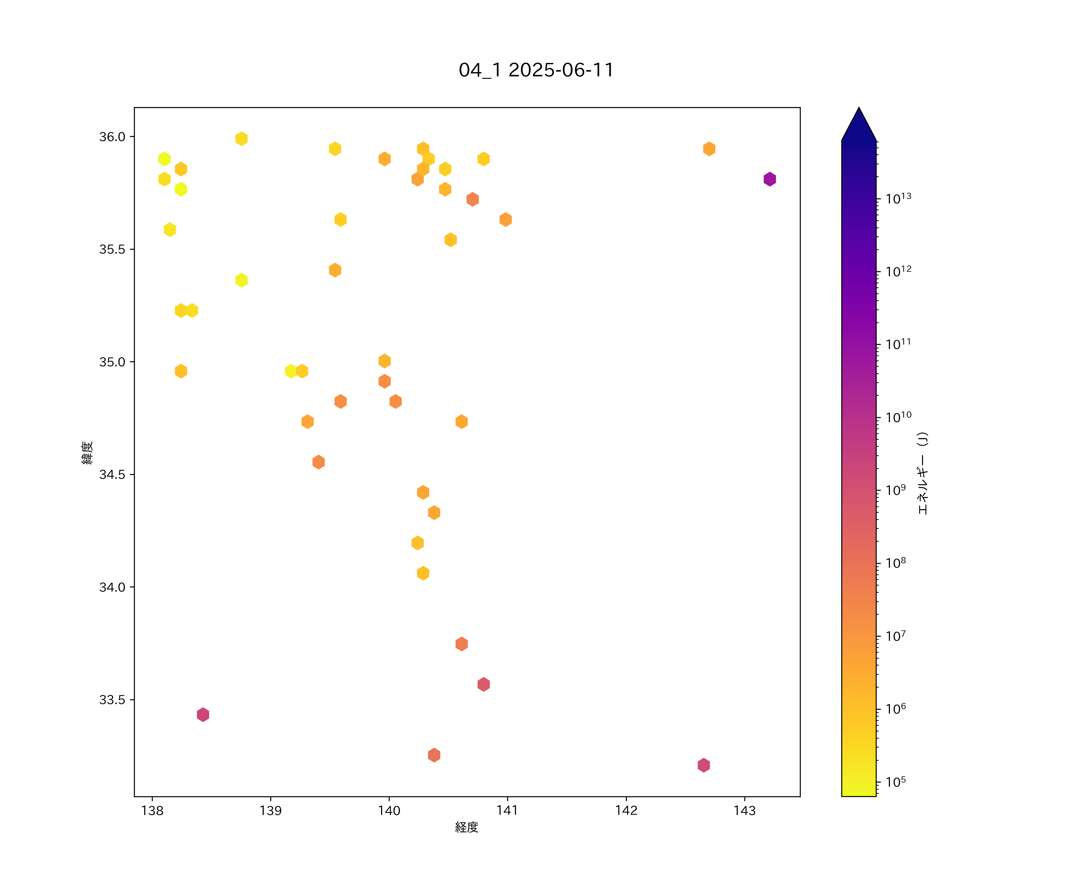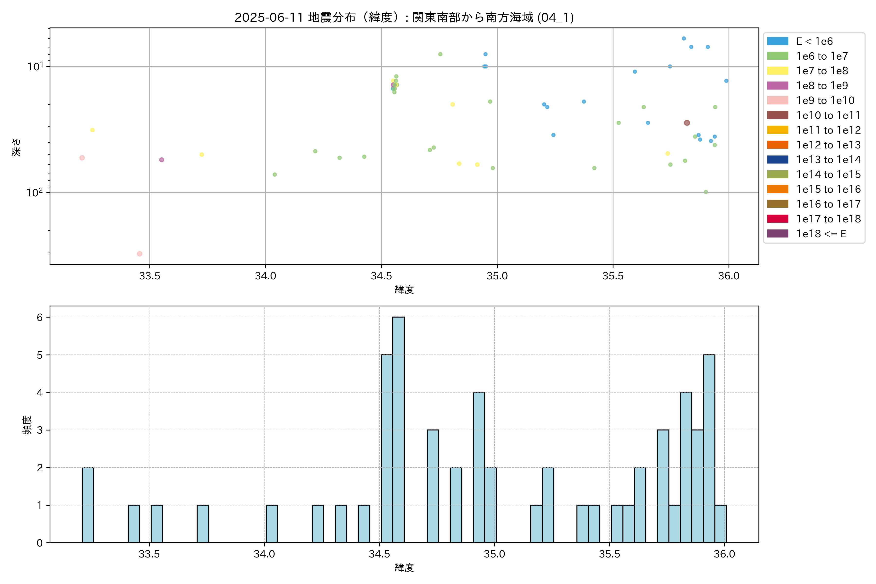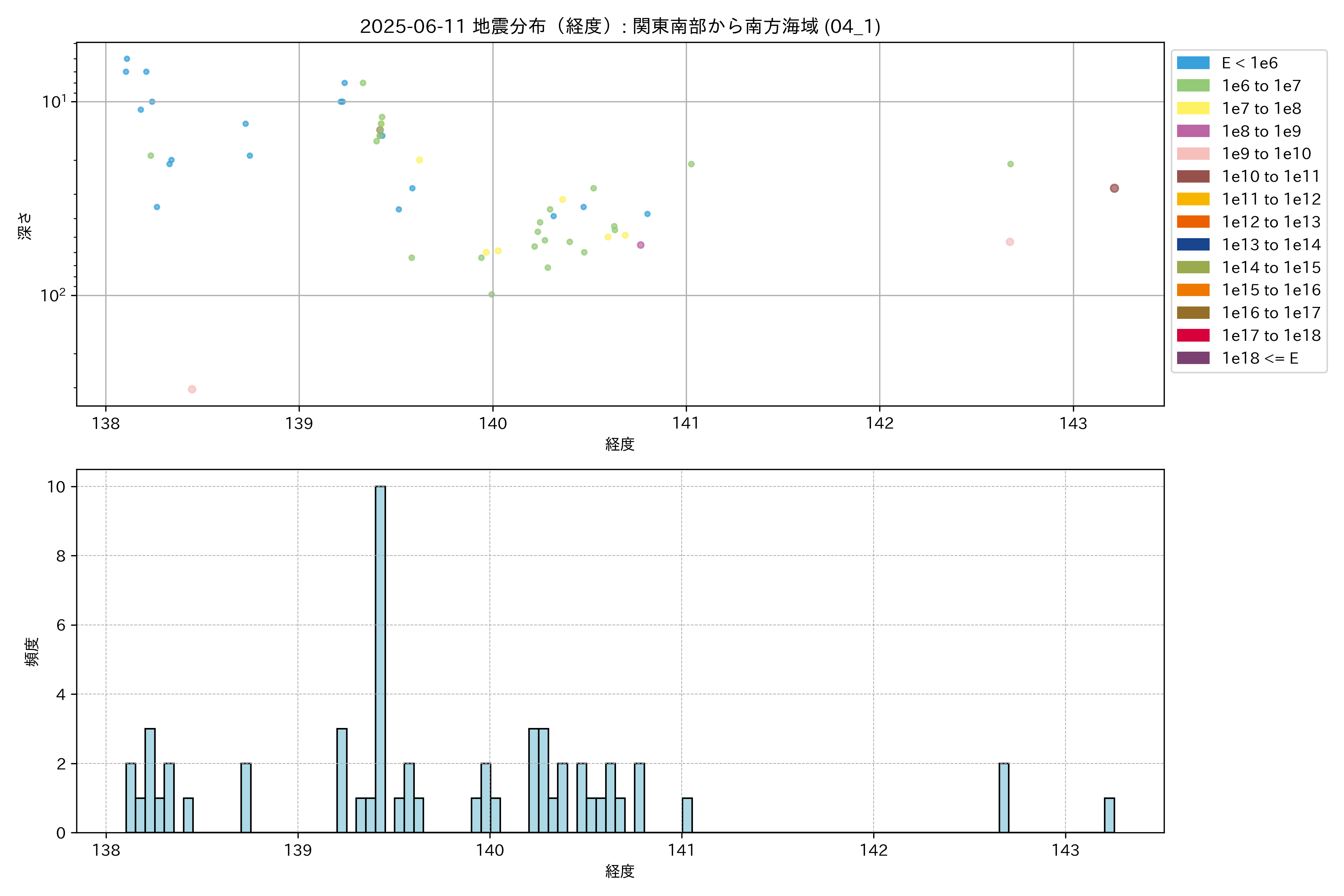 2025年06月11日 関東南部から南方海域 エリア震源マップ