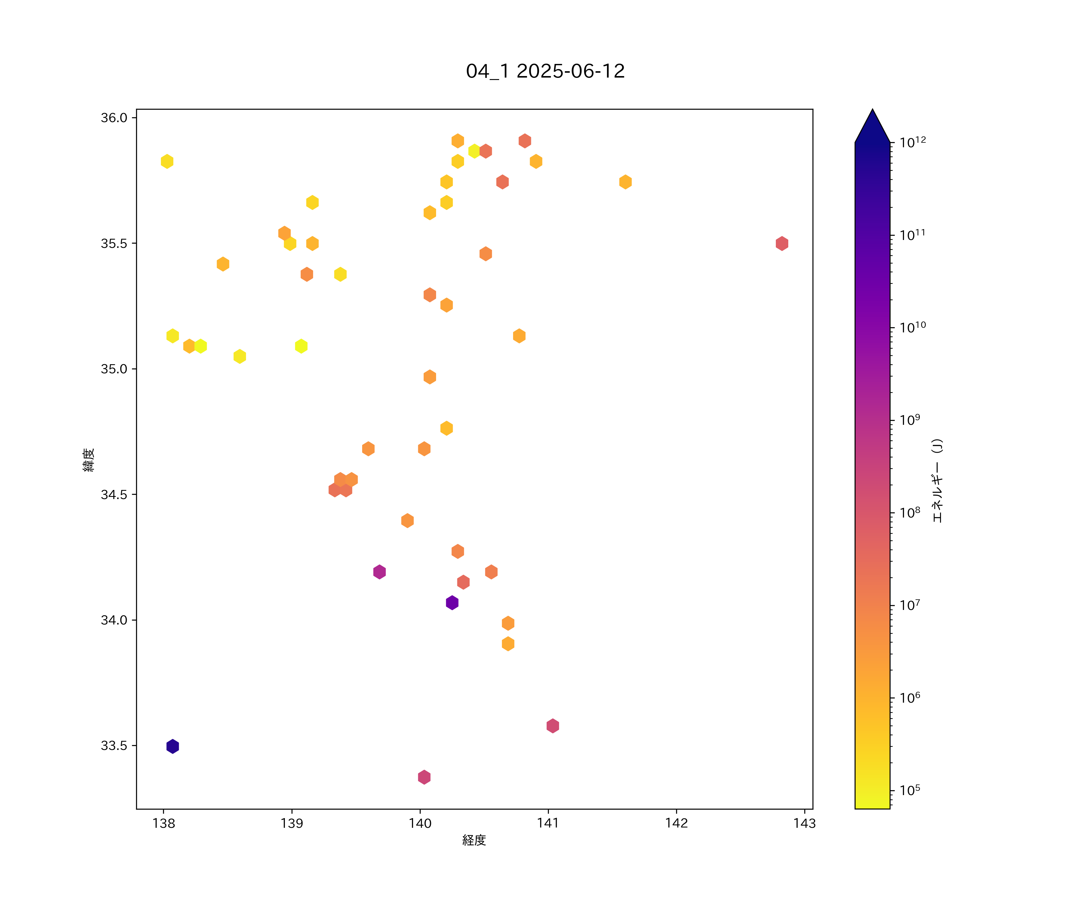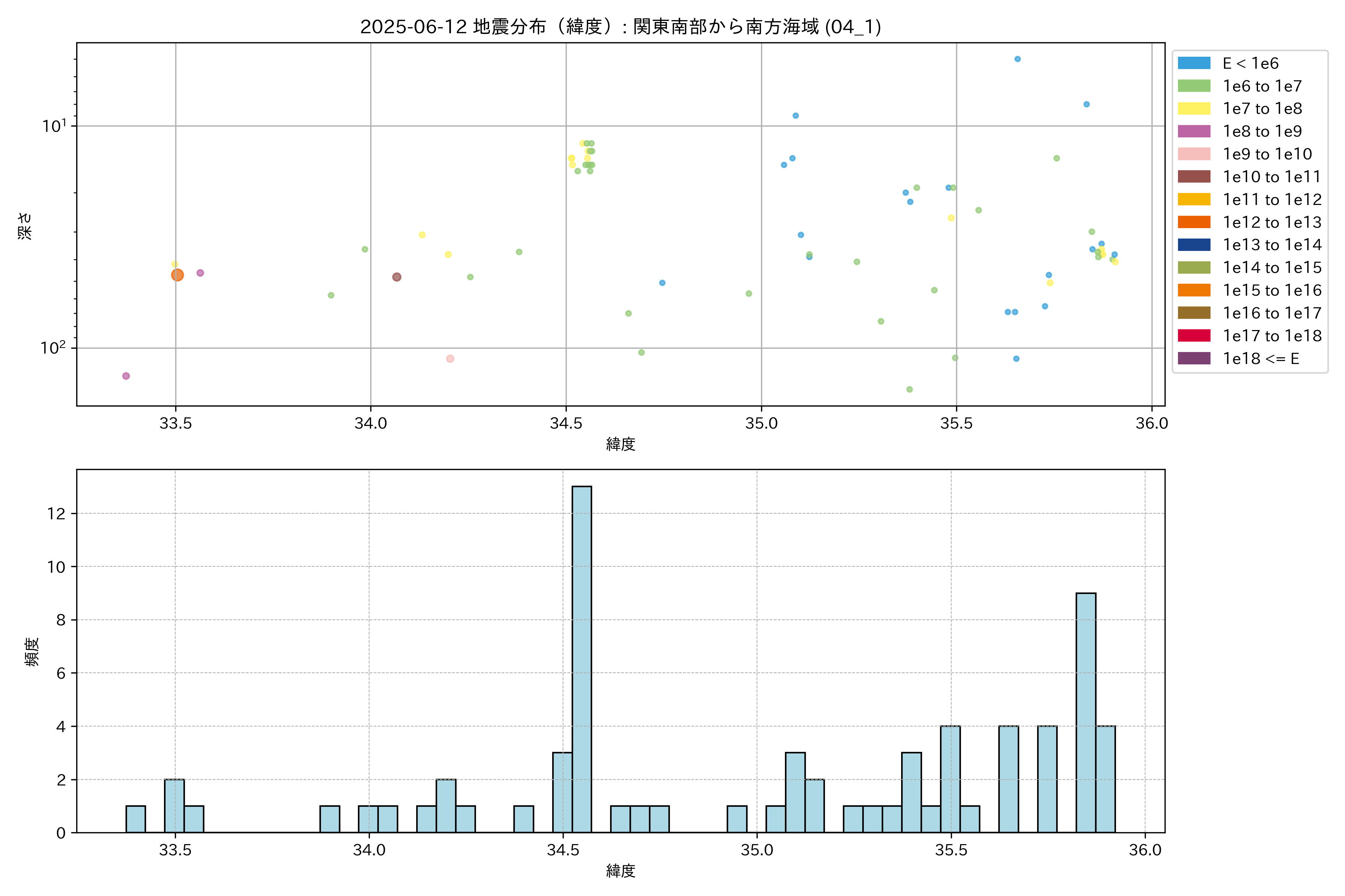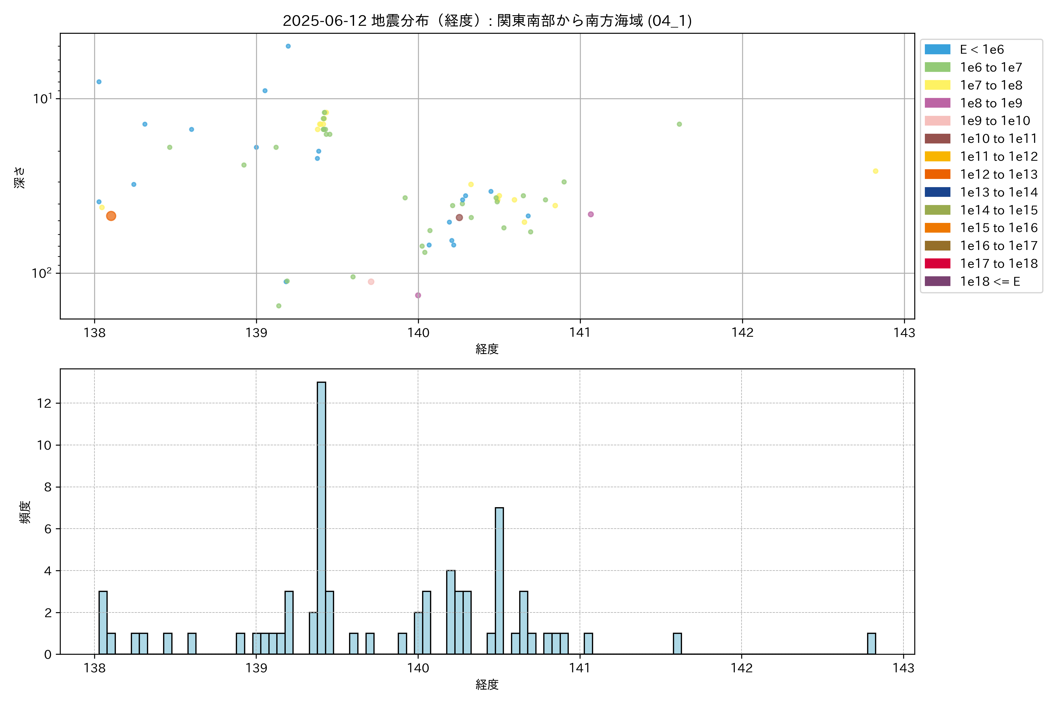 2025年06月12日 関東南部から南方海域 エリア震源マップ