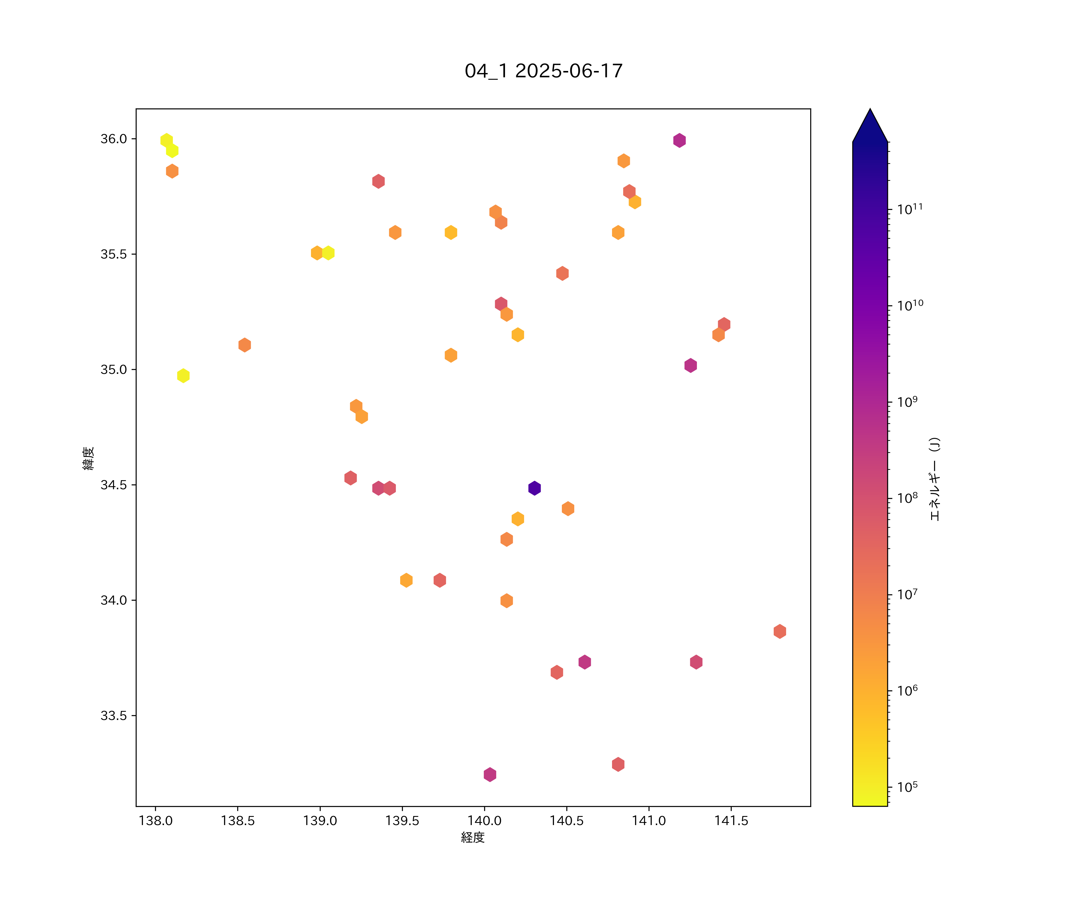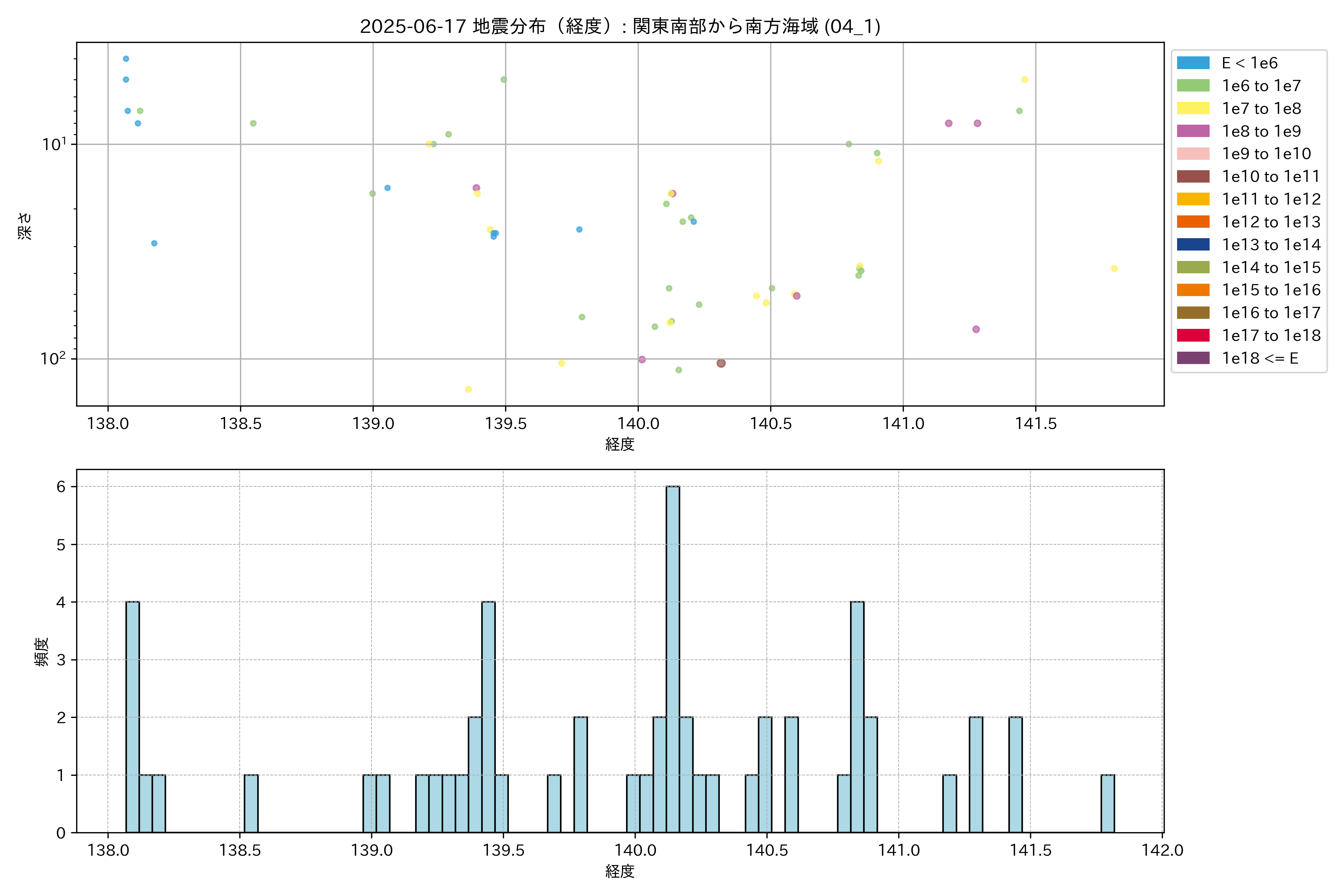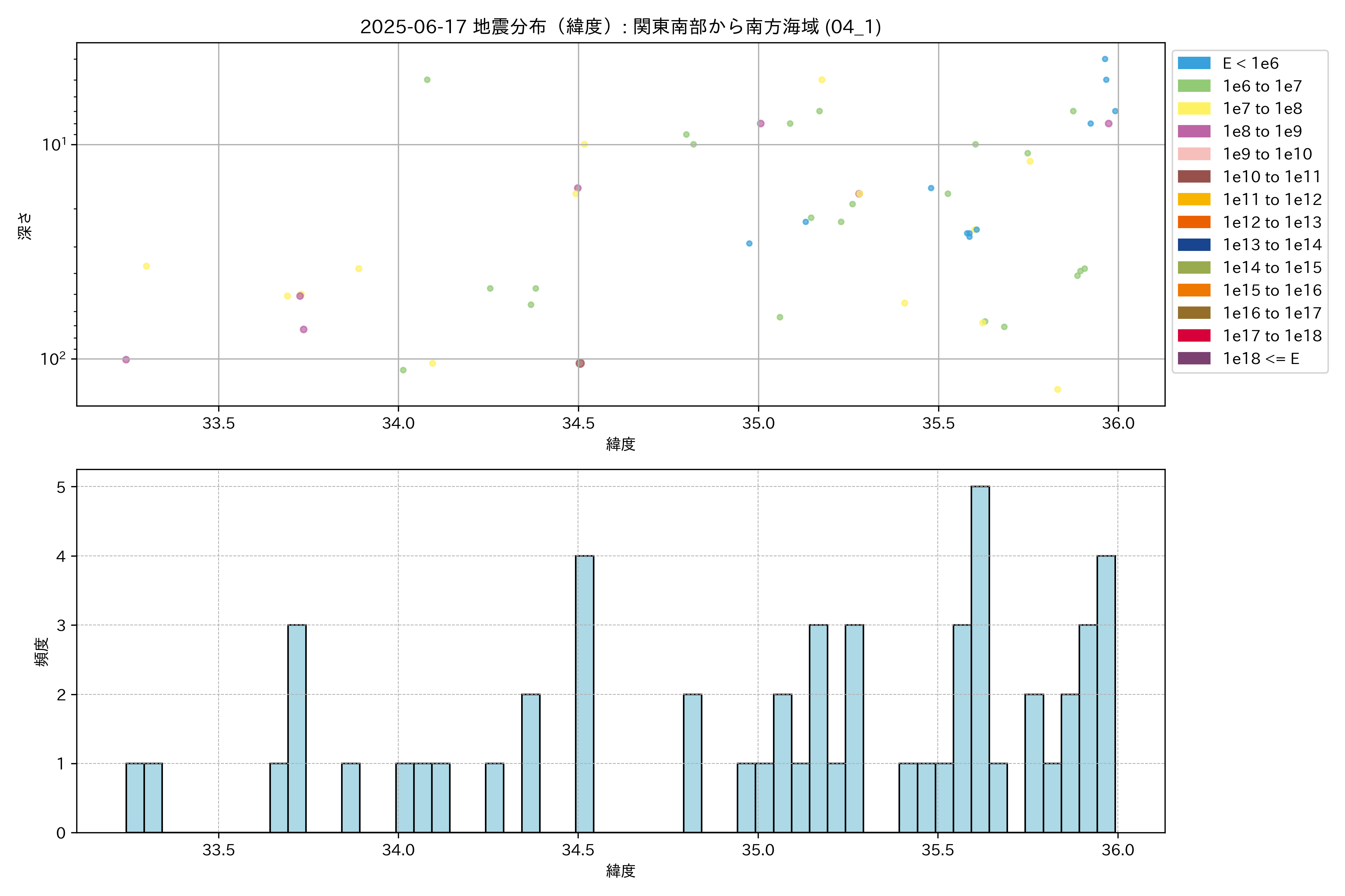 2025年06月17日 関東南部から南方海域 エリア震源マップ