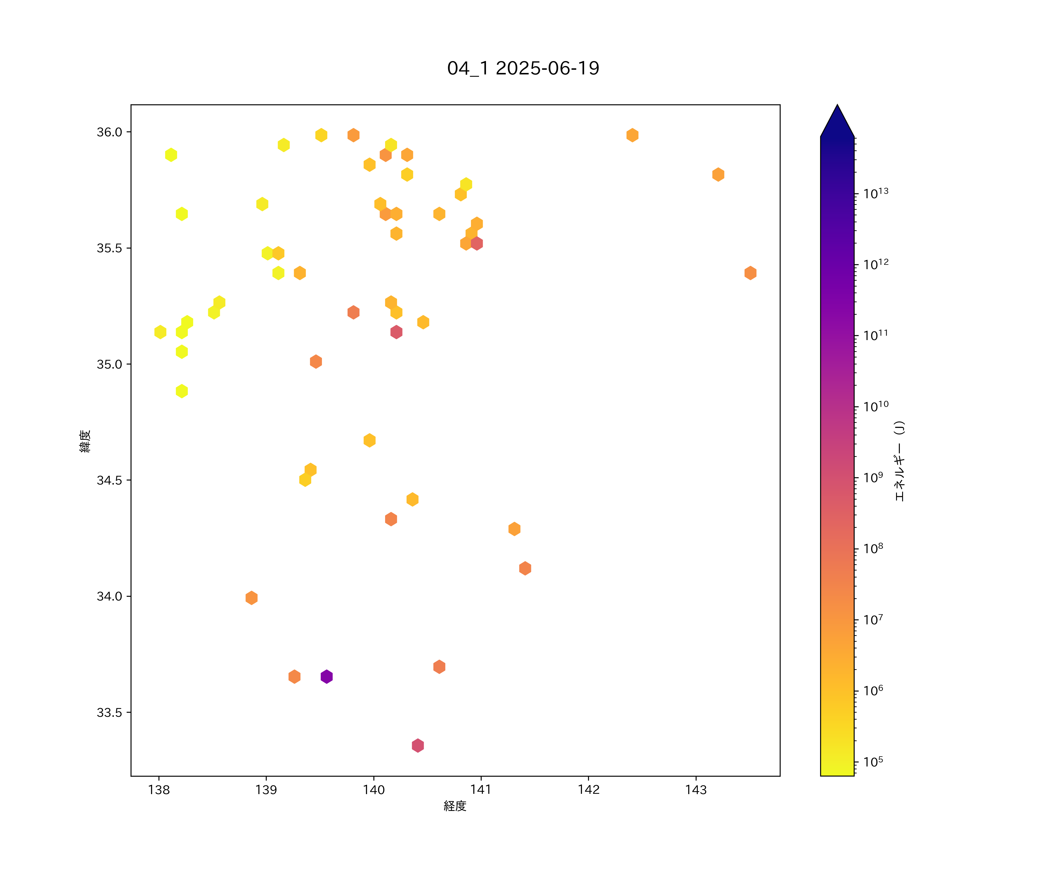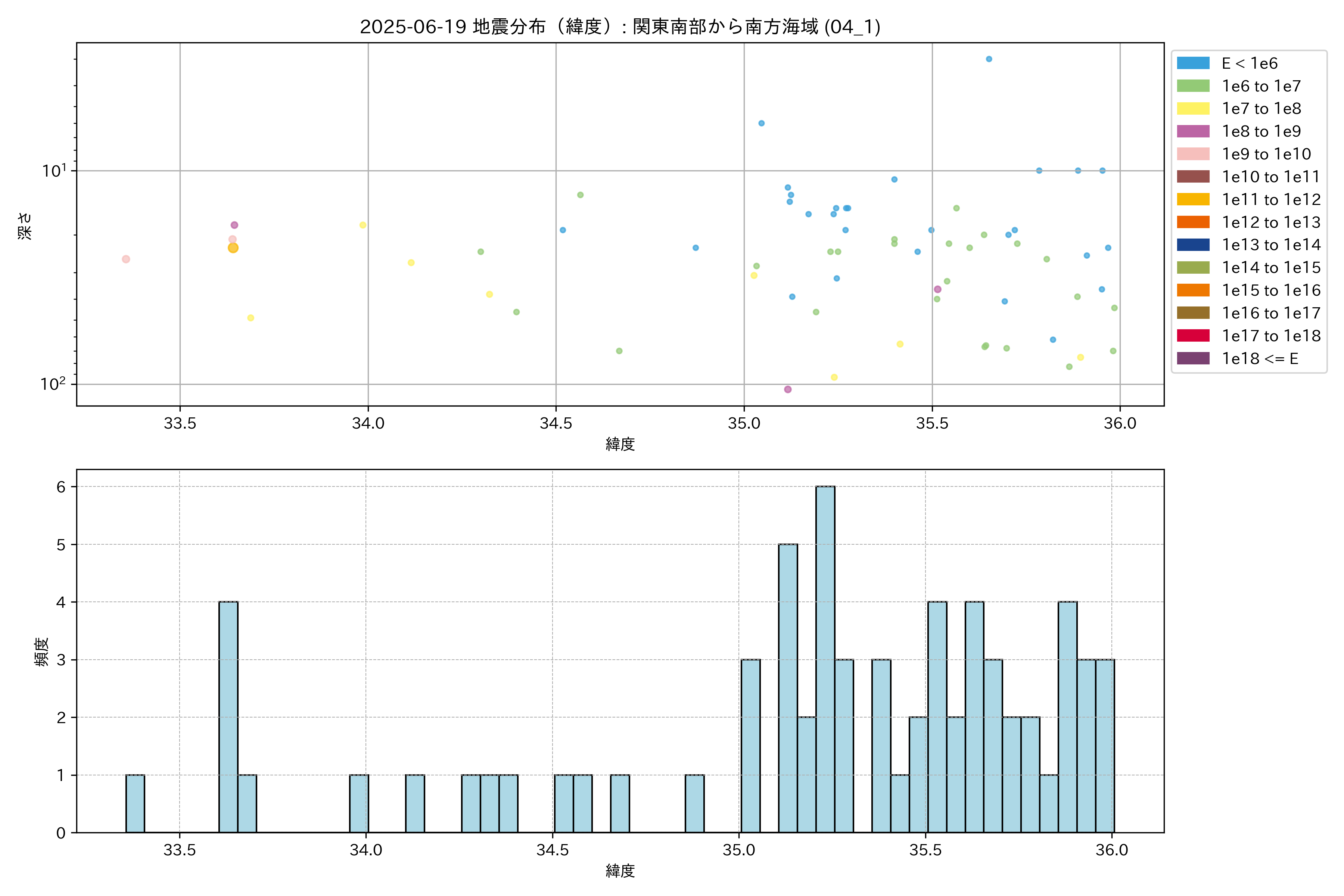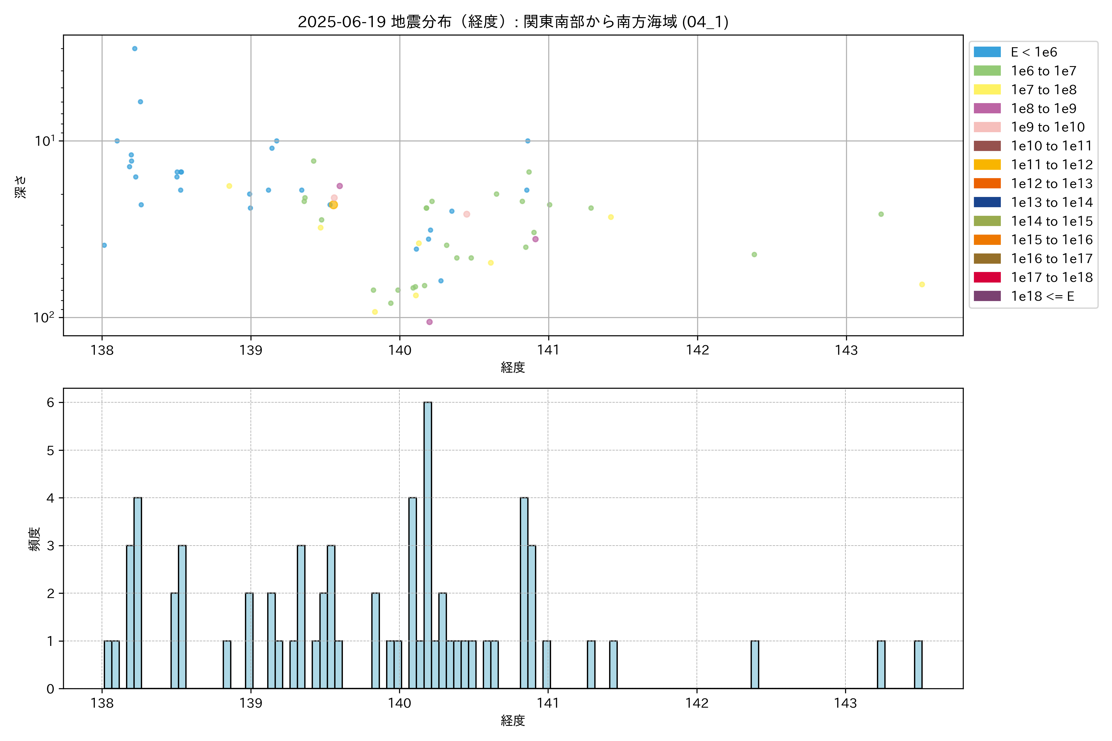2025年06月19日 関東南部から南方海域 エリア震源マップ