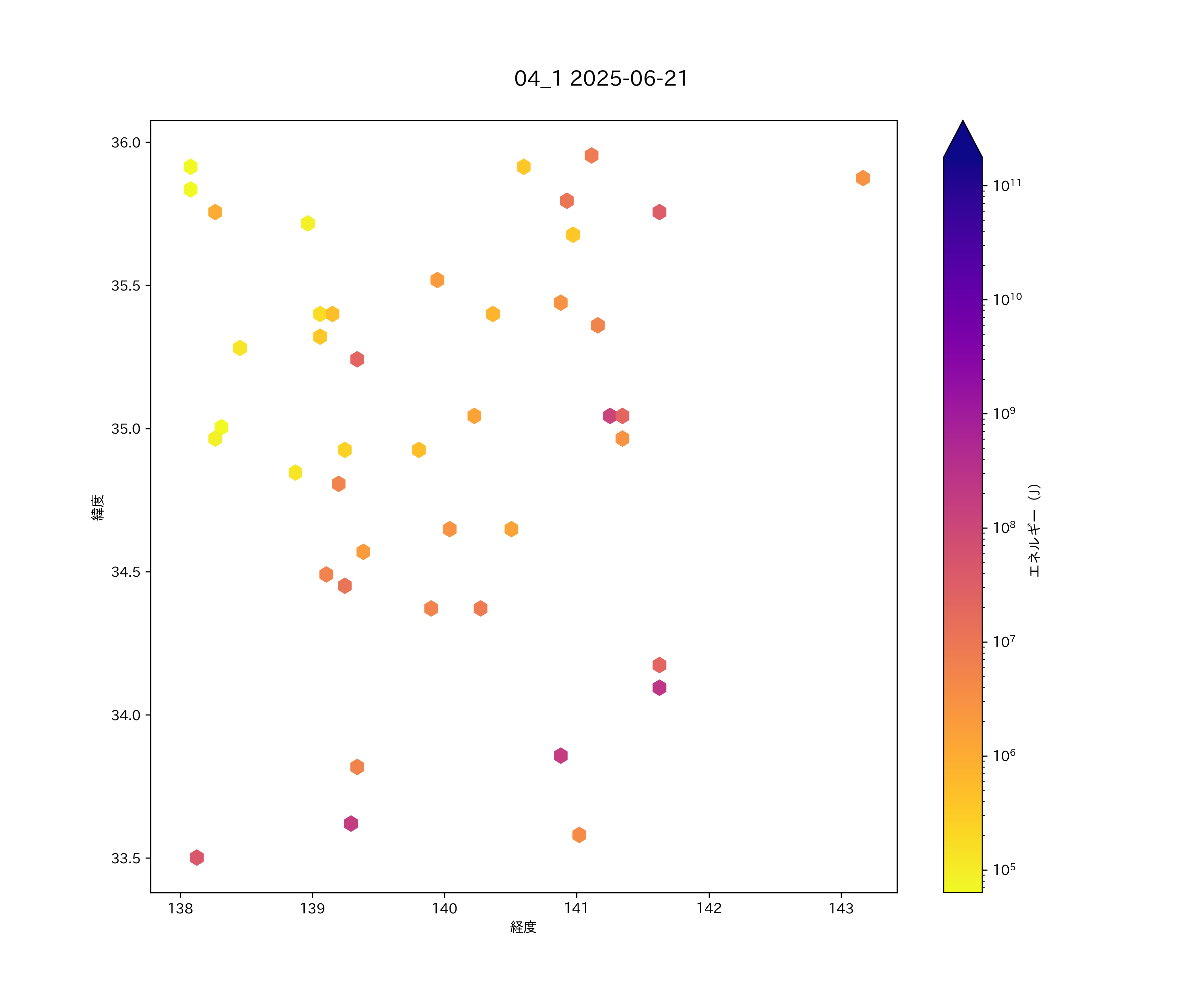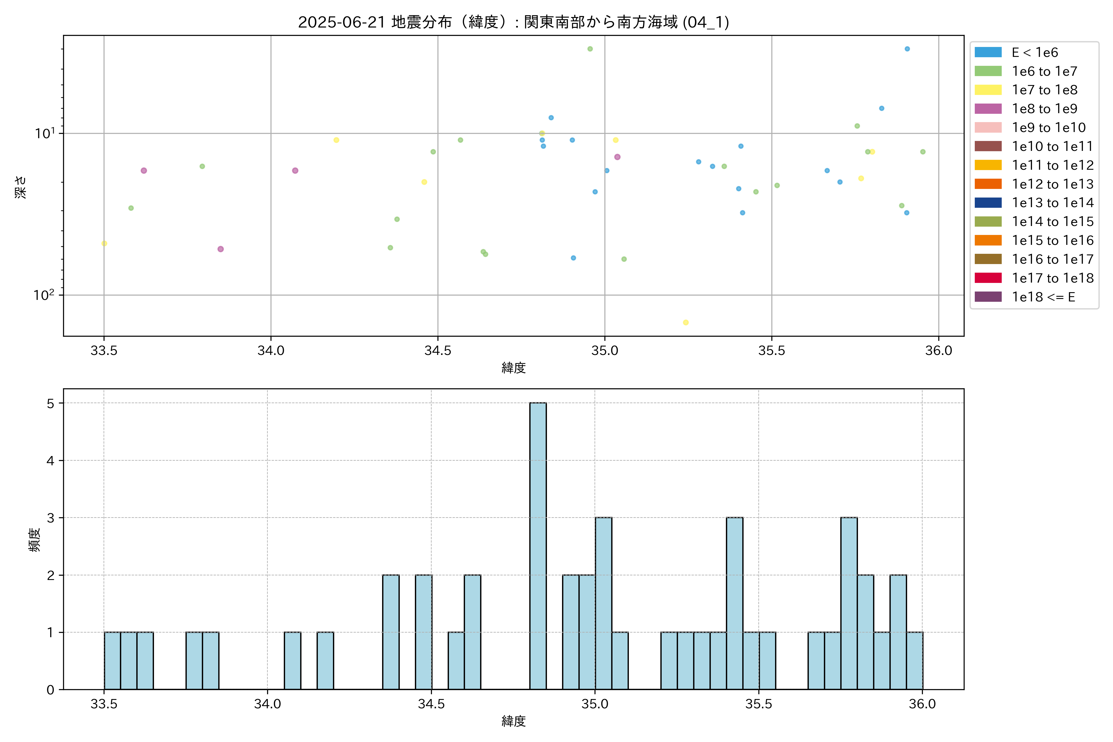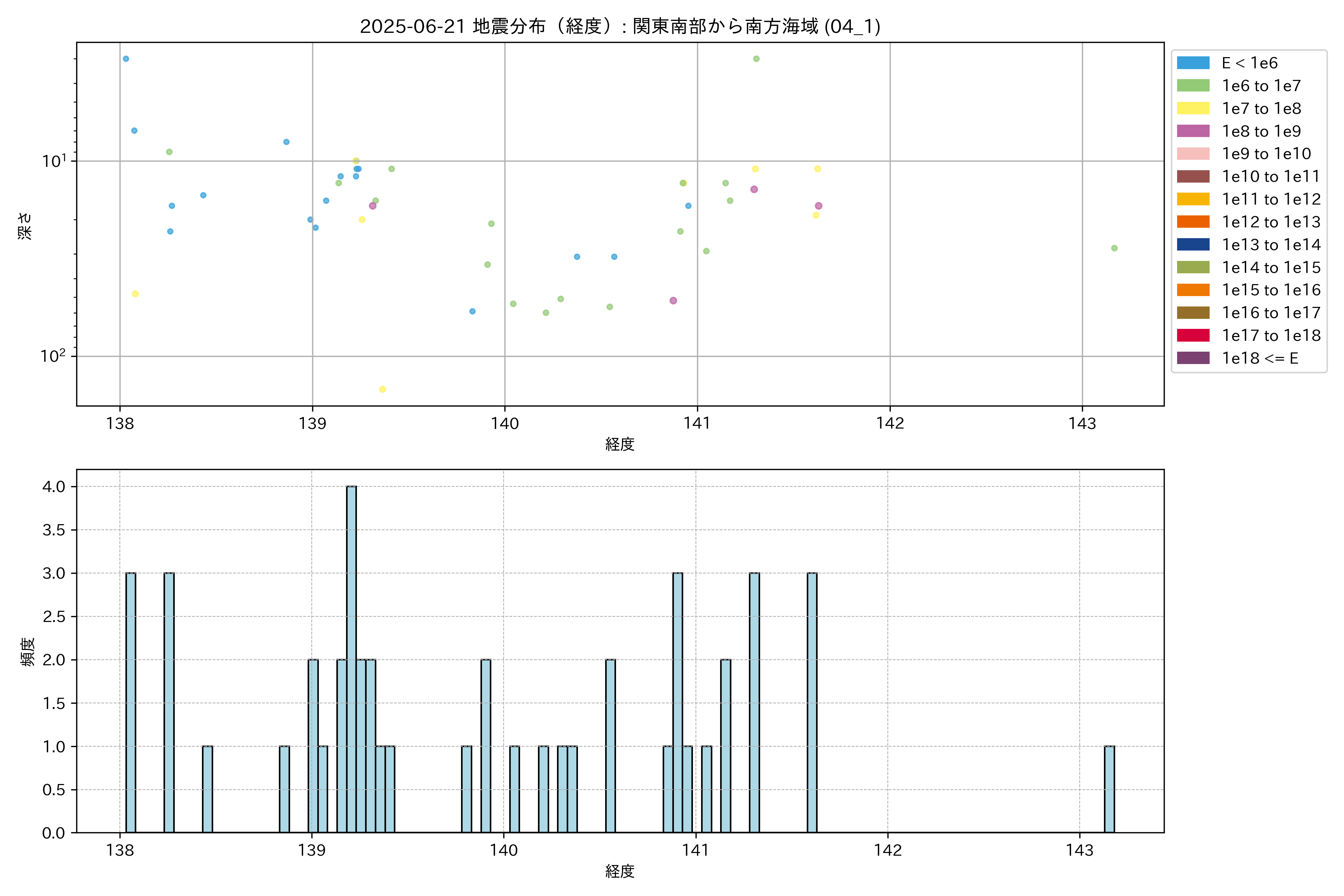 2025年06月21日 関東南部から南方海域 エリア震源マップ