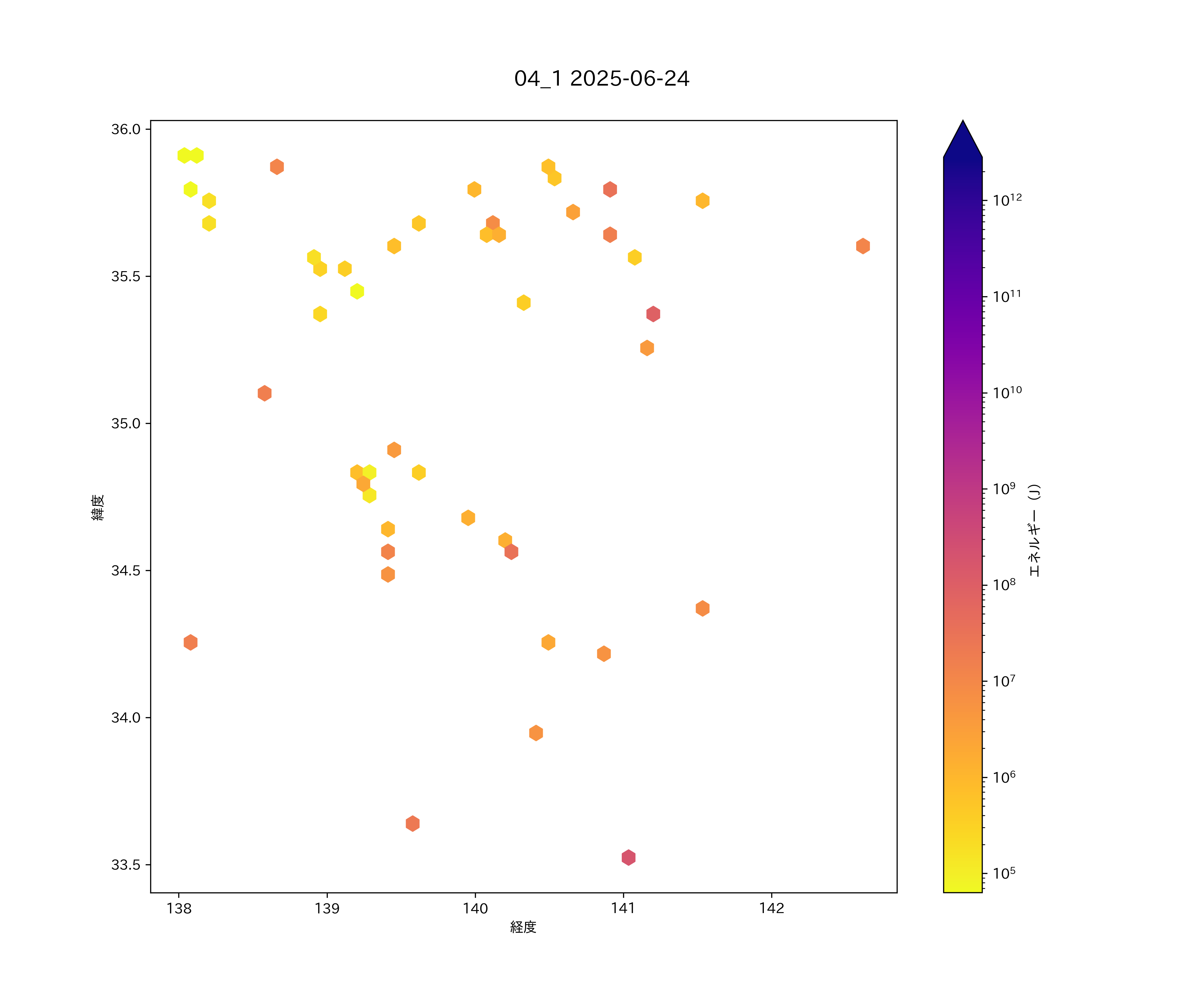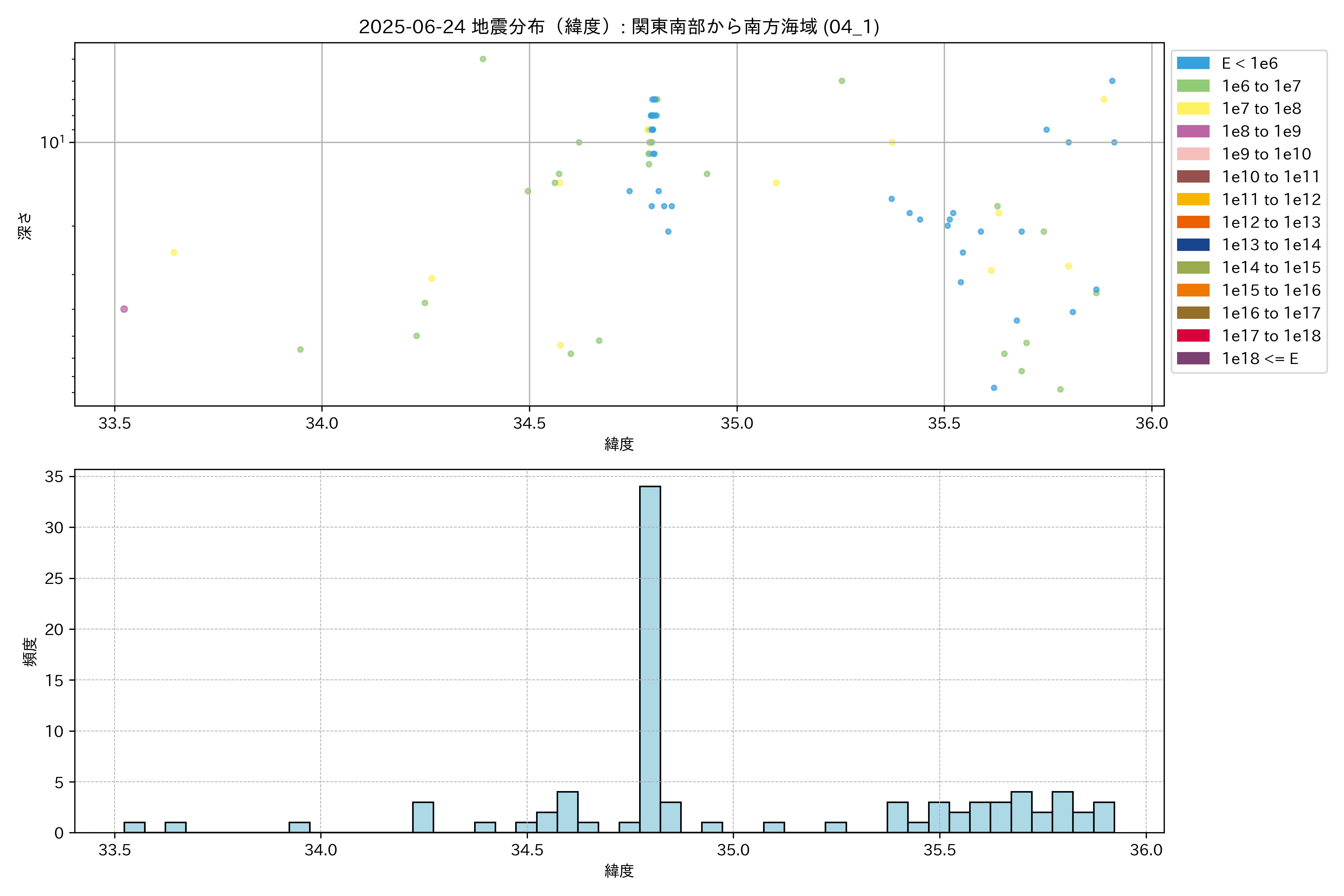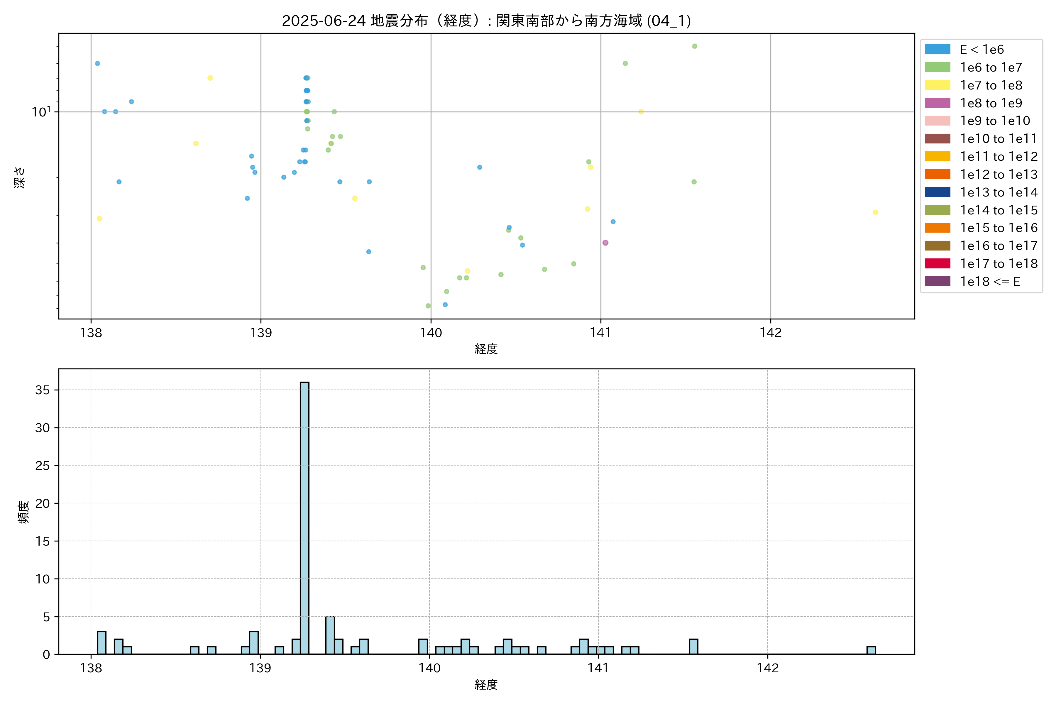 2025年06月24日 関東南部から南方海域 エリア震源マップ