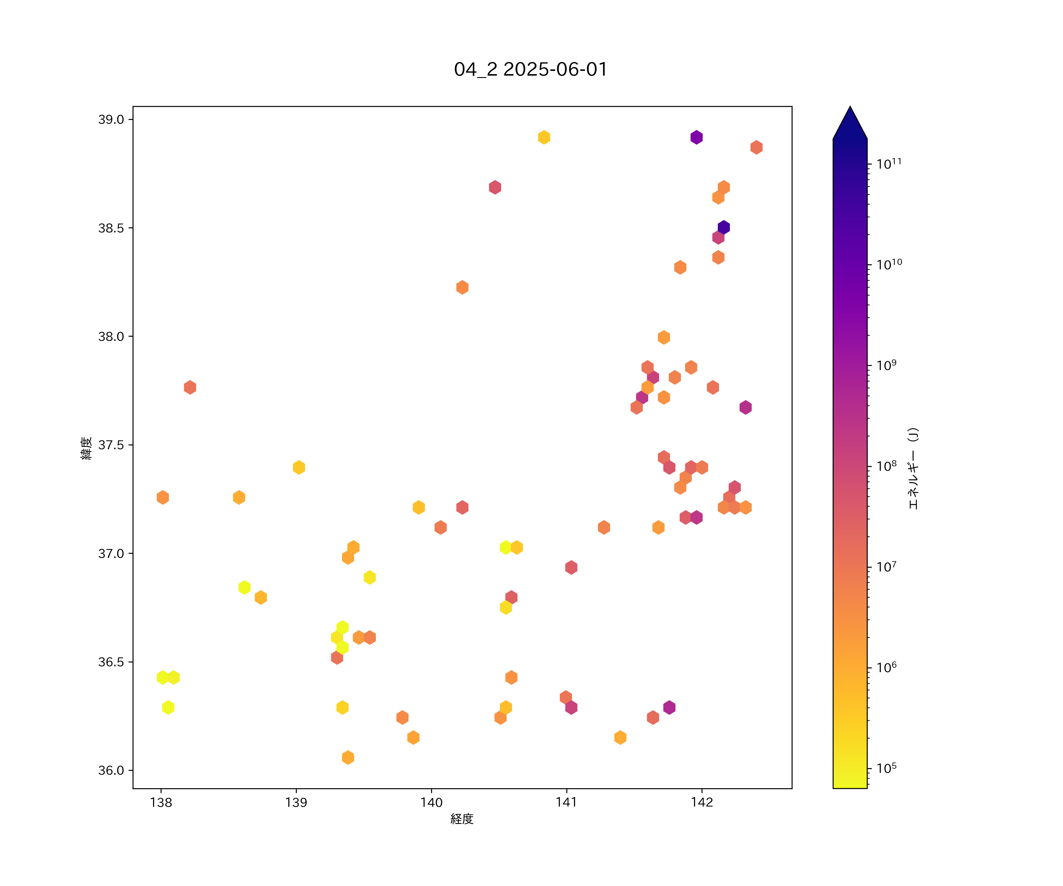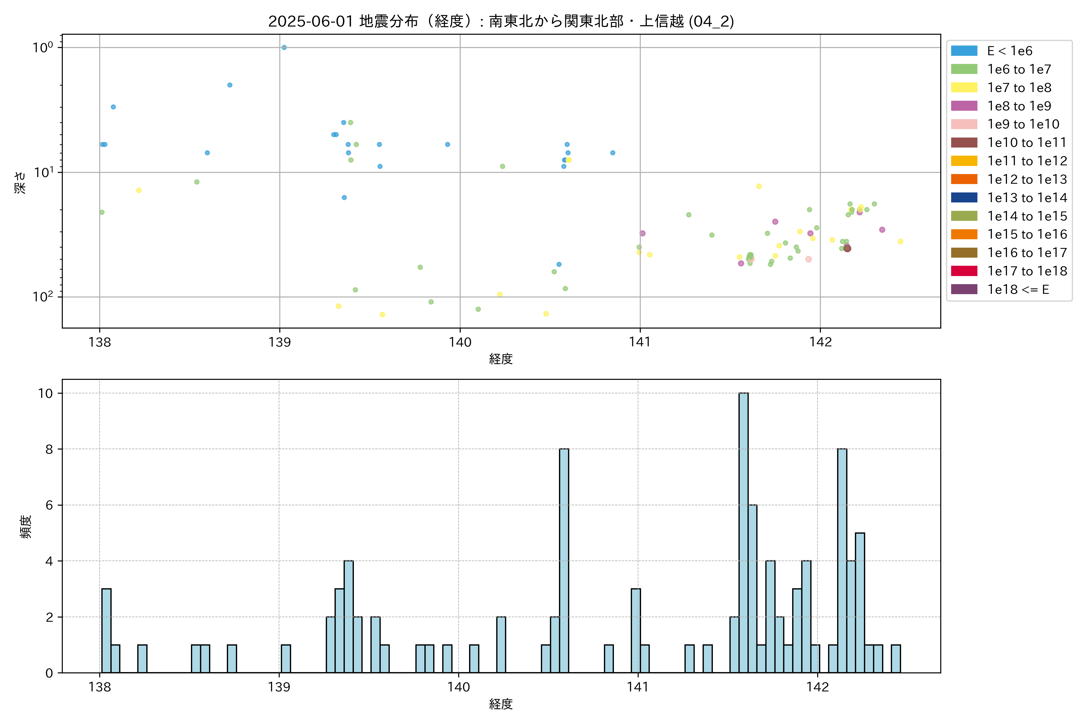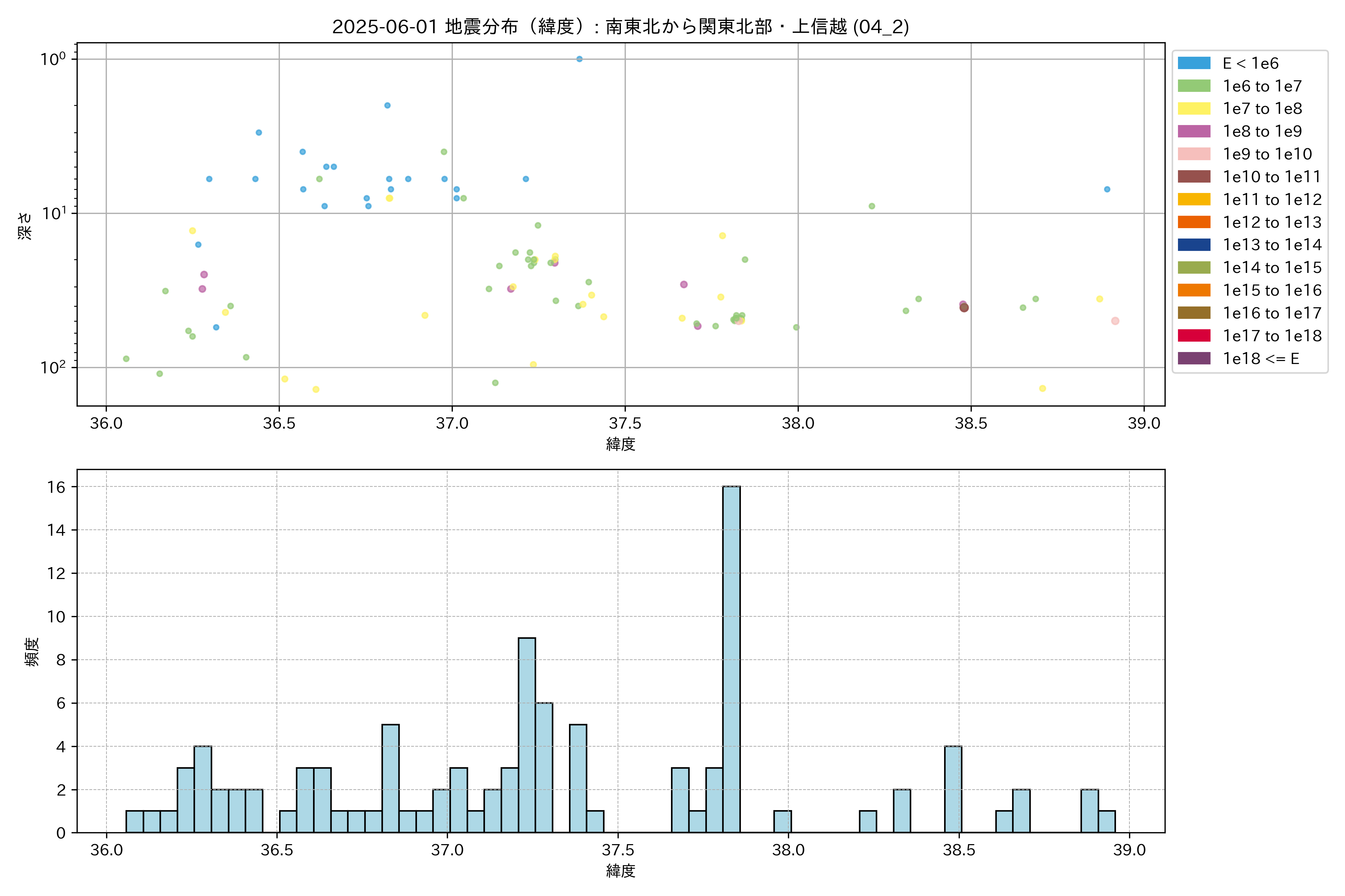 2025年06月01日 南東北から関東北部・上信越 エリア震源マップ