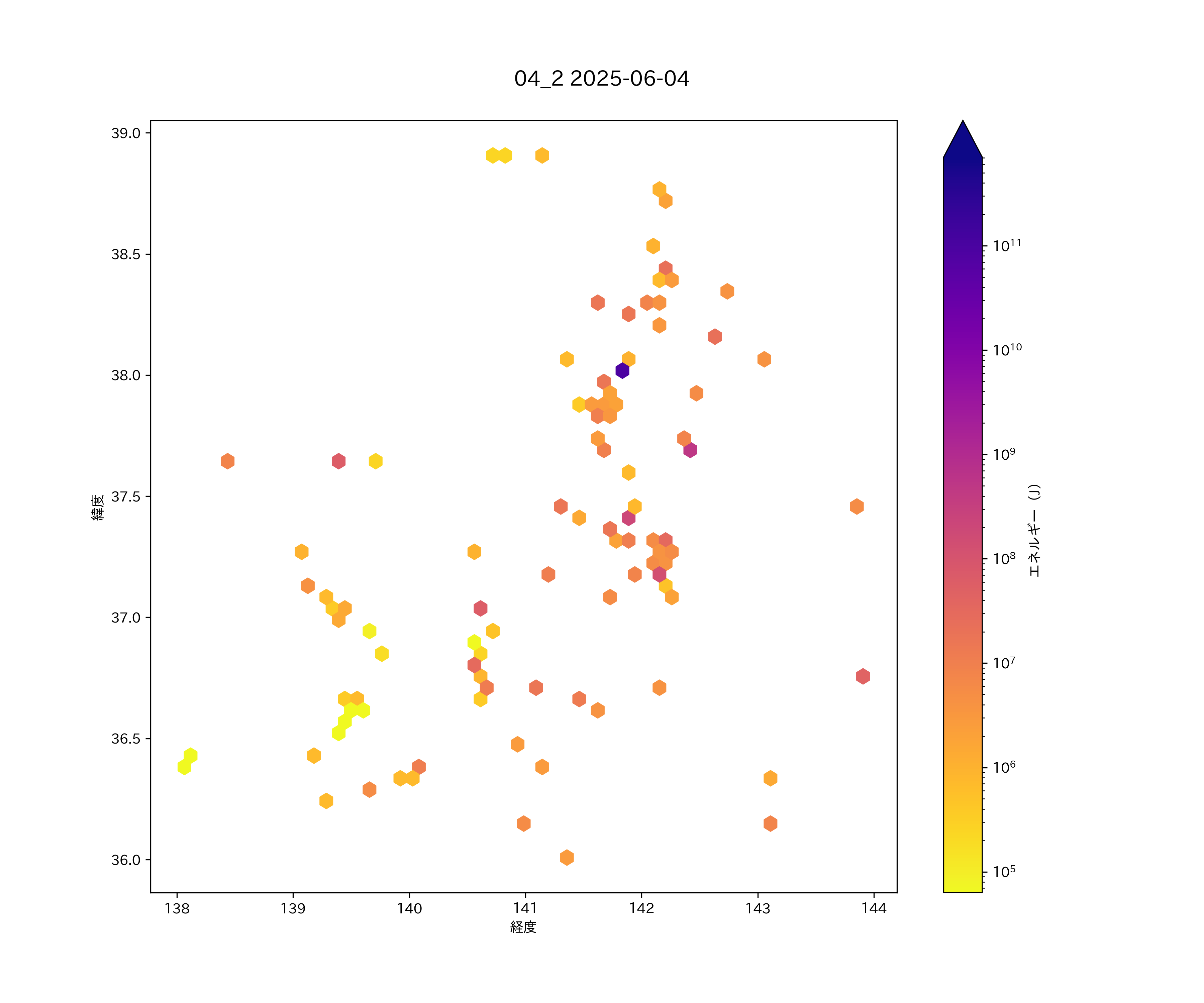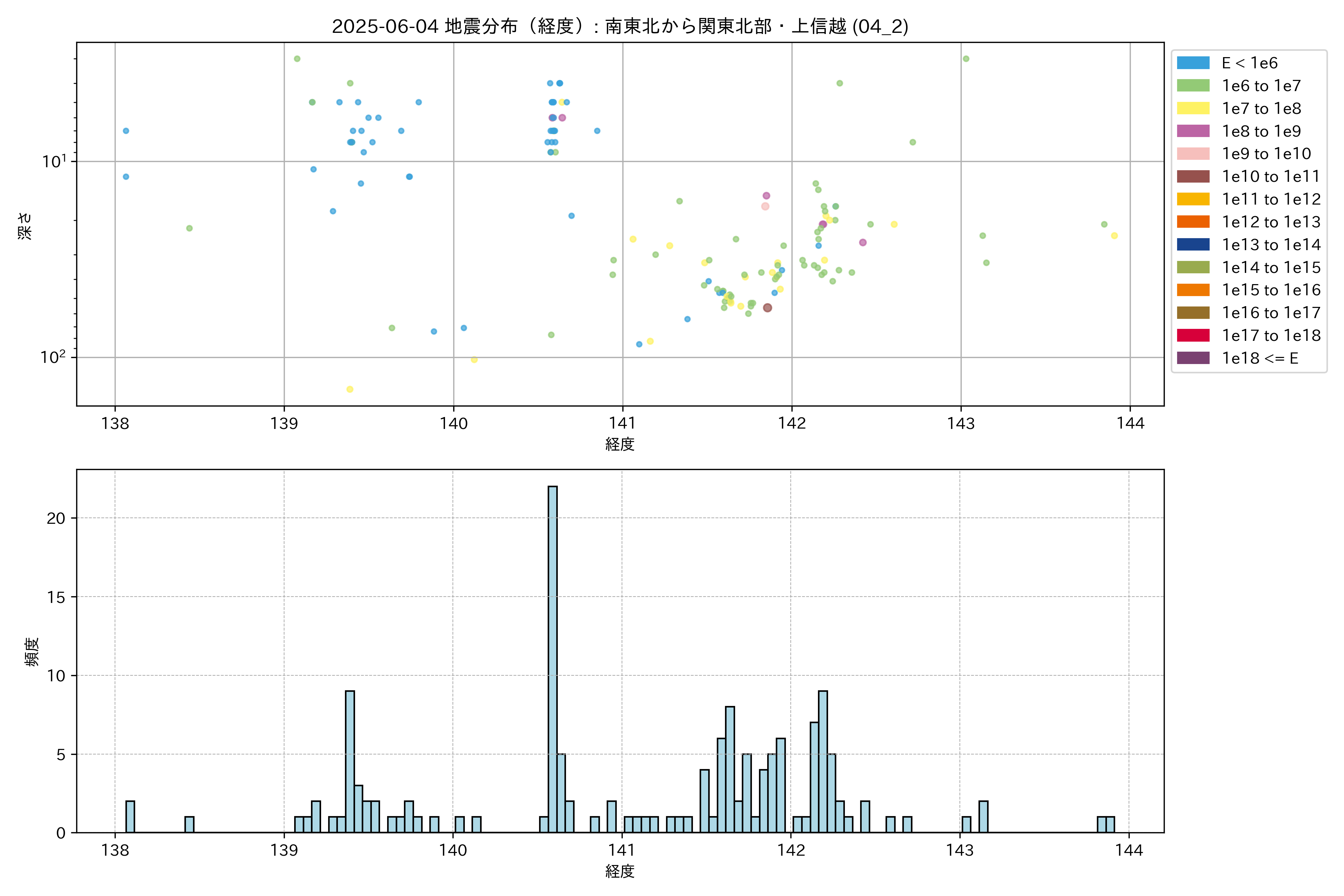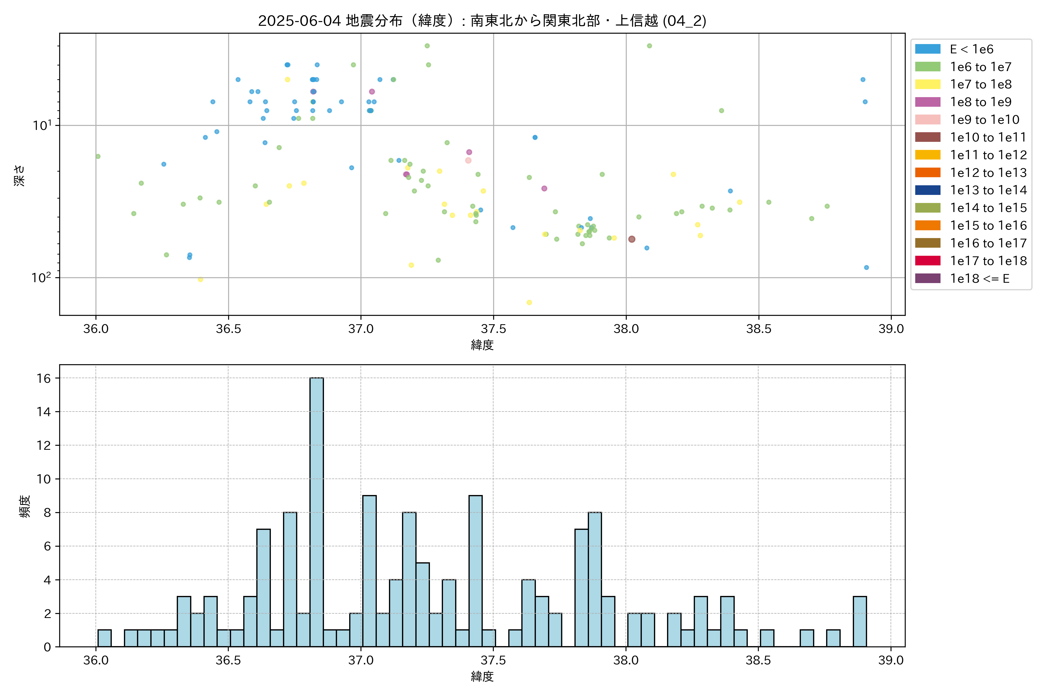 2025年06月04日 南東北から関東北部・上信越 エリア震源マップ