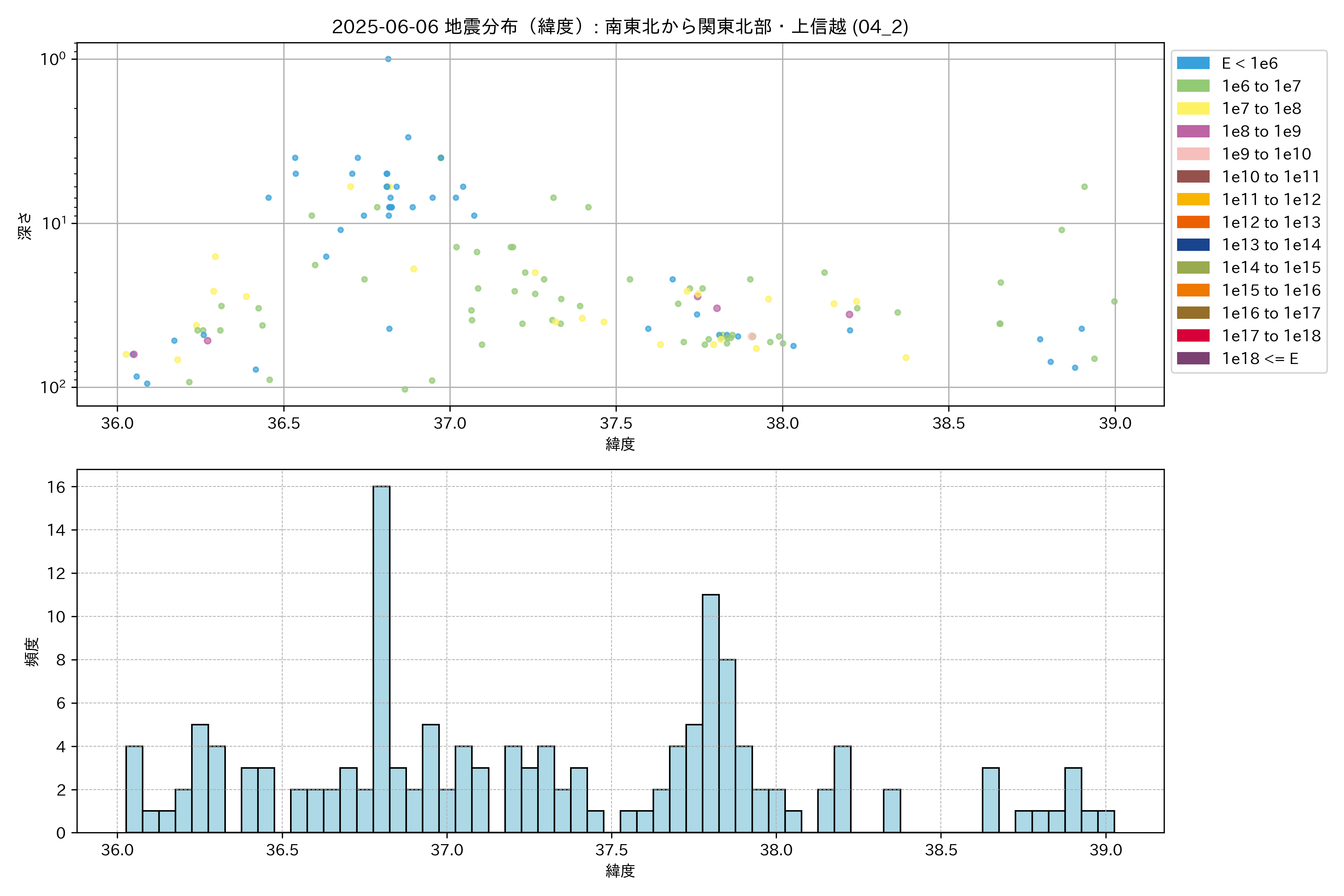 2025年06月06日 南東北から関東北部・上信越 エリア震源マップ