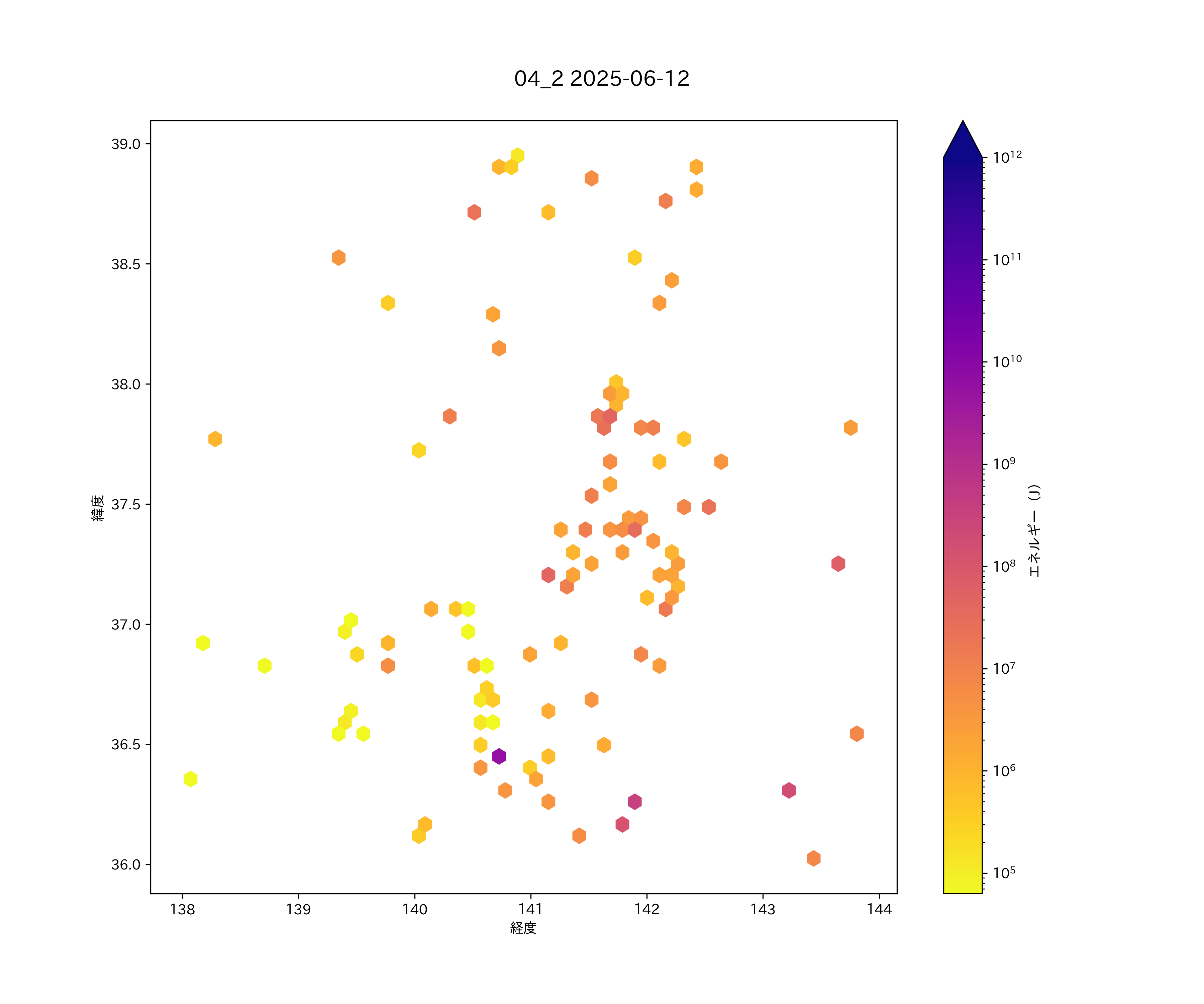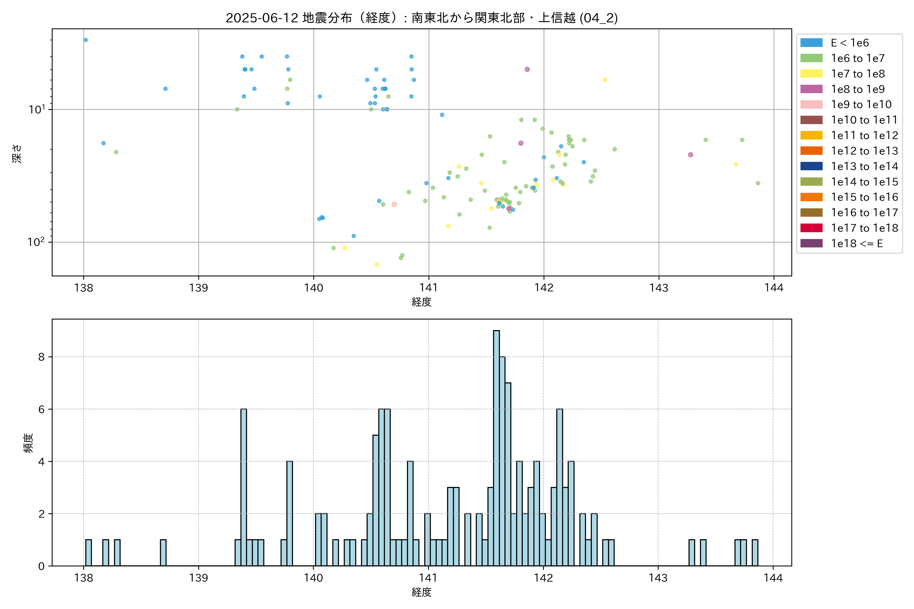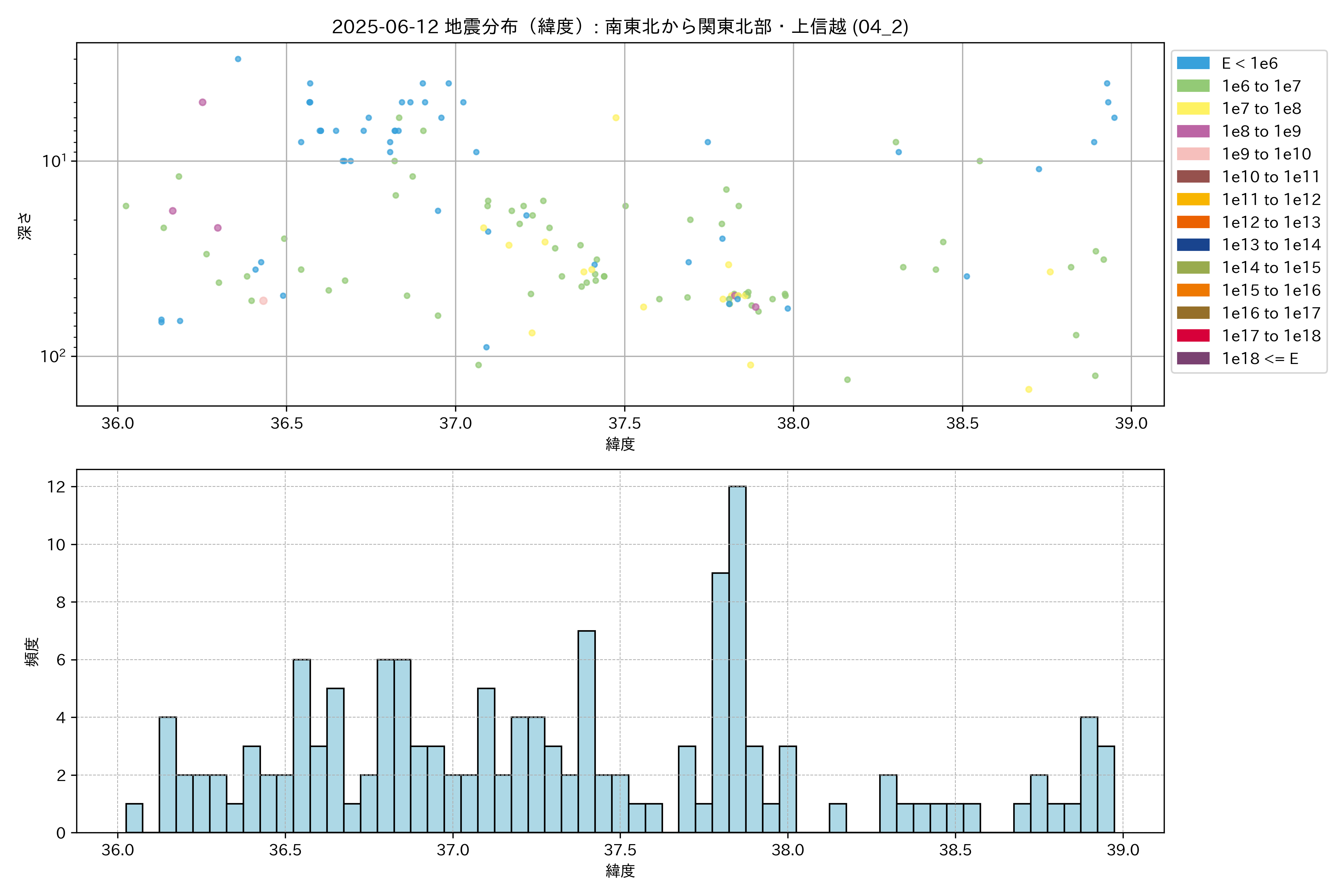 2025年06月12日 南東北から関東北部・上信越 エリア震源マップ