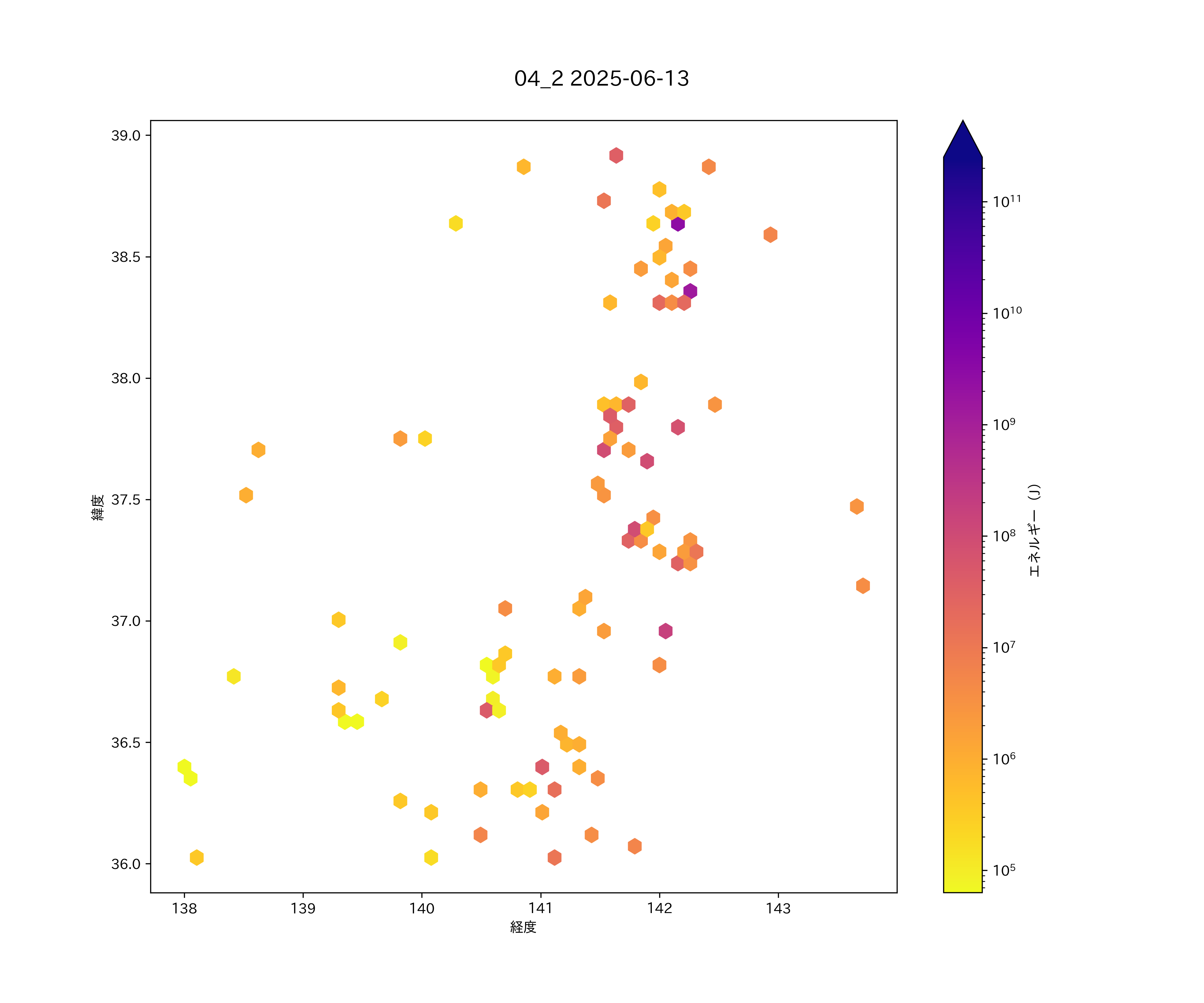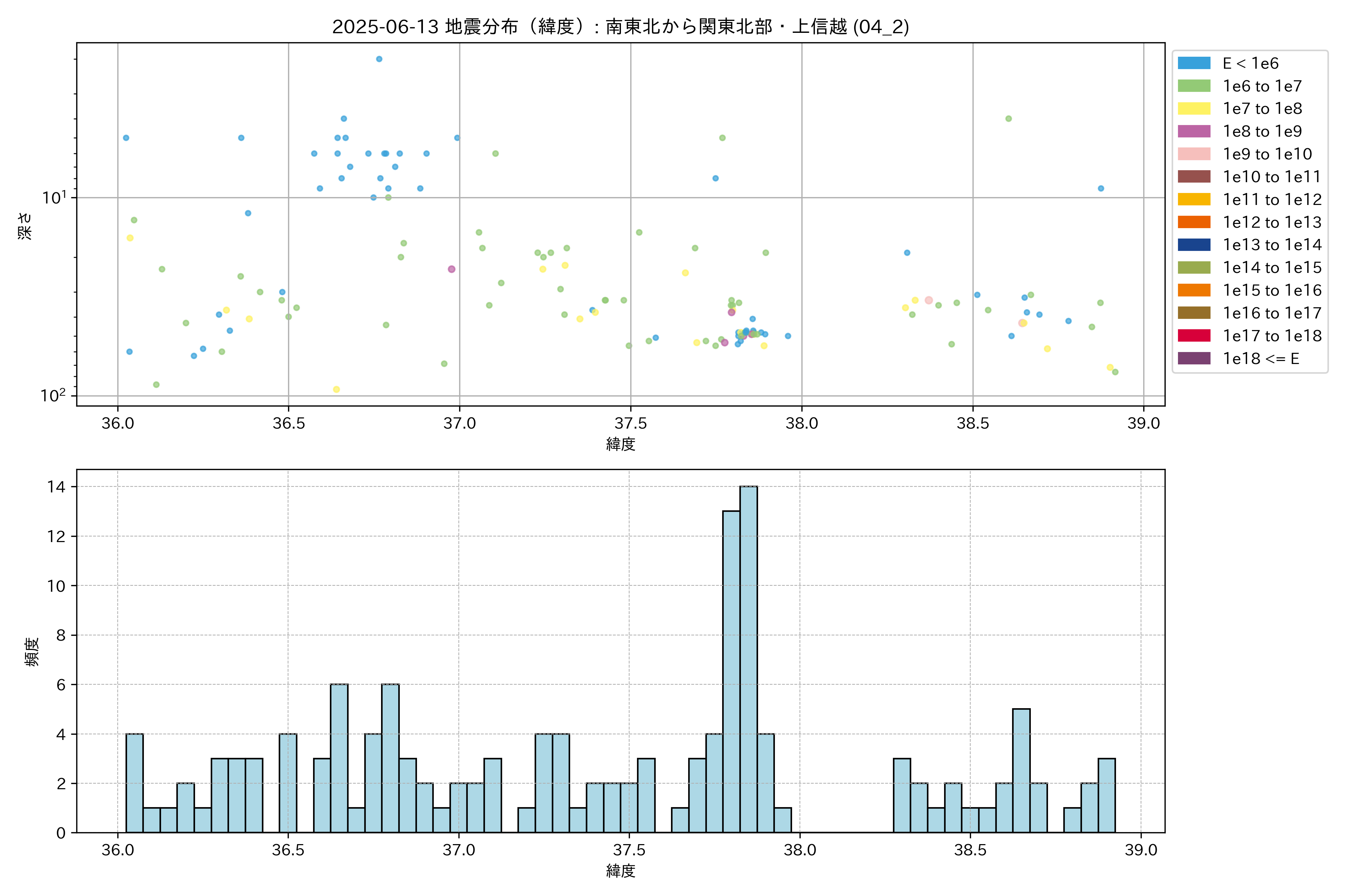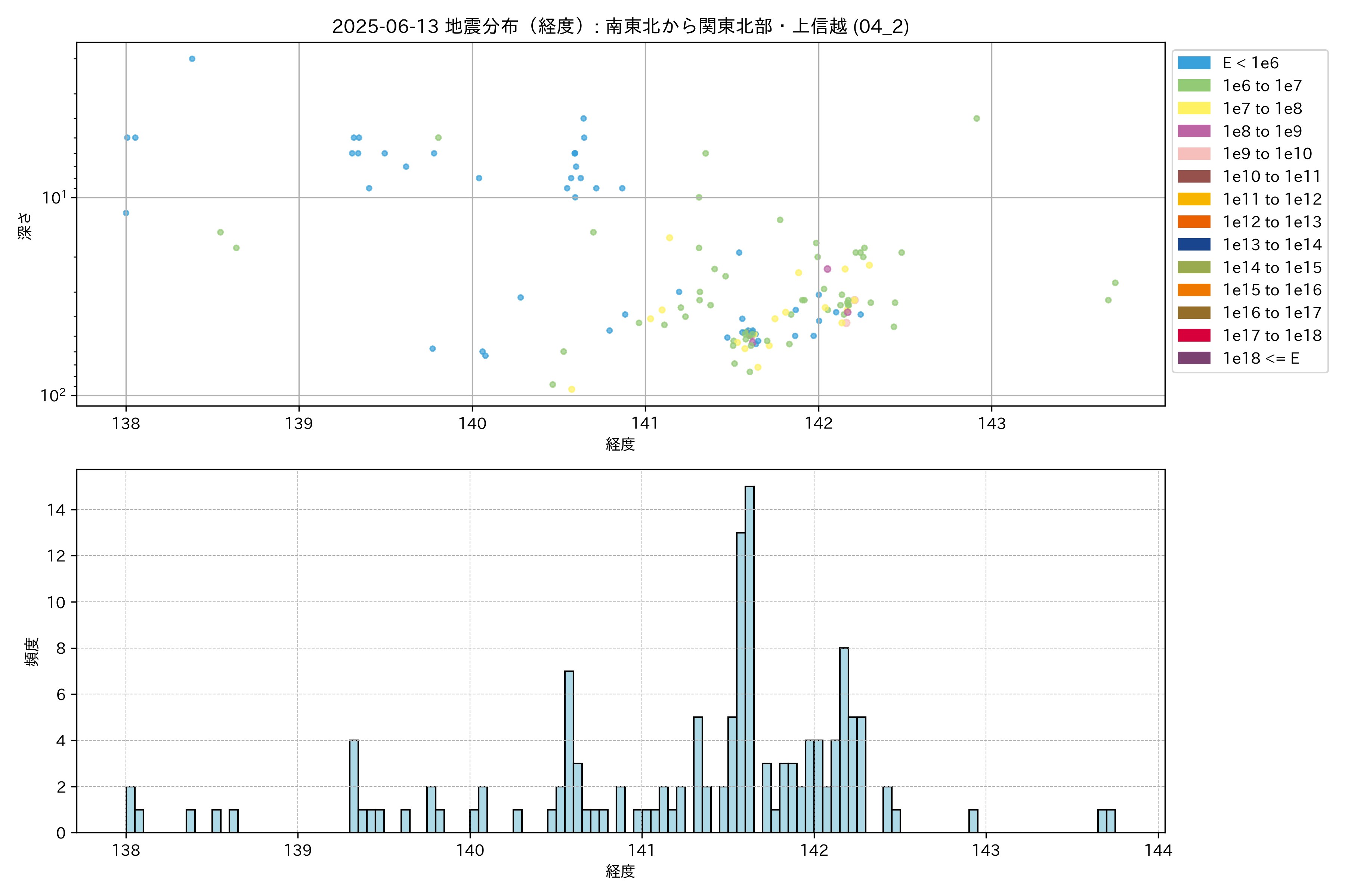 2025年06月13日 南東北から関東北部・上信越 エリア震源マップ