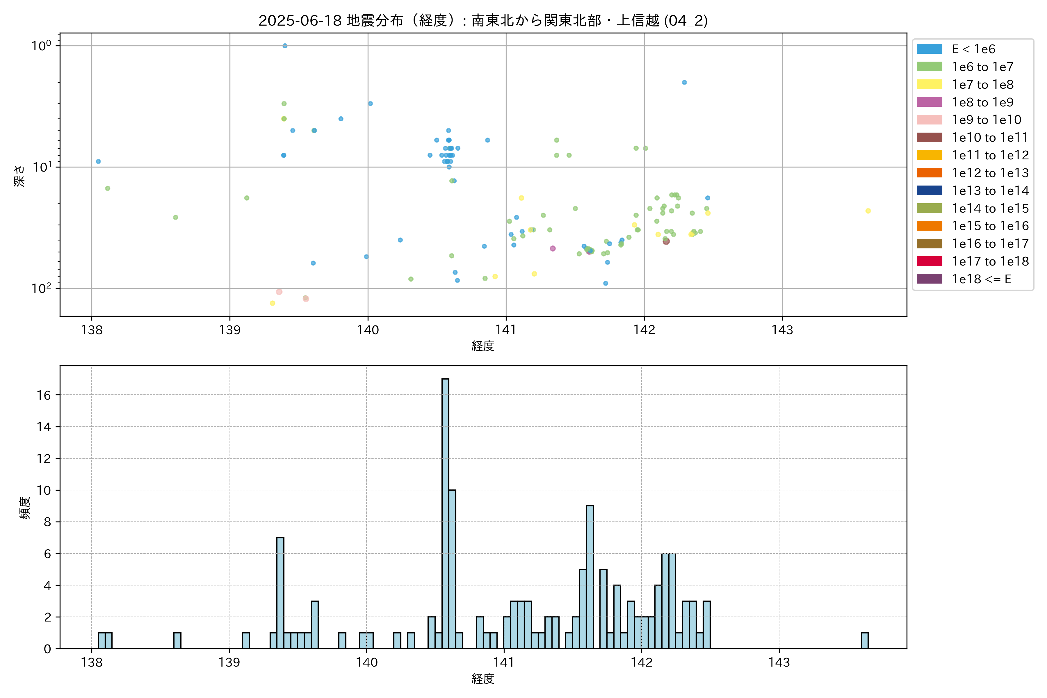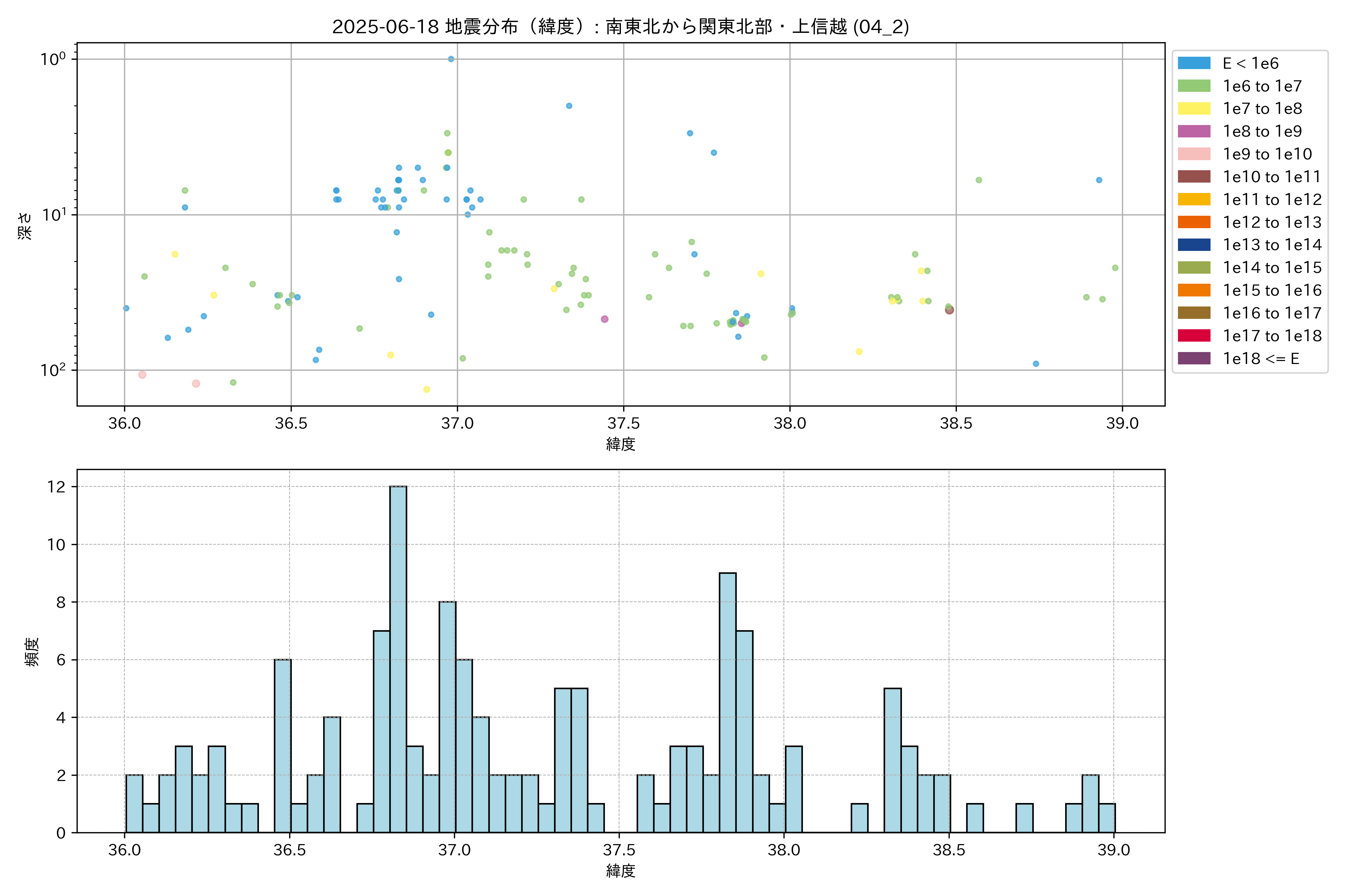 2025年06月18日 南東北から関東北部・上信越 エリア震源マップ