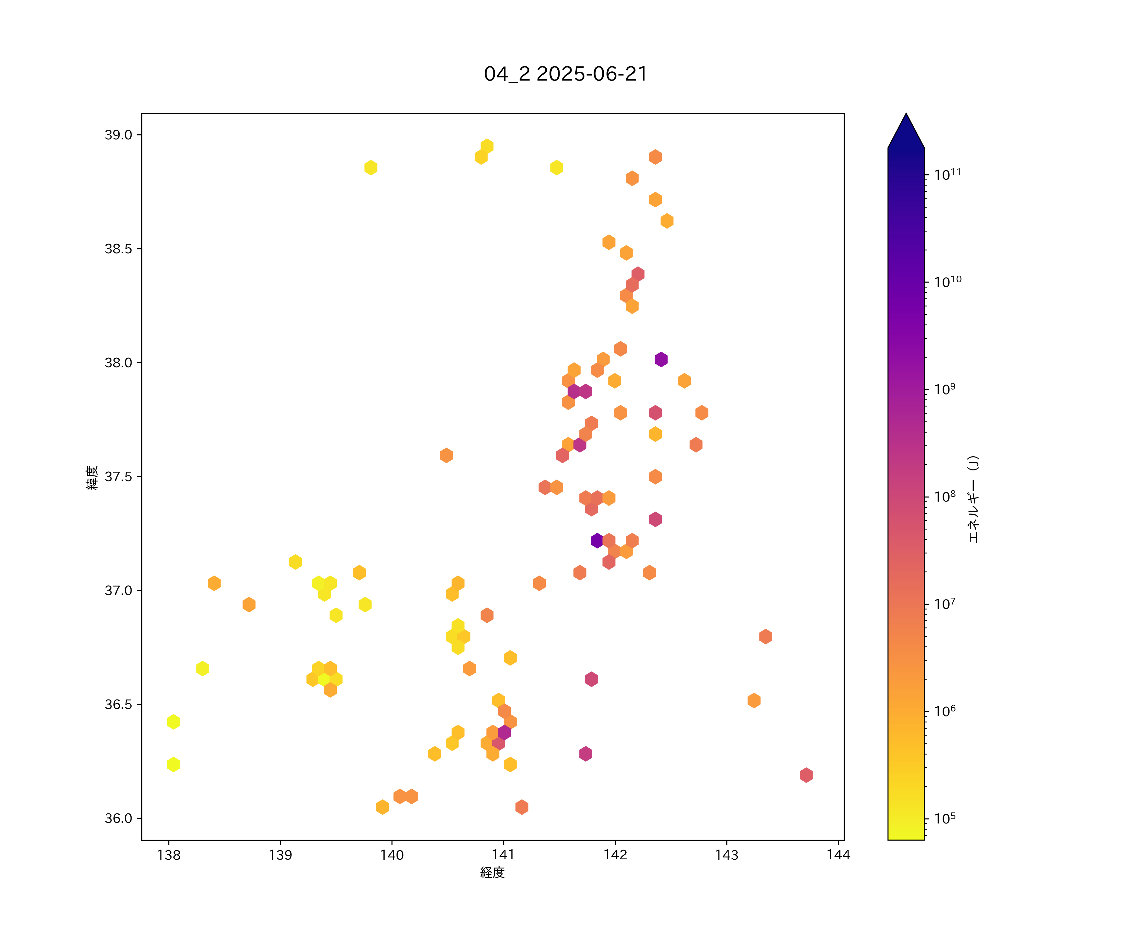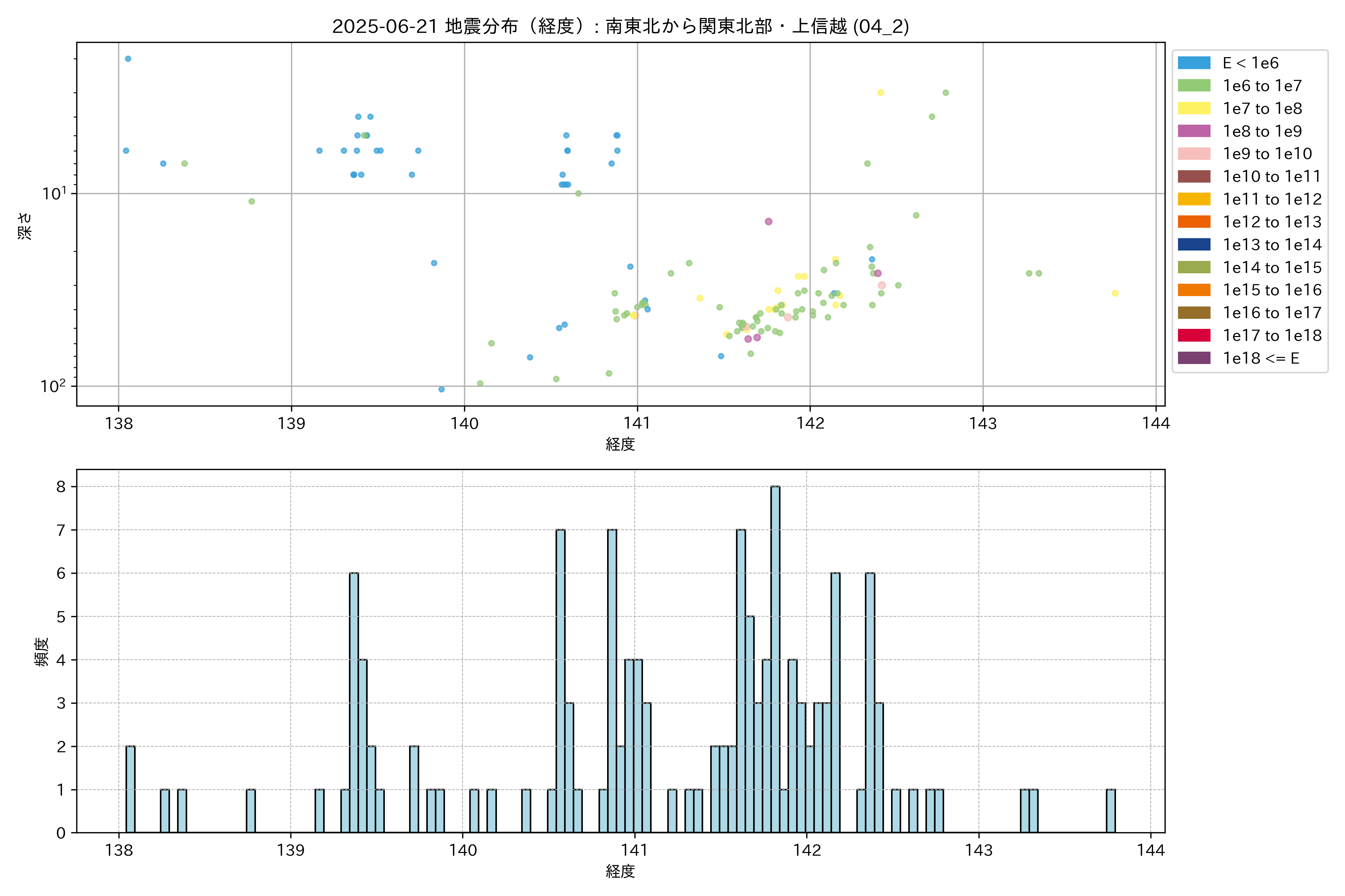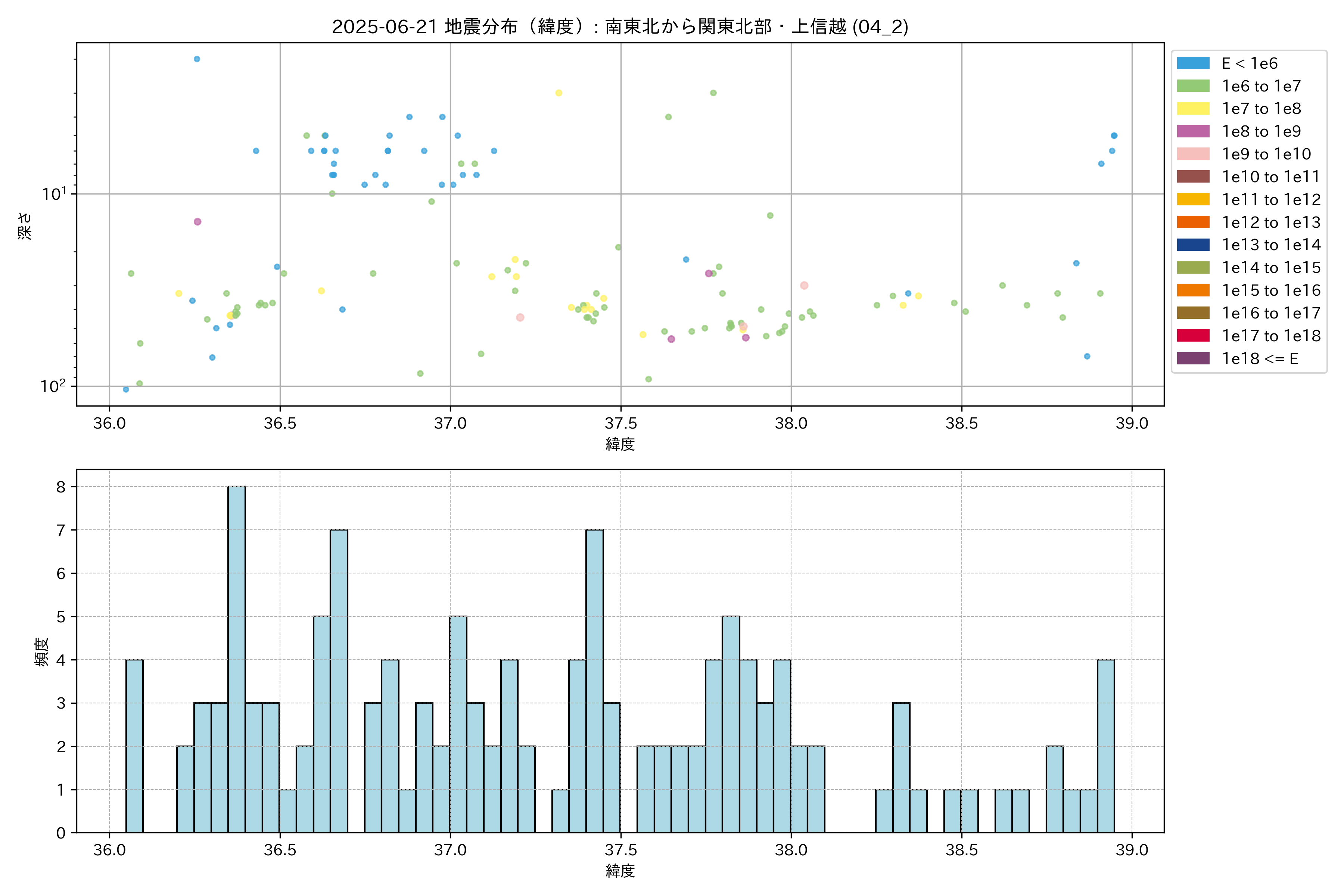 2025年06月21日 南東北から関東北部・上信越 エリア震源マップ