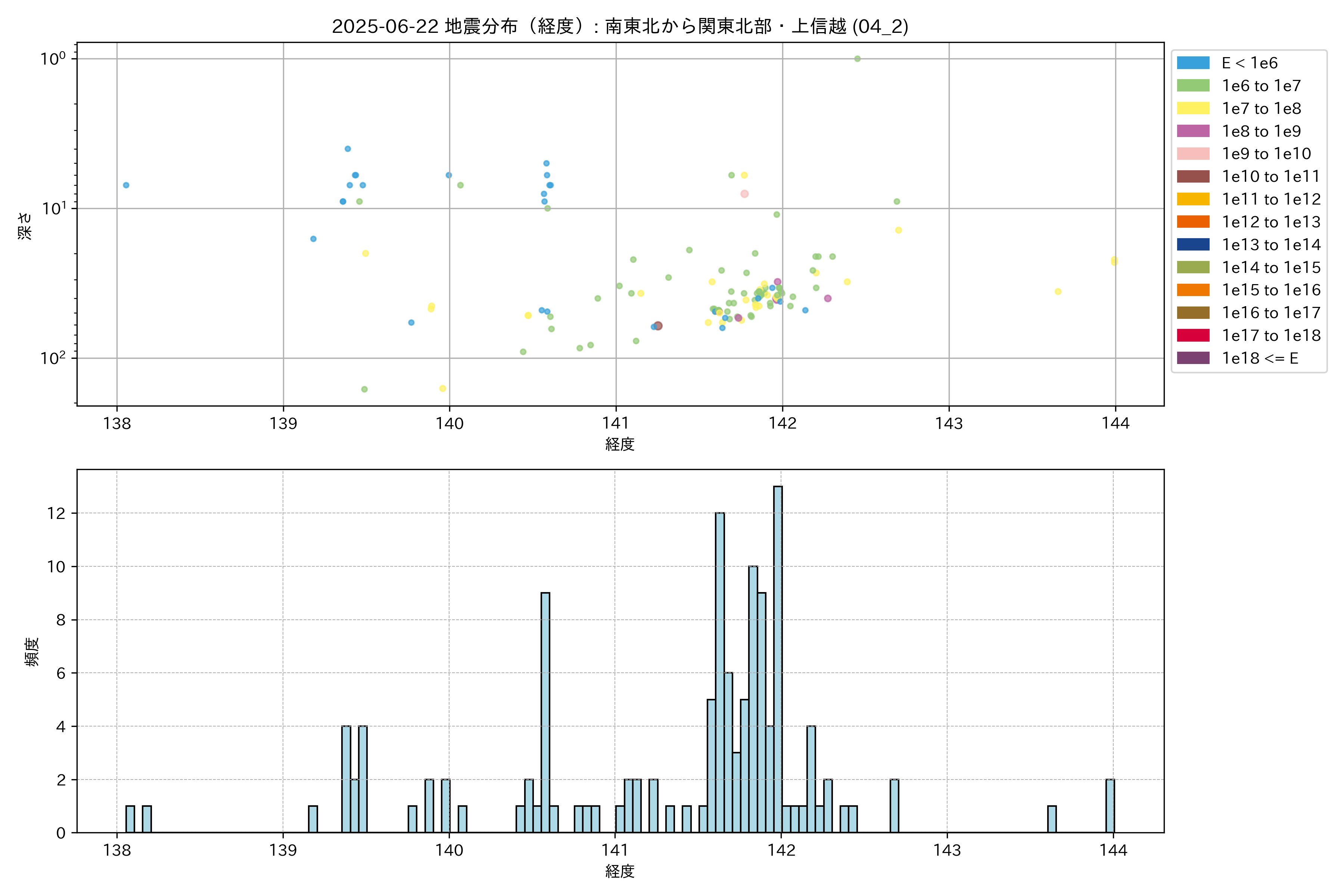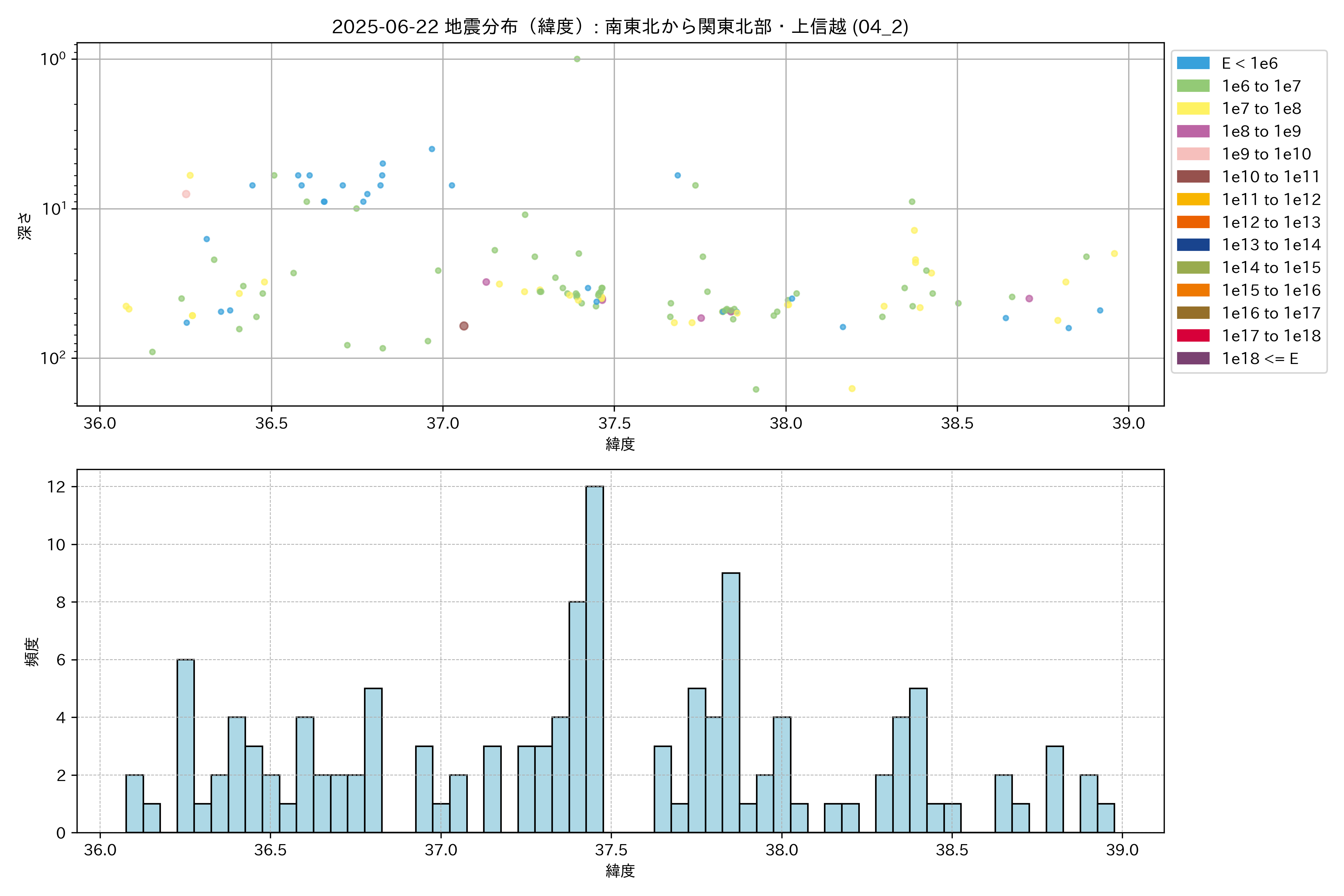 2025年06月22日 南東北から関東北部・上信越 エリア震源マップ
