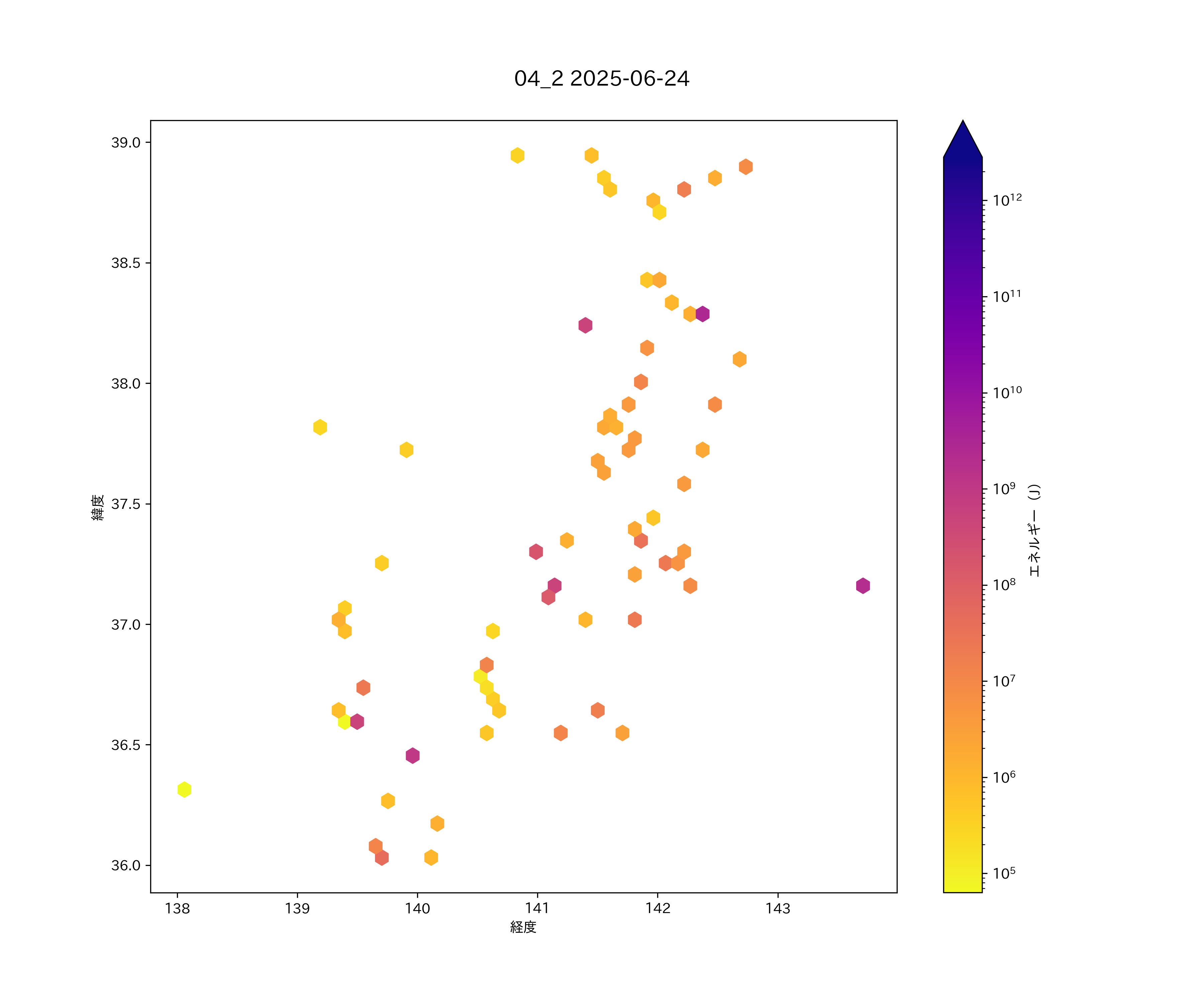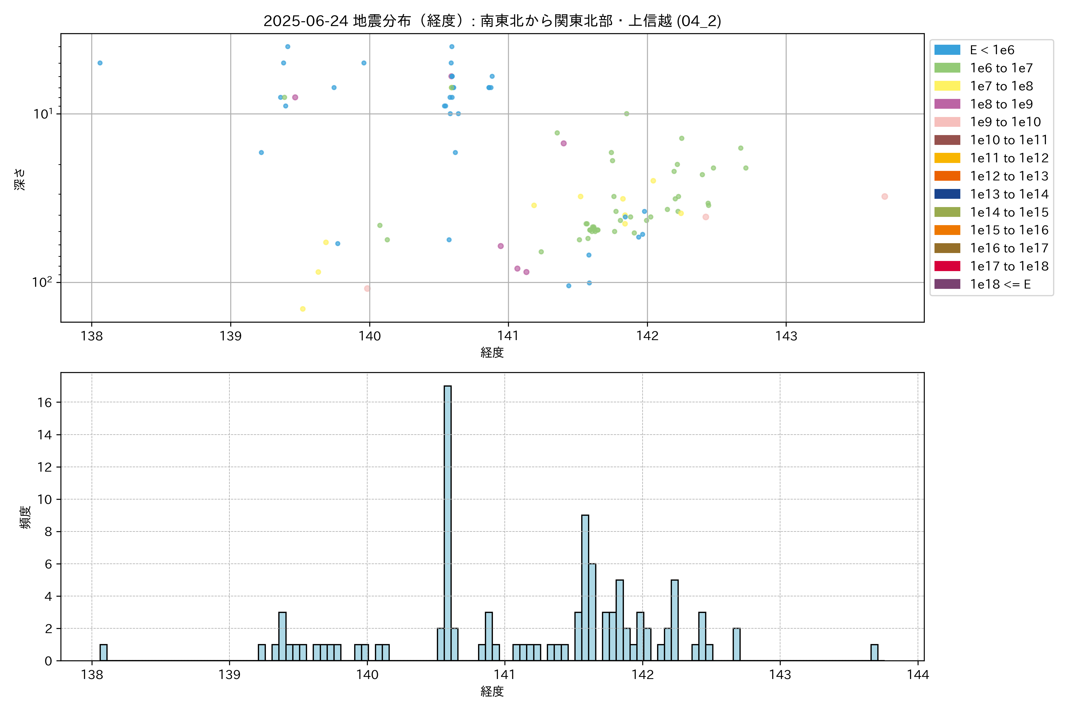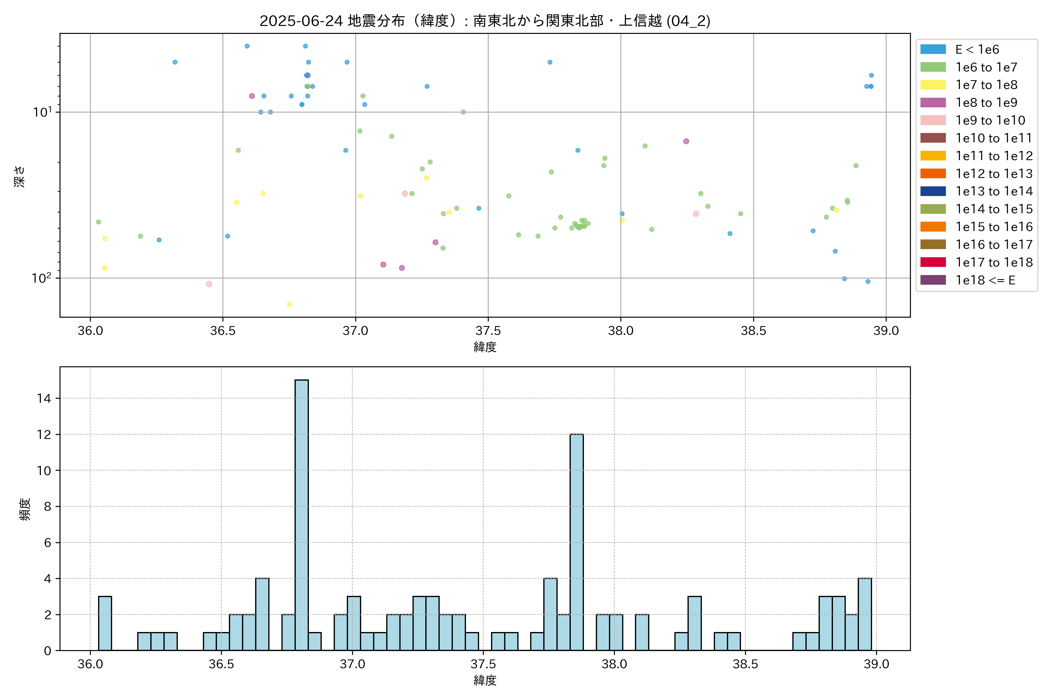 2025年06月24日 南東北から関東北部・上信越 エリア震源マップ