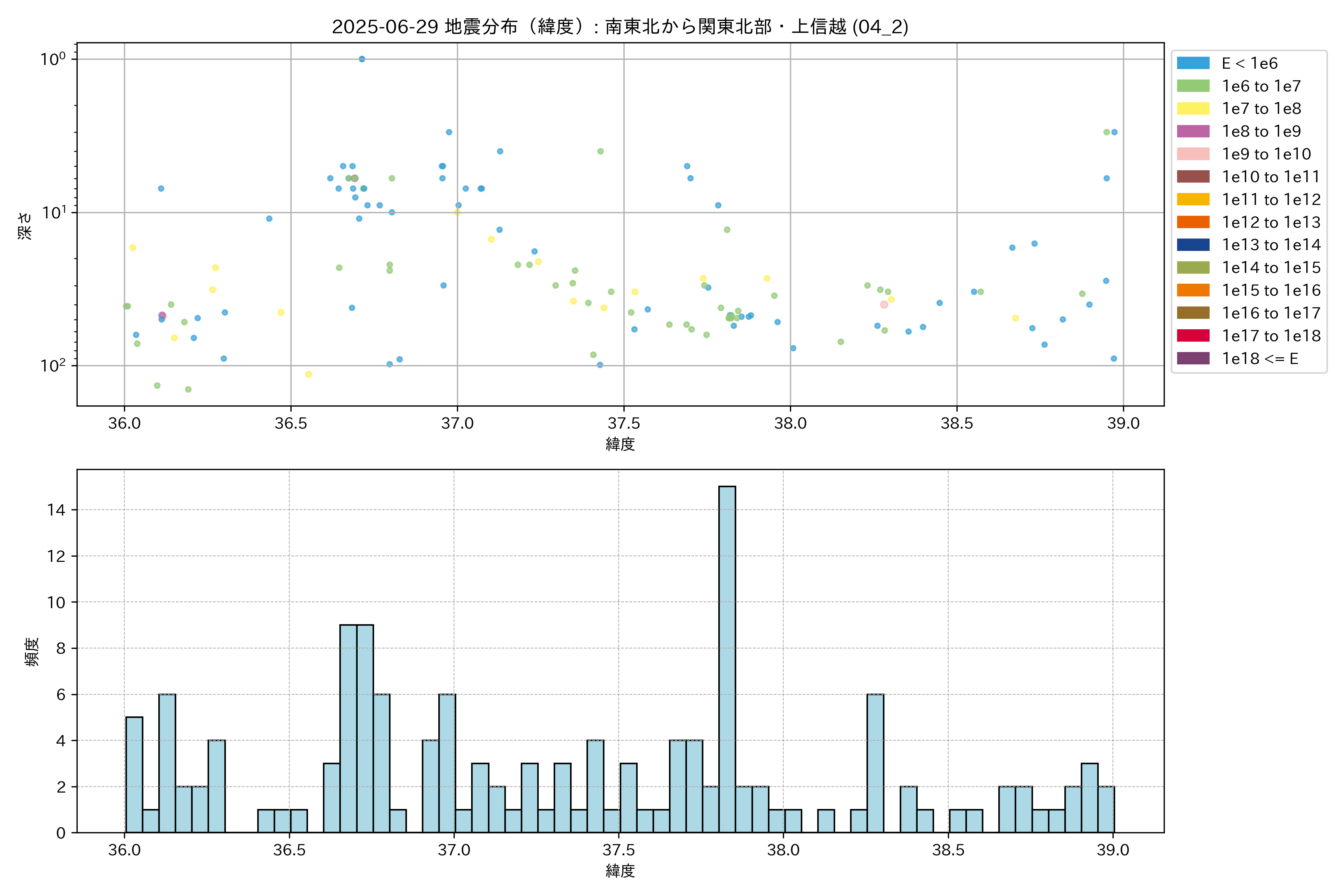 2025年06月29日 南東北から関東北部・上信越 エリア震源マップ