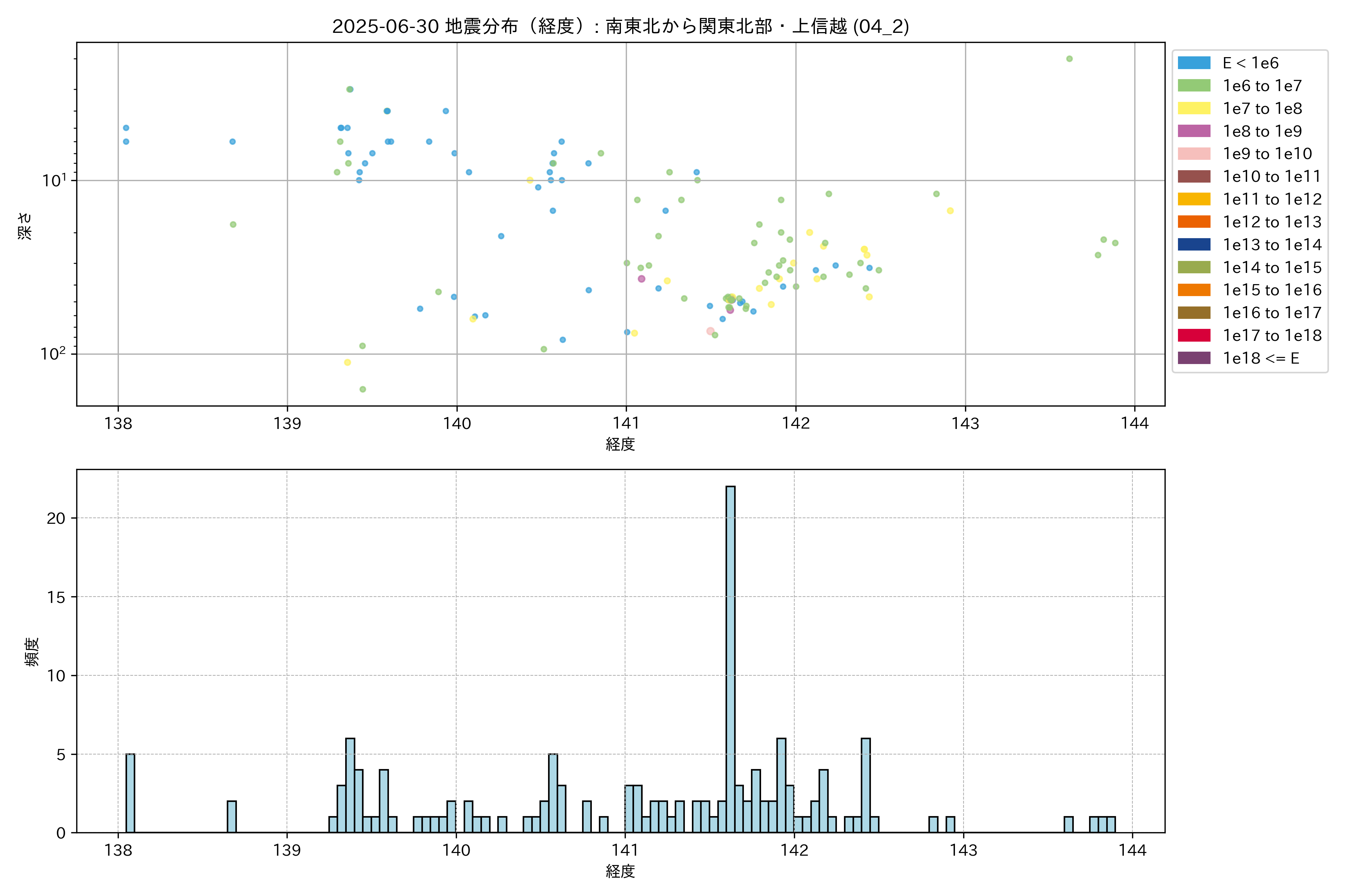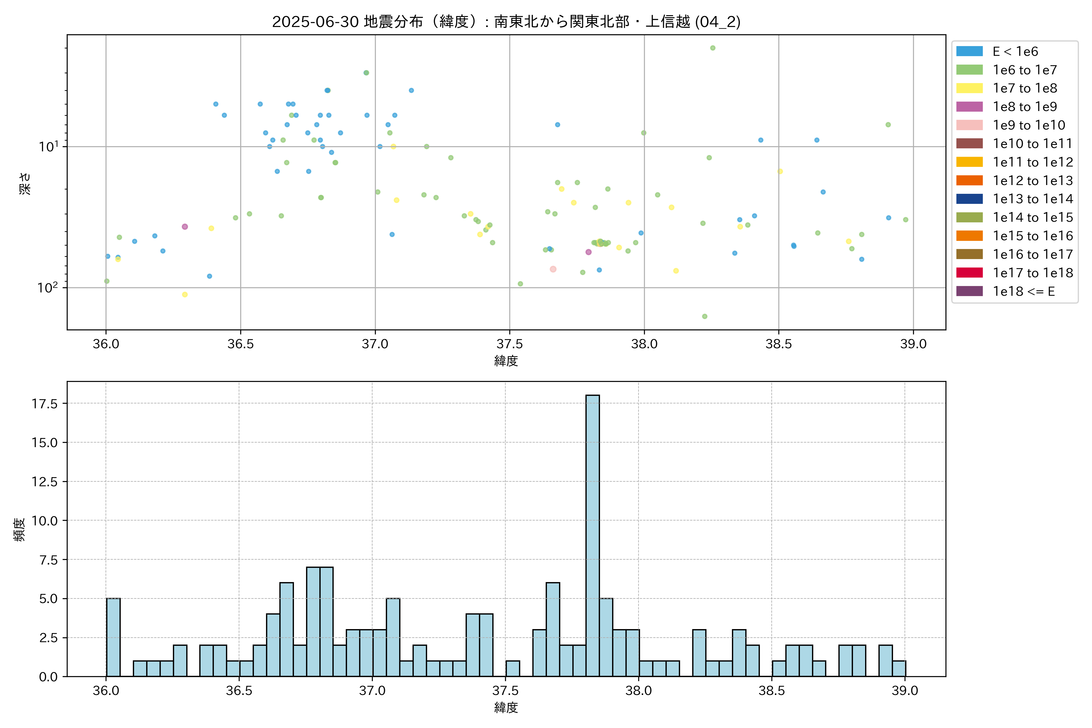 2025年06月30日 南東北から関東北部・上信越 エリア震源マップ