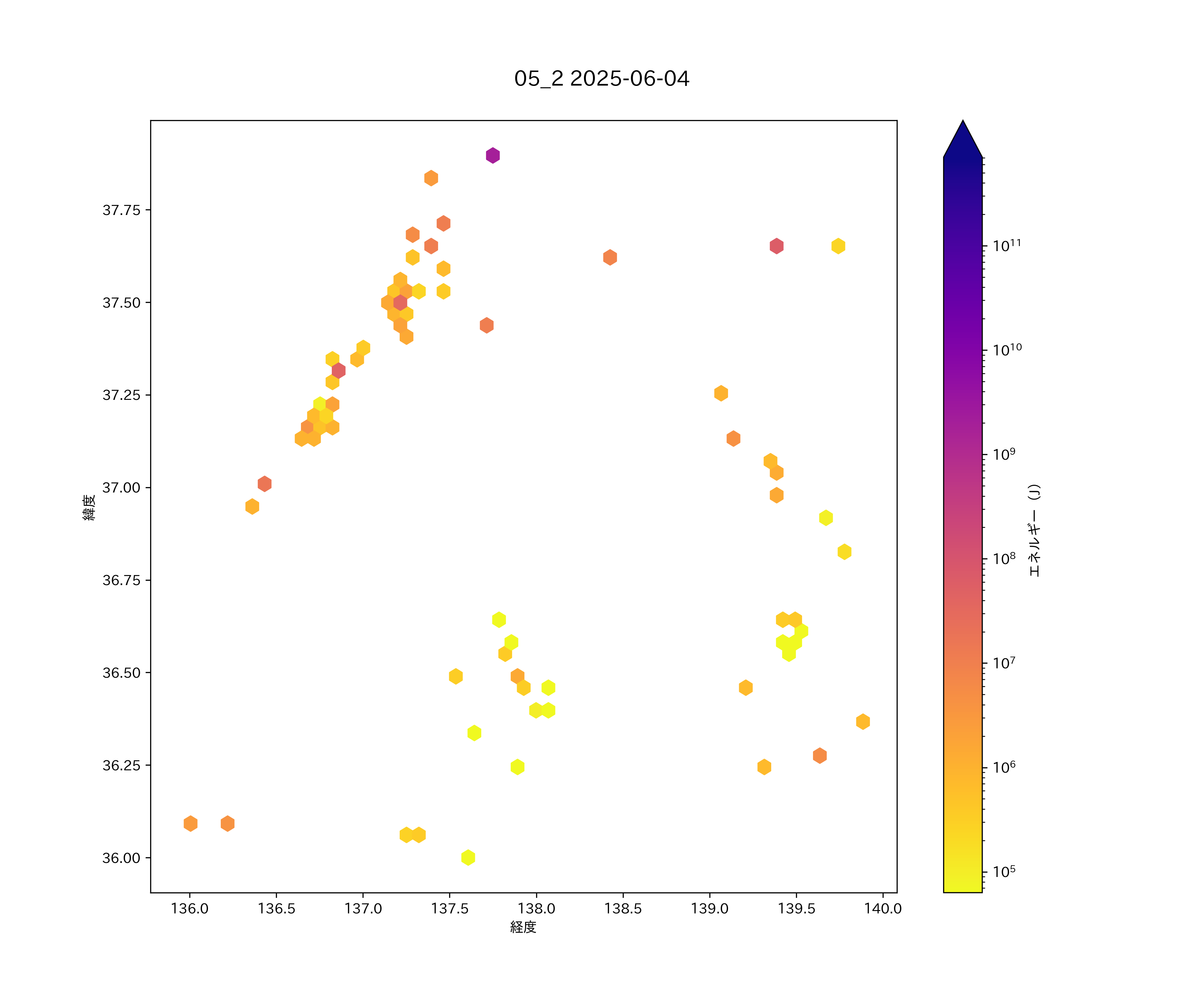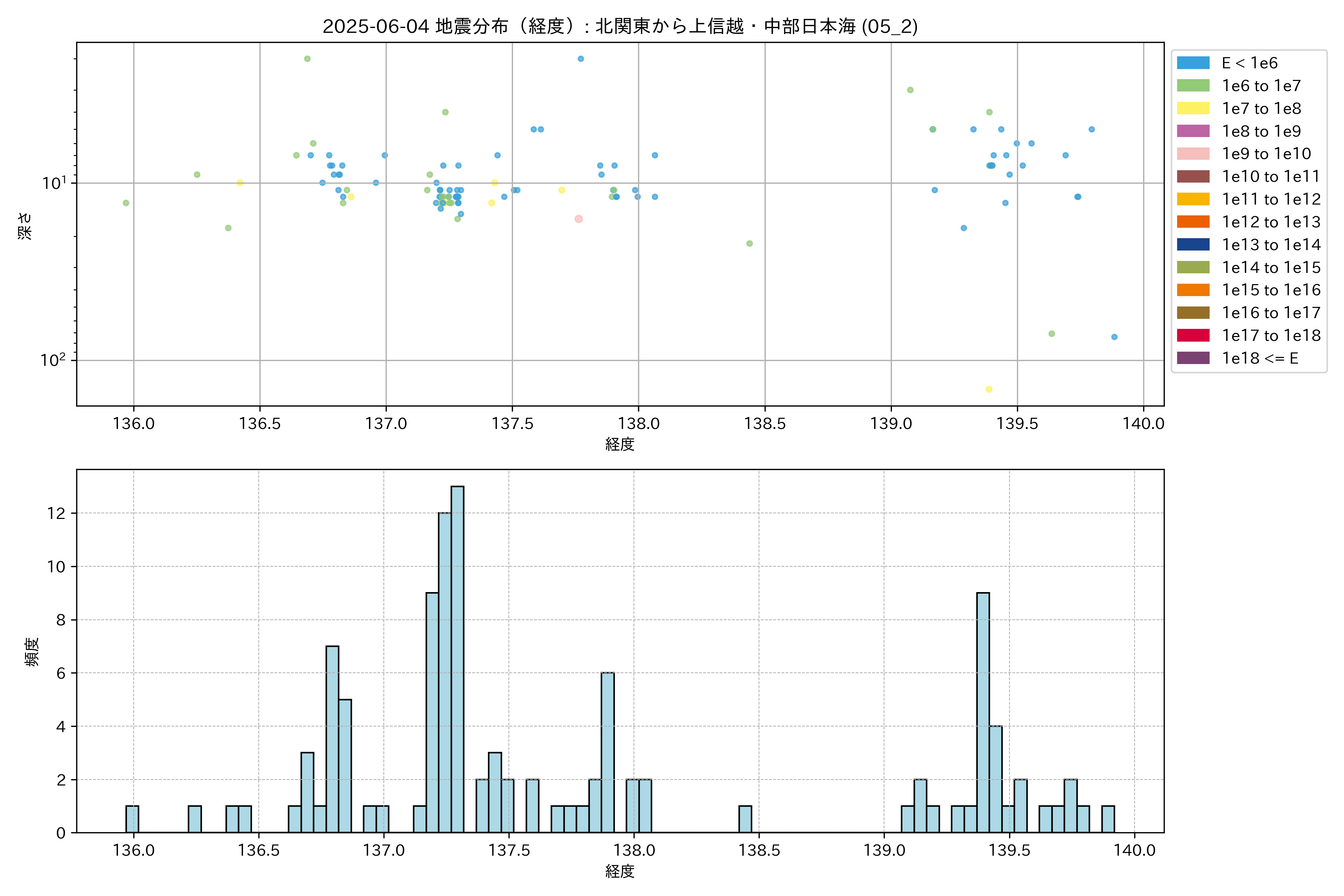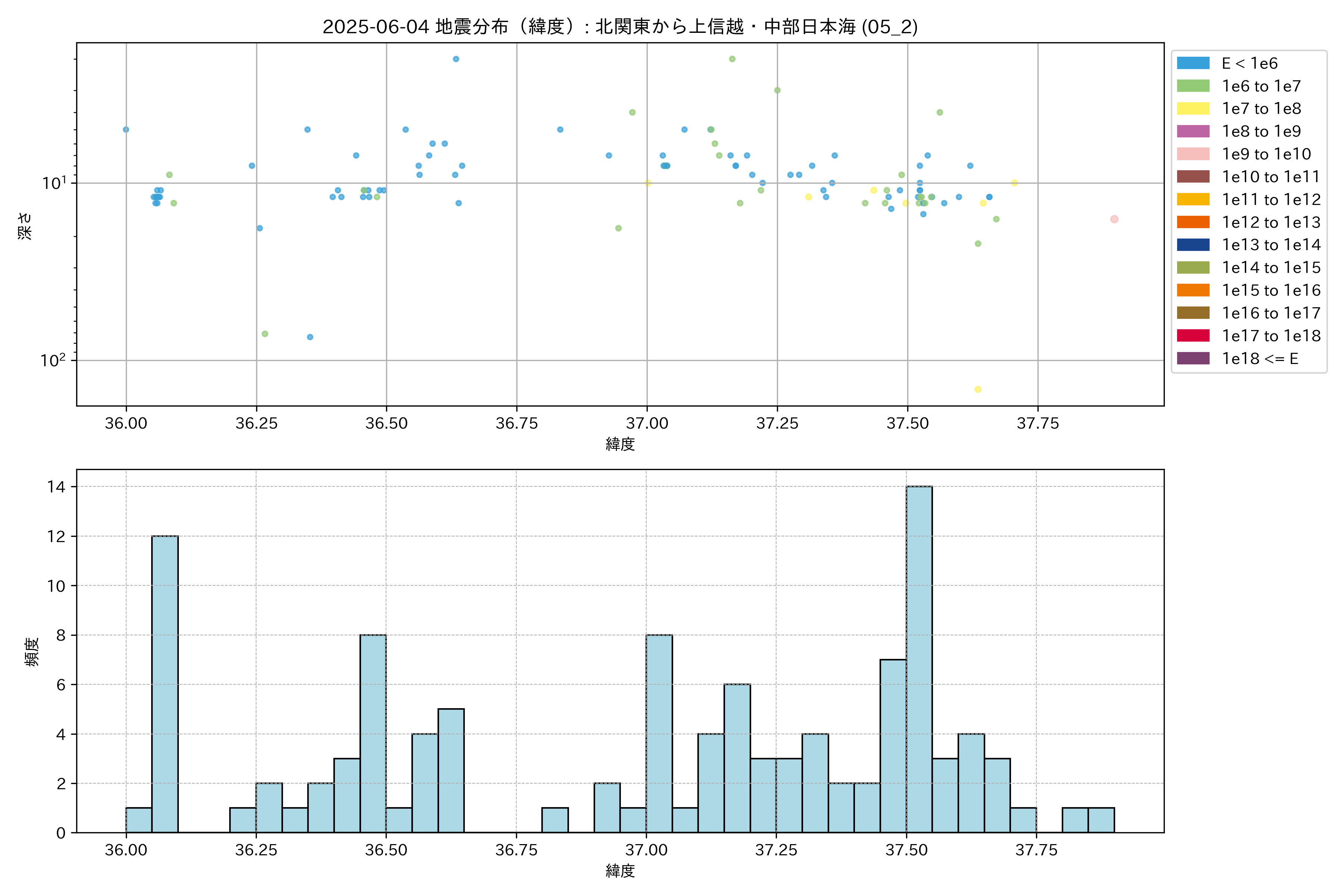2025年06月04日 北関東から上信越・中部日本海 エリア震源マップ