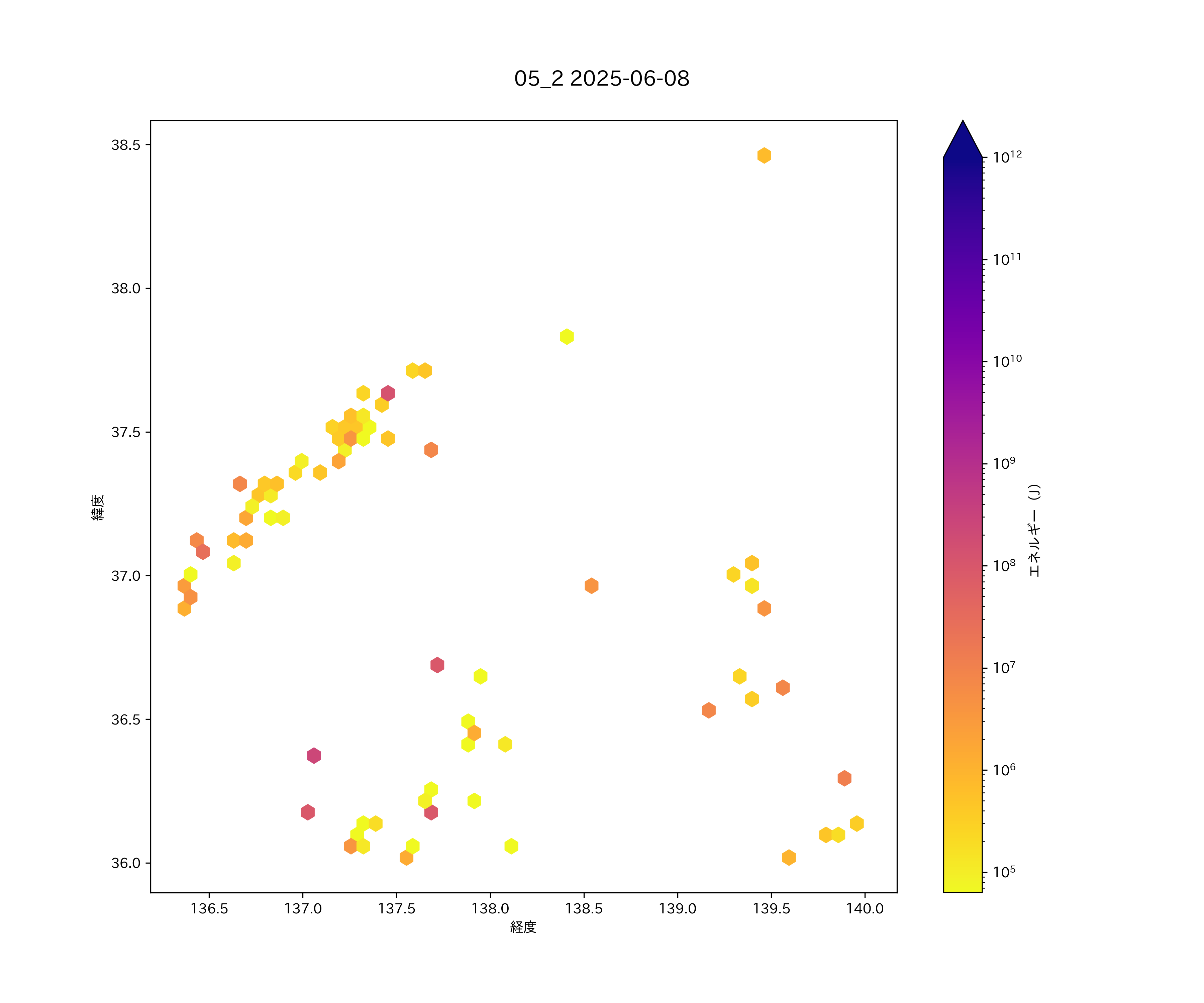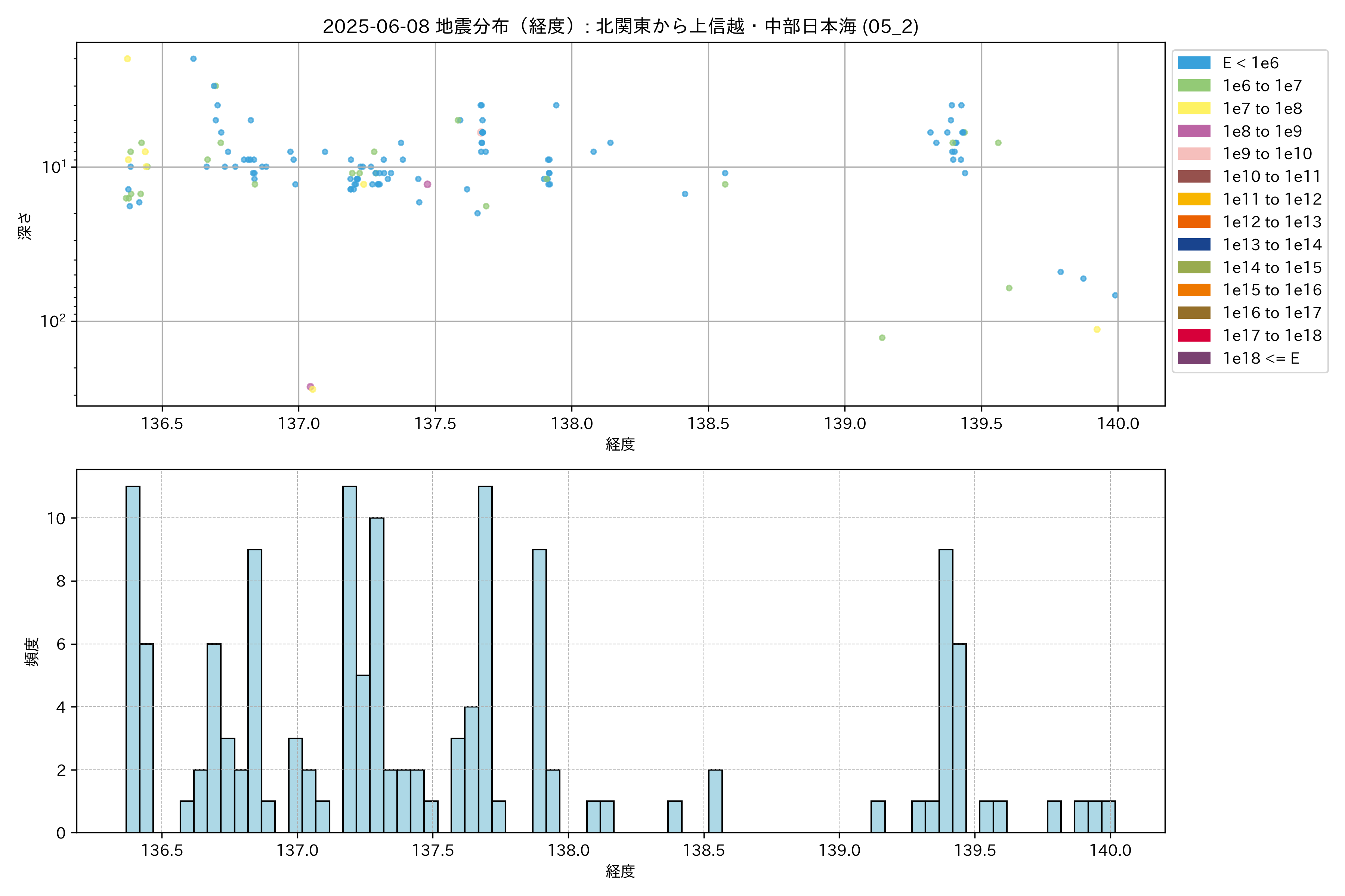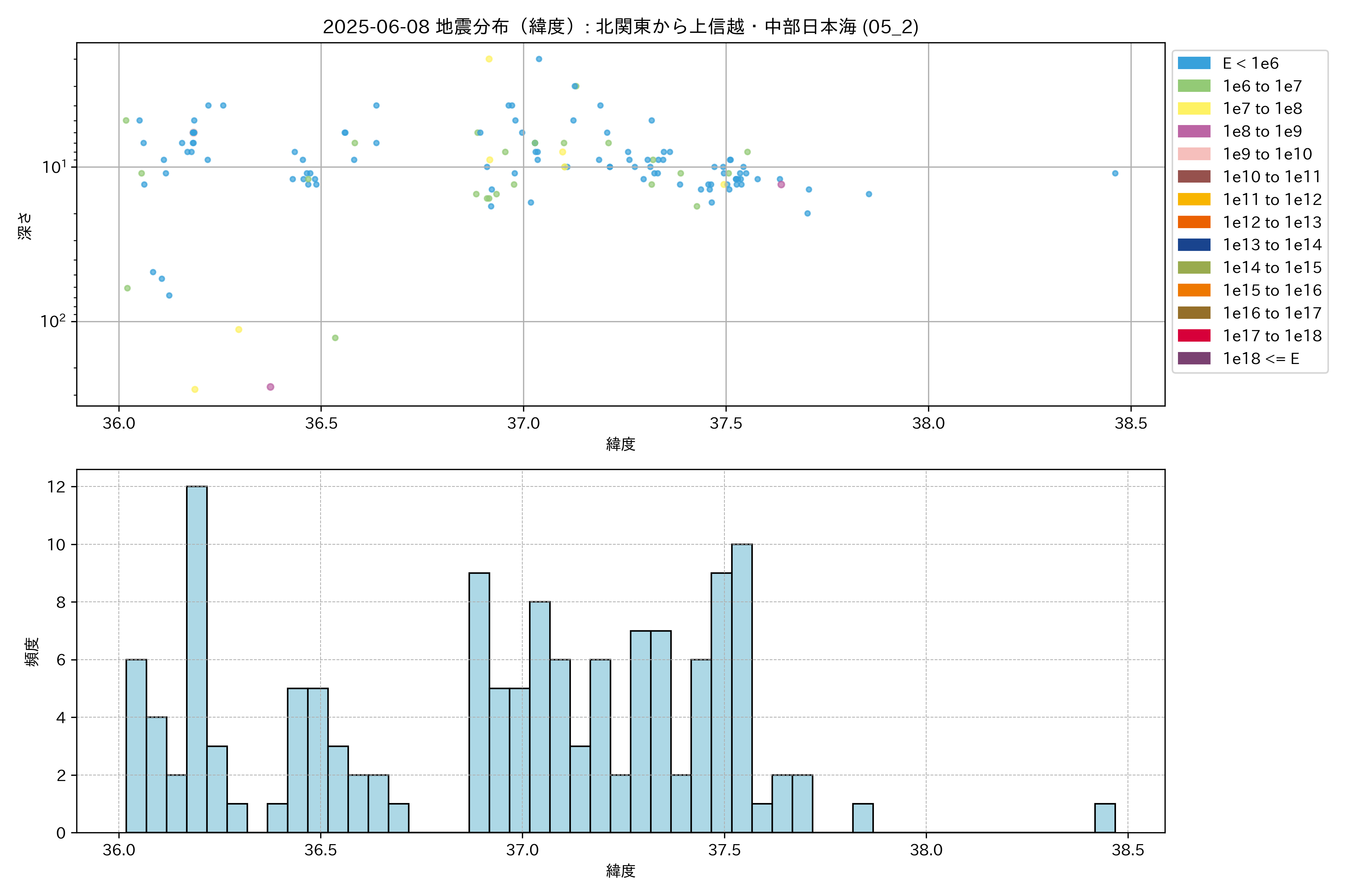 2025年06月08日 北関東から上信越・中部日本海 エリア震源マップ