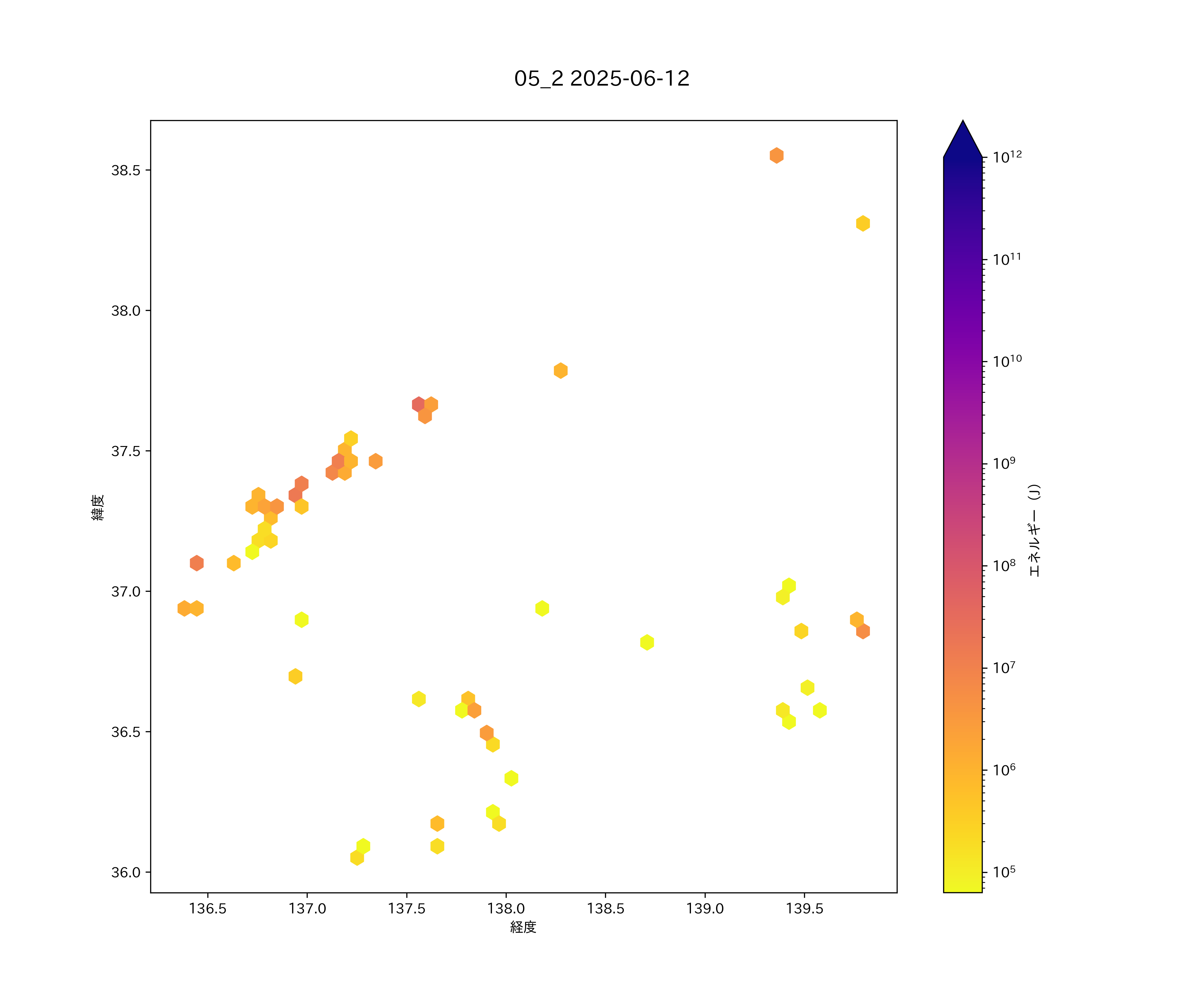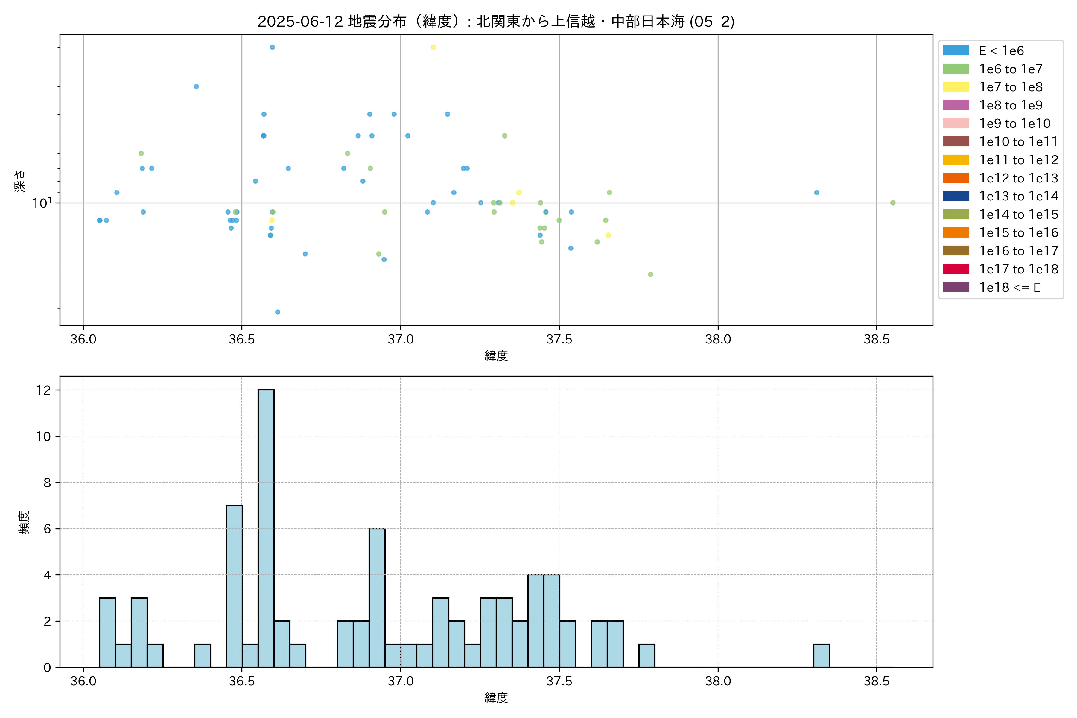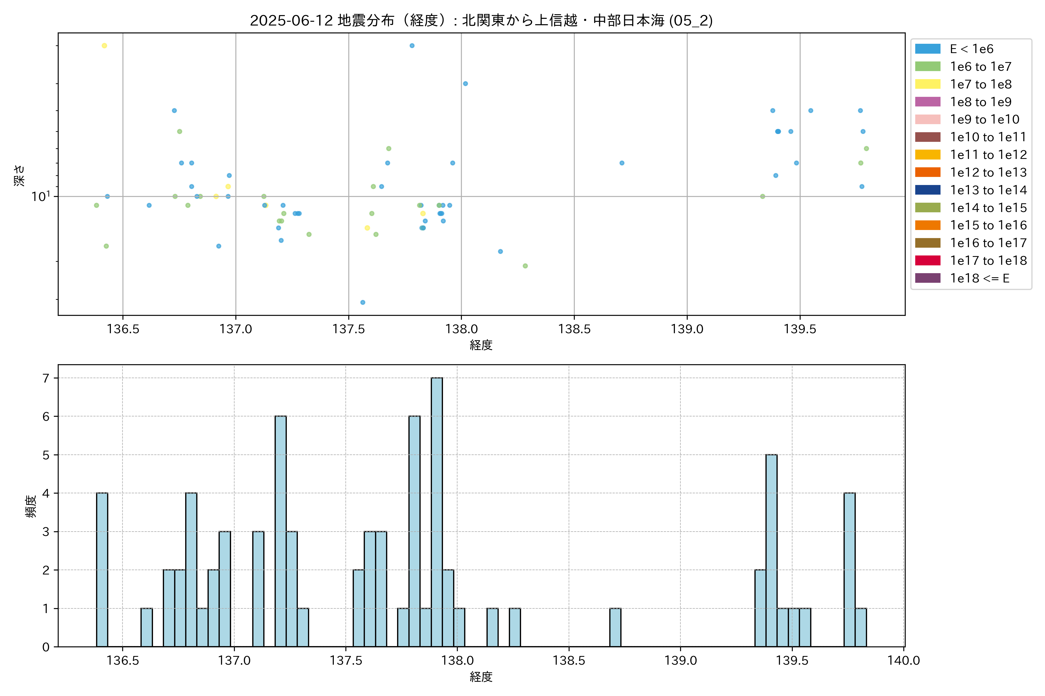 2025年06月12日 北関東から上信越・中部日本海 エリア震源マップ