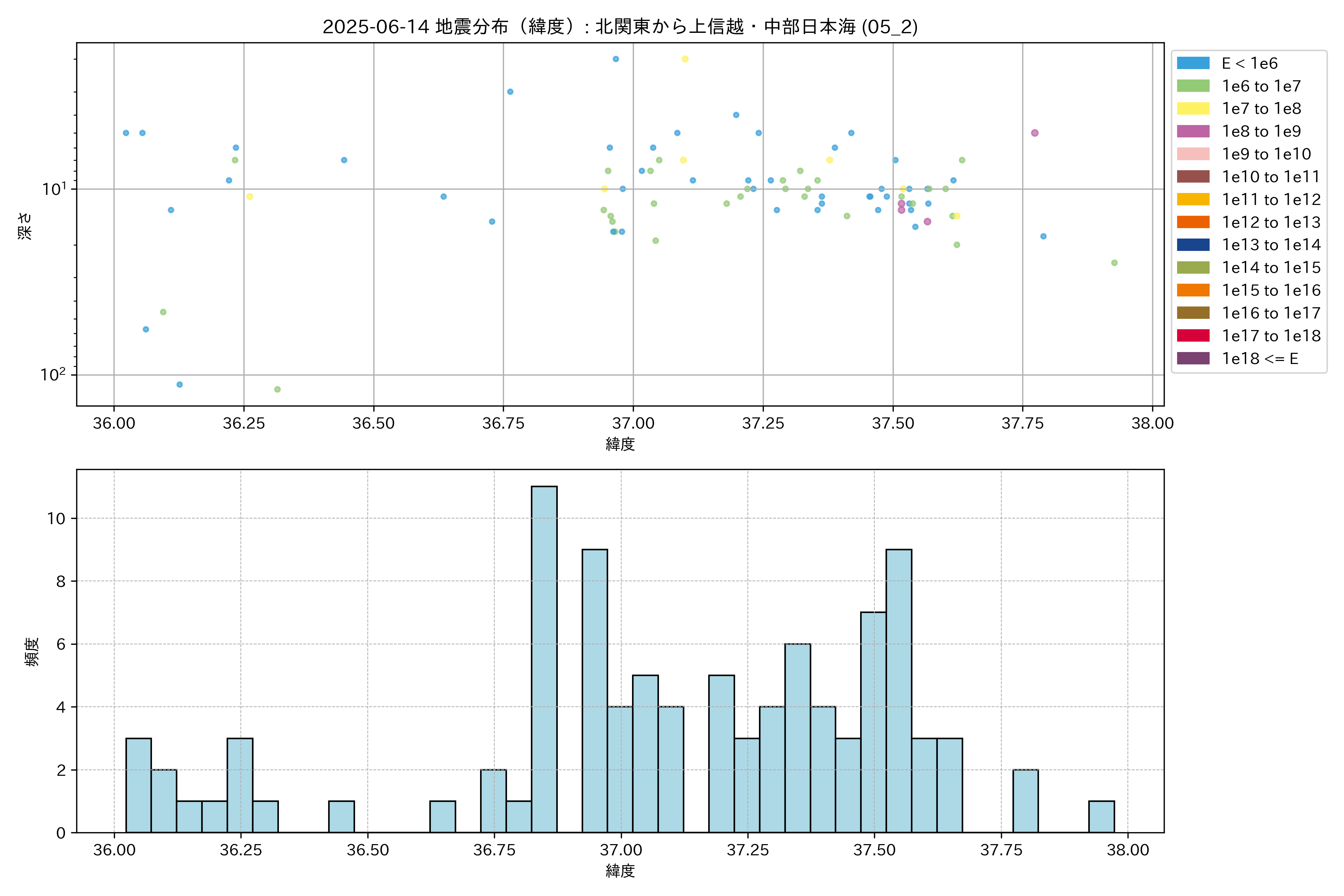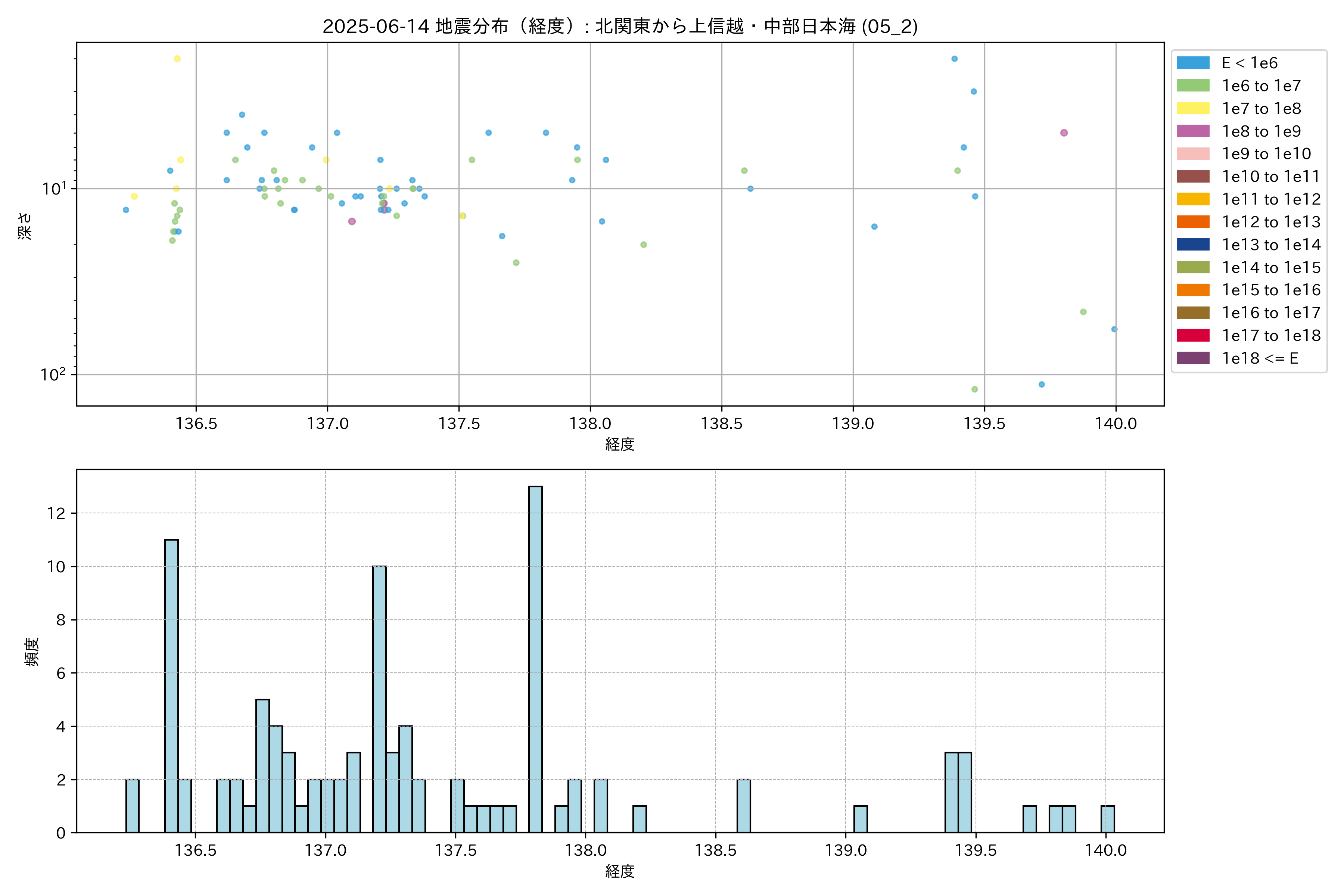 2025年06月14日 北関東から上信越・中部日本海 エリア震源マップ