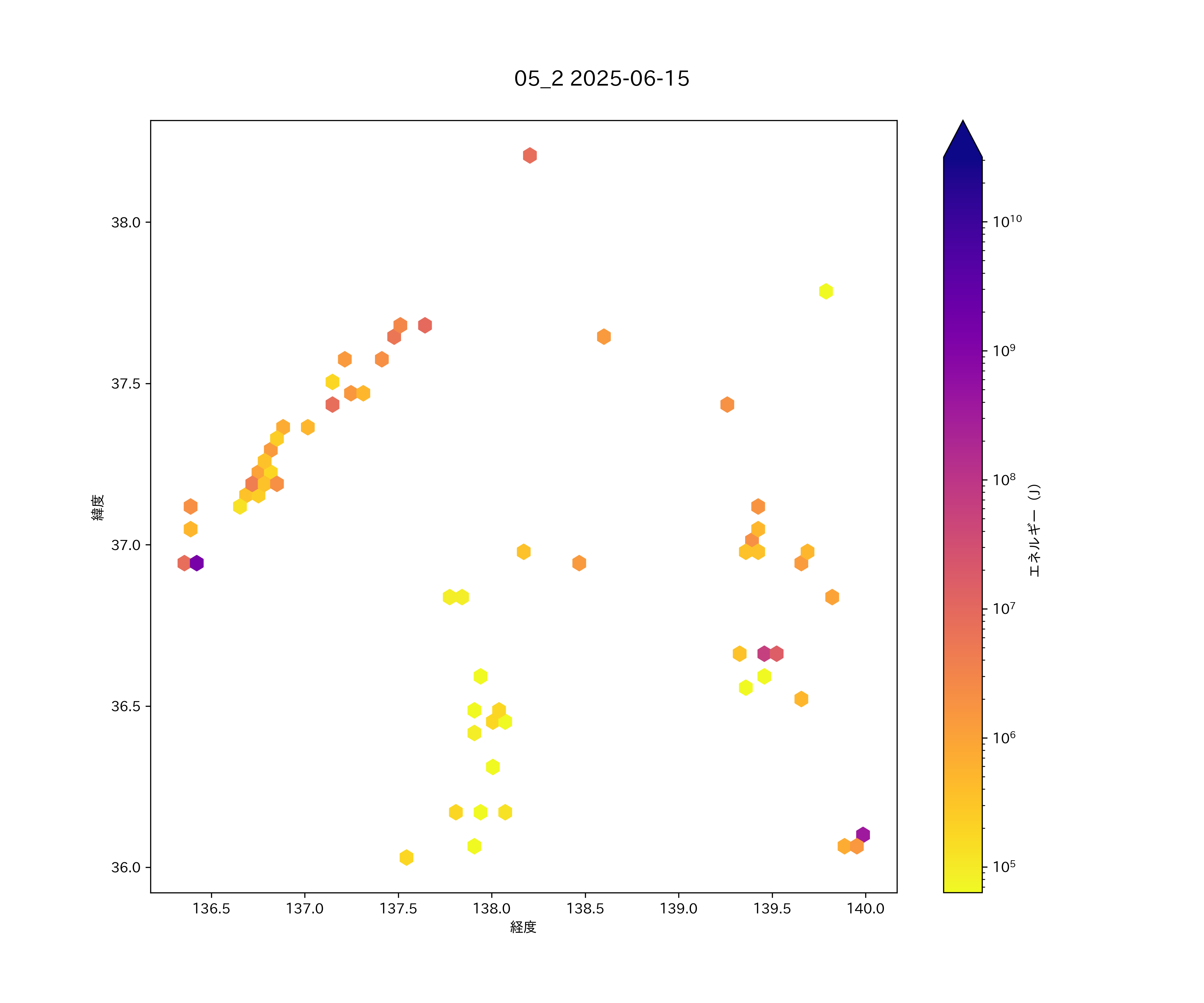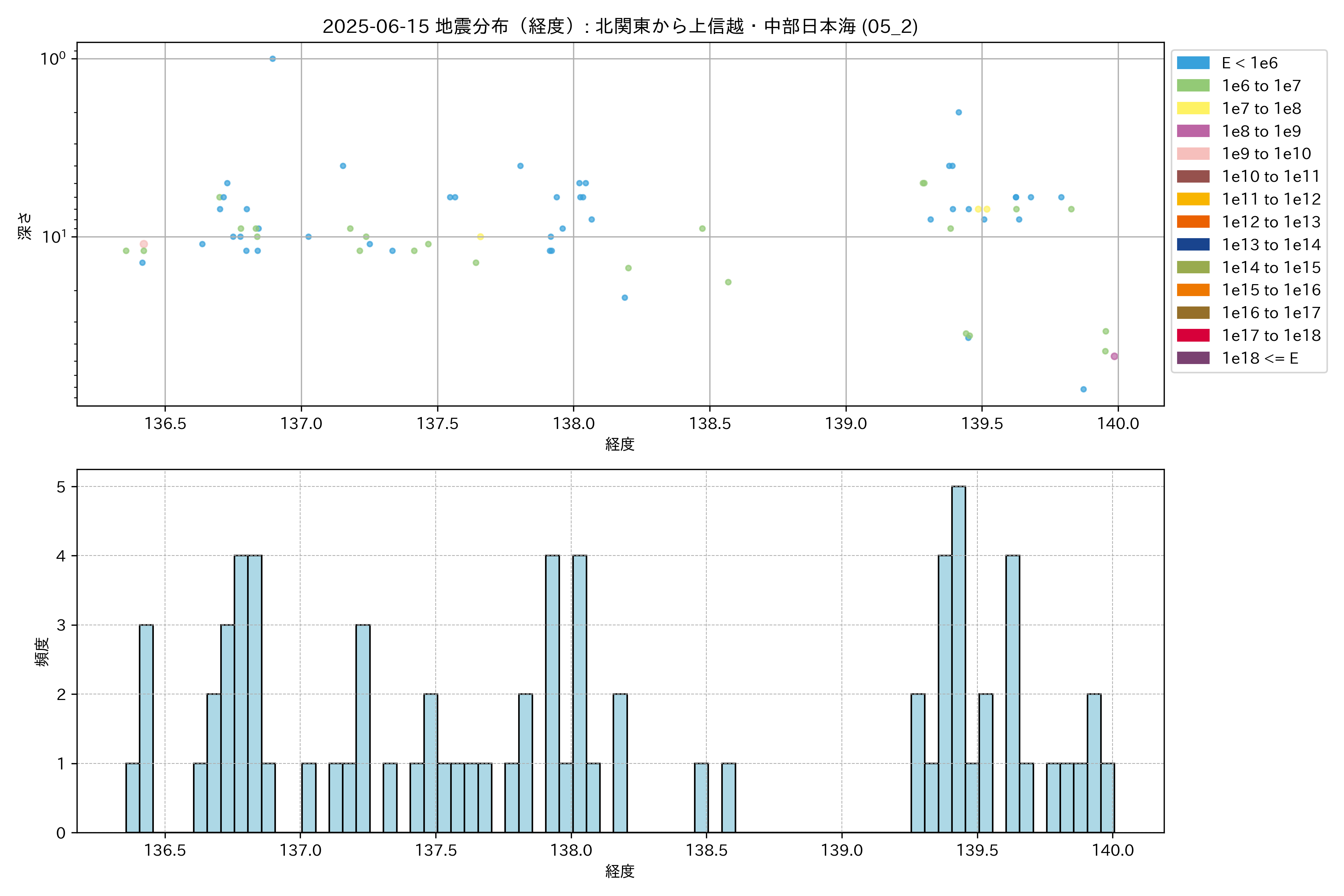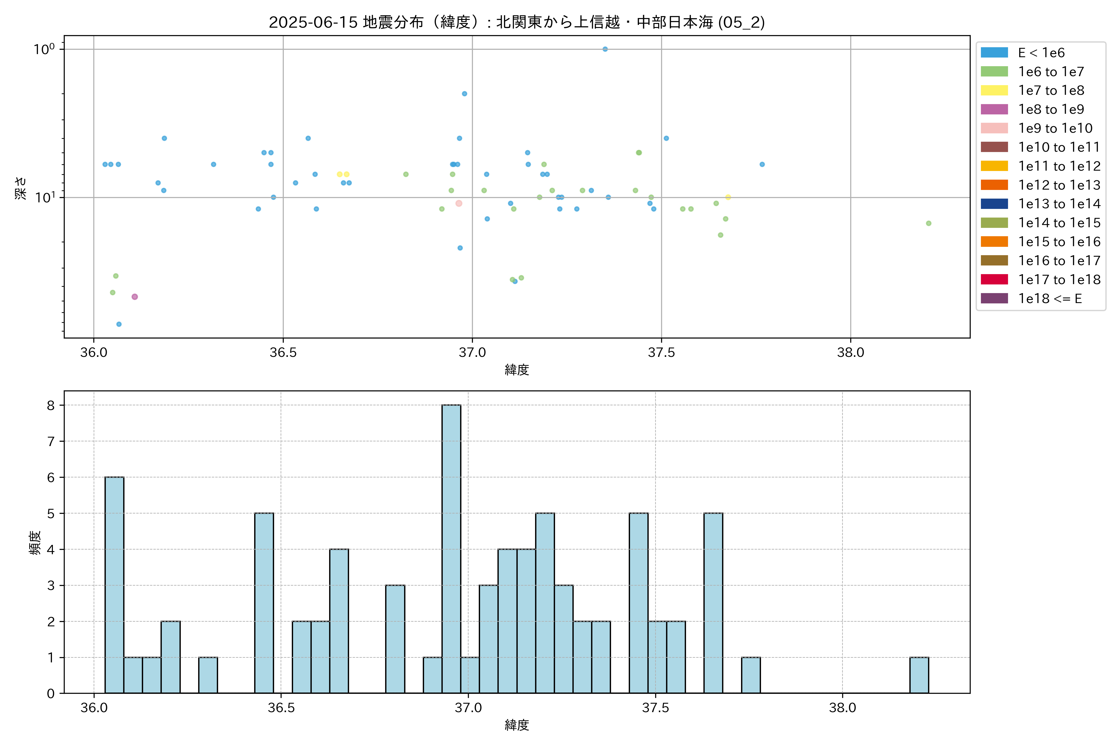 2025年06月15日 北関東から上信越・中部日本海 エリア震源マップ