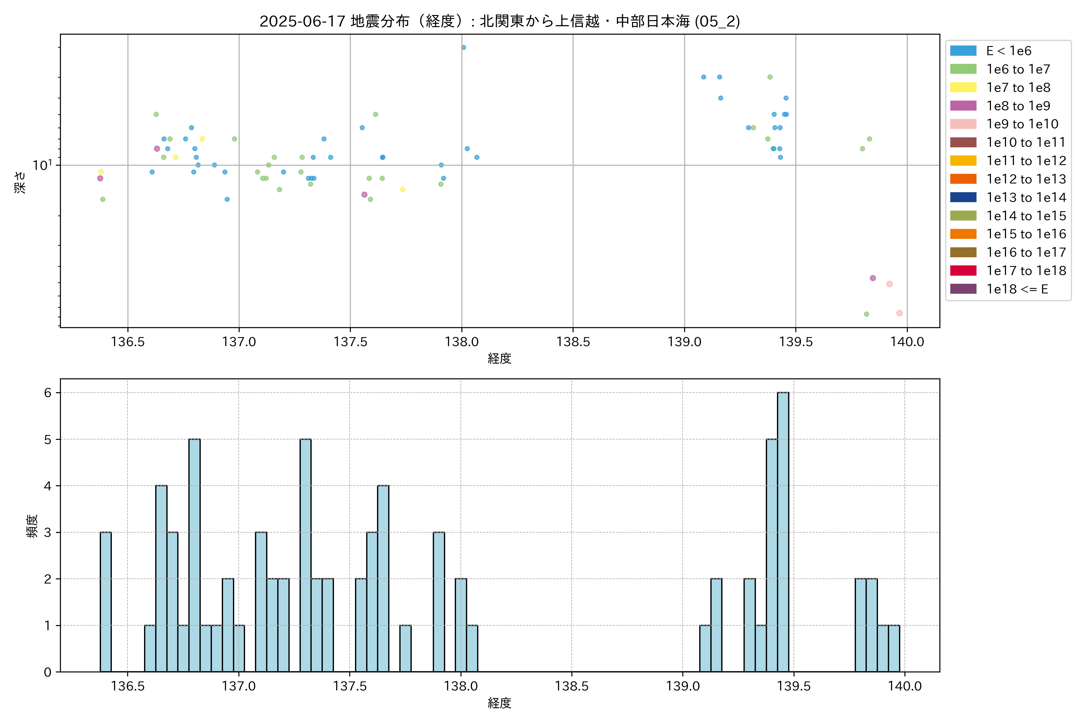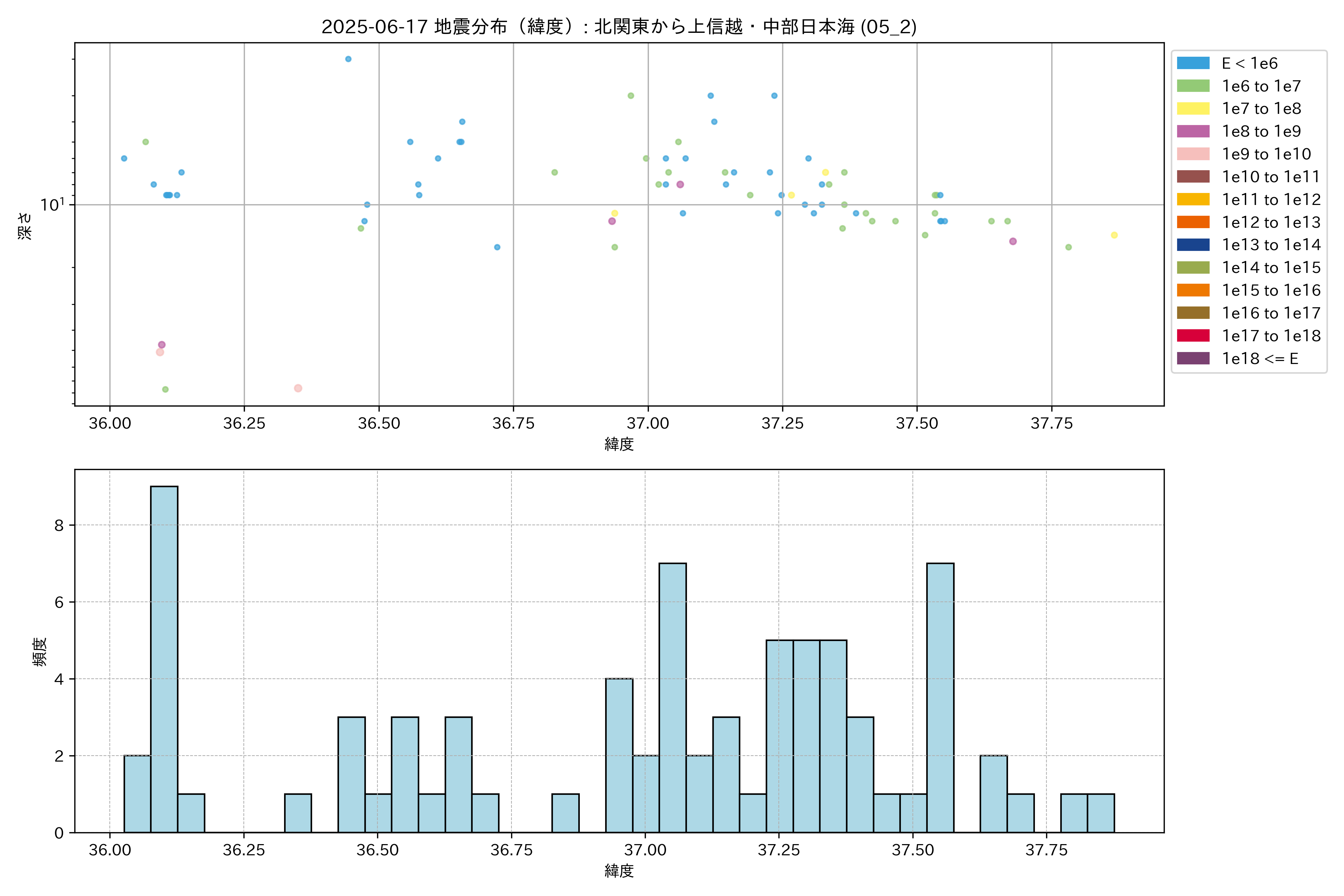 2025年06月17日 北関東から上信越・中部日本海 エリア震源マップ